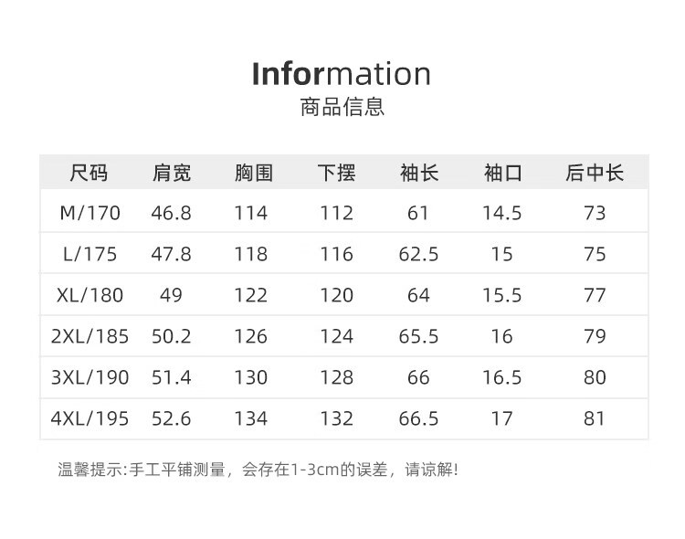 China (cm) 165 / 88-90 170 / 96-98 175 / 108-110 180 / 118-122 185 / 126-130