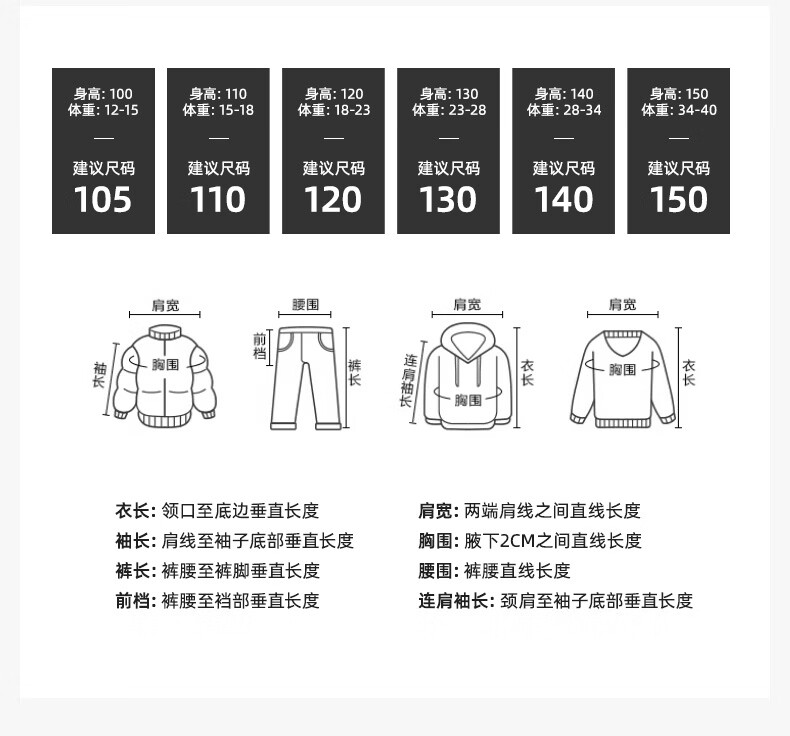 China (cm) 160-165/84-86 165-170 / 88-90 167-172 / 92-96 168-173 / 98-102 170-176 / 106-110