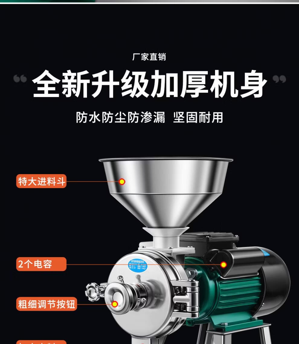 Tuojin imported quality commercial mill from Germany, corn grinder, household grain grinder for breeding, feed, rust-free, steel grinding model, 3000w copper frequency converter, dry and wet