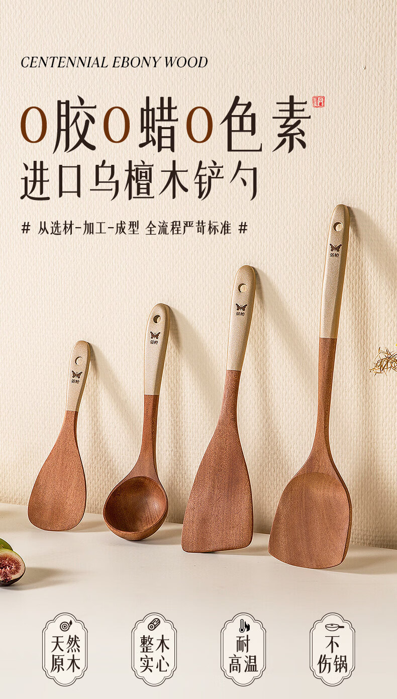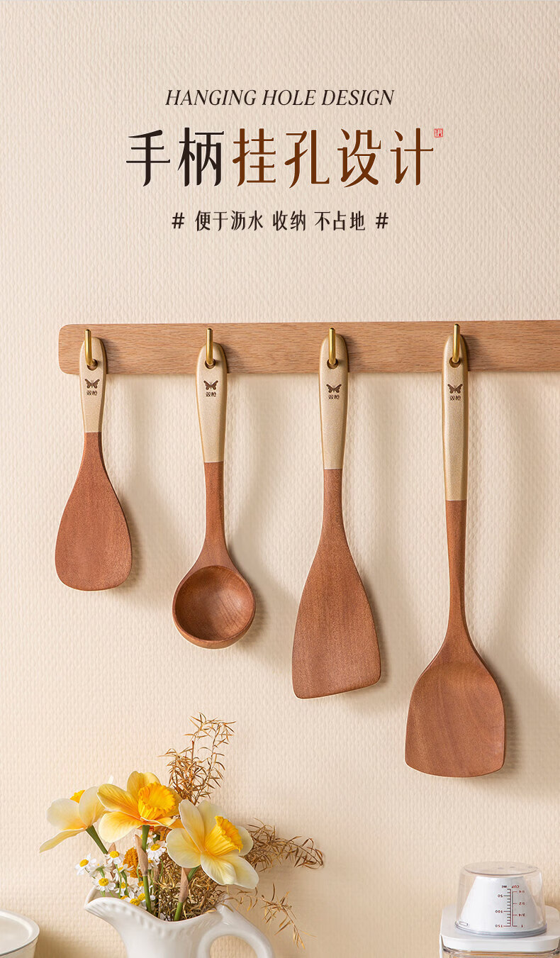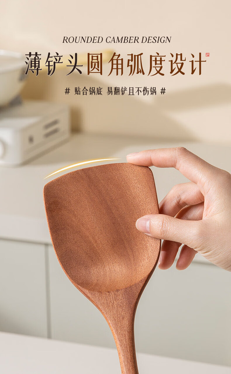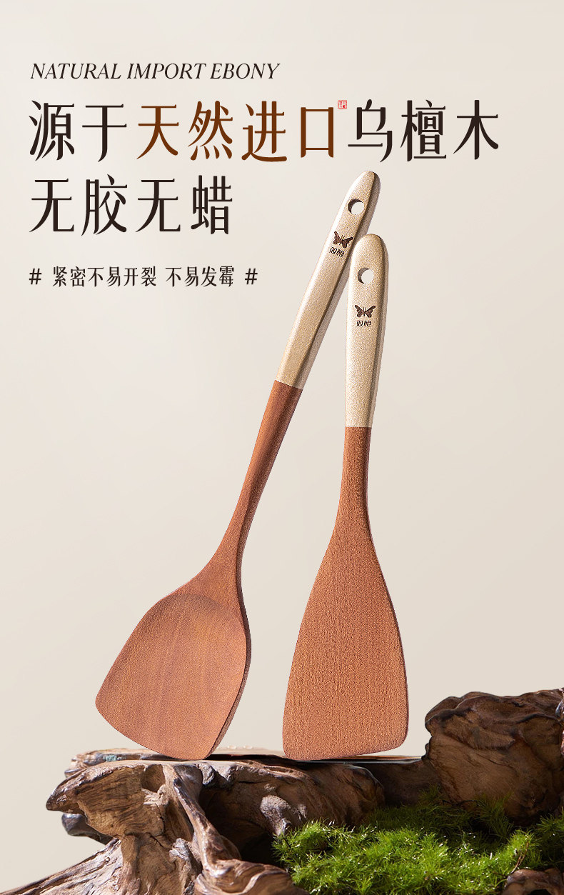 Double-gun spatula, ebony spatula, non-stick pan, special cooking spatula, wooden spatula, high temperature resistant frying spoon, wooden spoon, rice spoon, vegetable spatula, extended handle, not hot to the touch