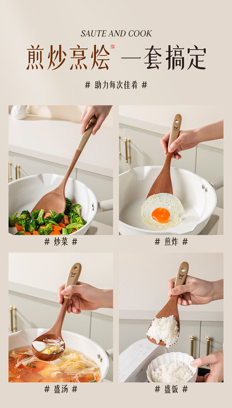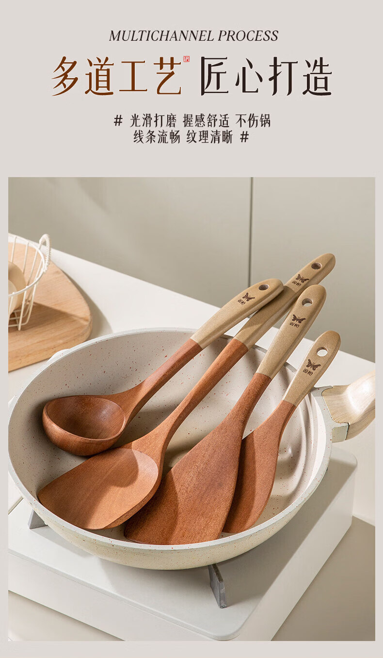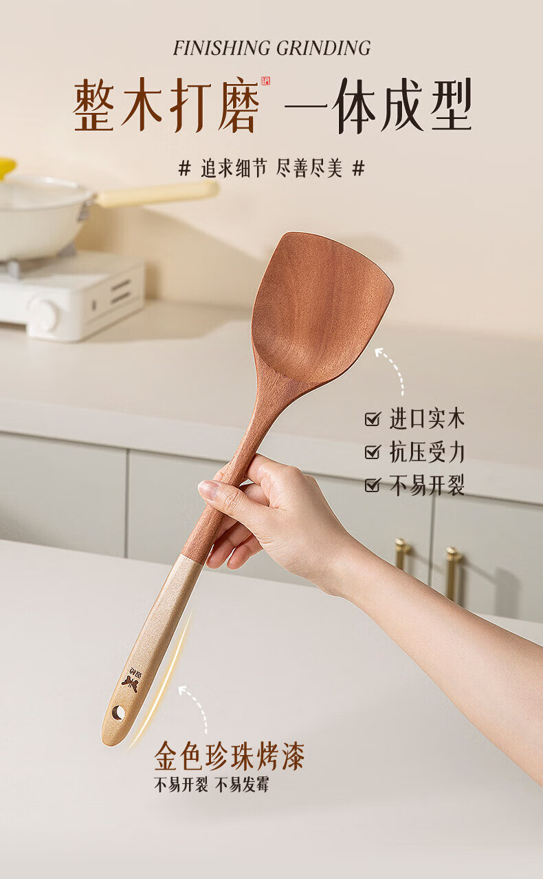 Double-gun spatula, ebony spatula, non-stick pan, special cooking spatula, wooden spatula, high temperature resistant frying spoon, wooden spoon, rice spoon, vegetable spatula, extended handle, not hot to the touch