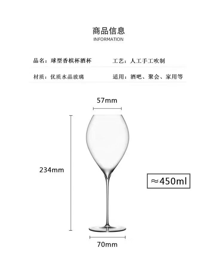 Yusenyi high-end restaurant white wine glass Riesling dry red goblet dessert wine champagne sparkling wine water drop red wine glass 450ml