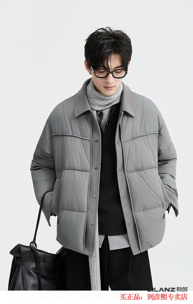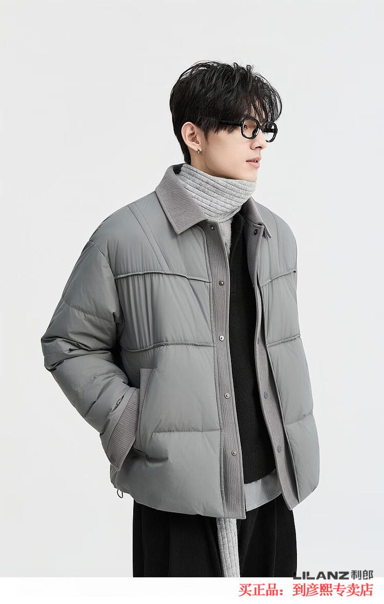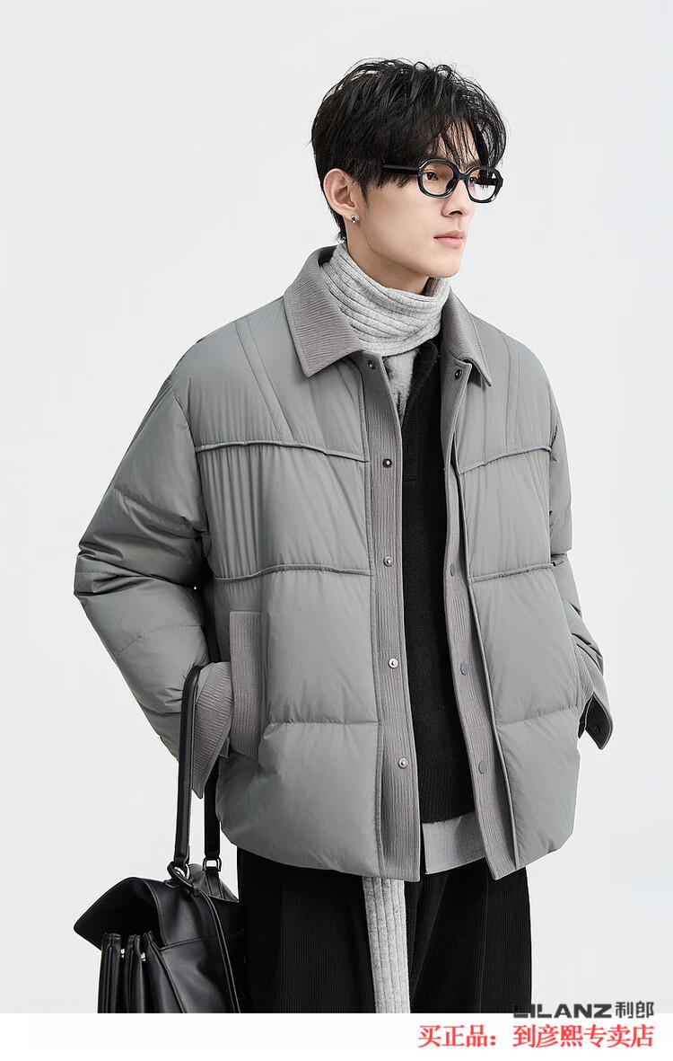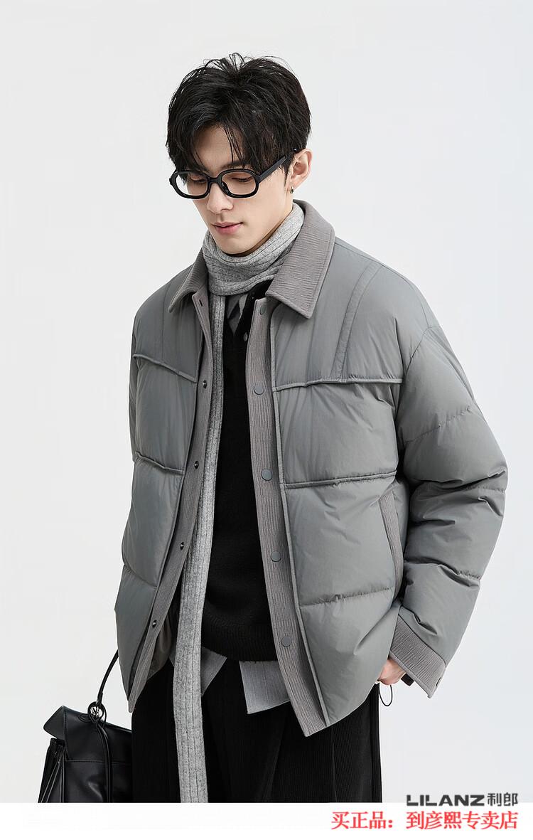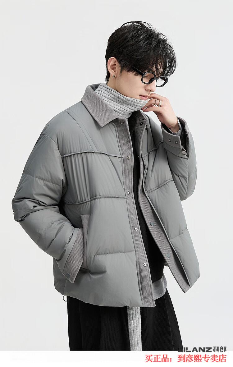 LILANZ official fake two-piece design 2025 new winter lapel light down jacket short men's warm jacket blue gray - flagship model M 100-120Jin Jin equals 0.5 kg