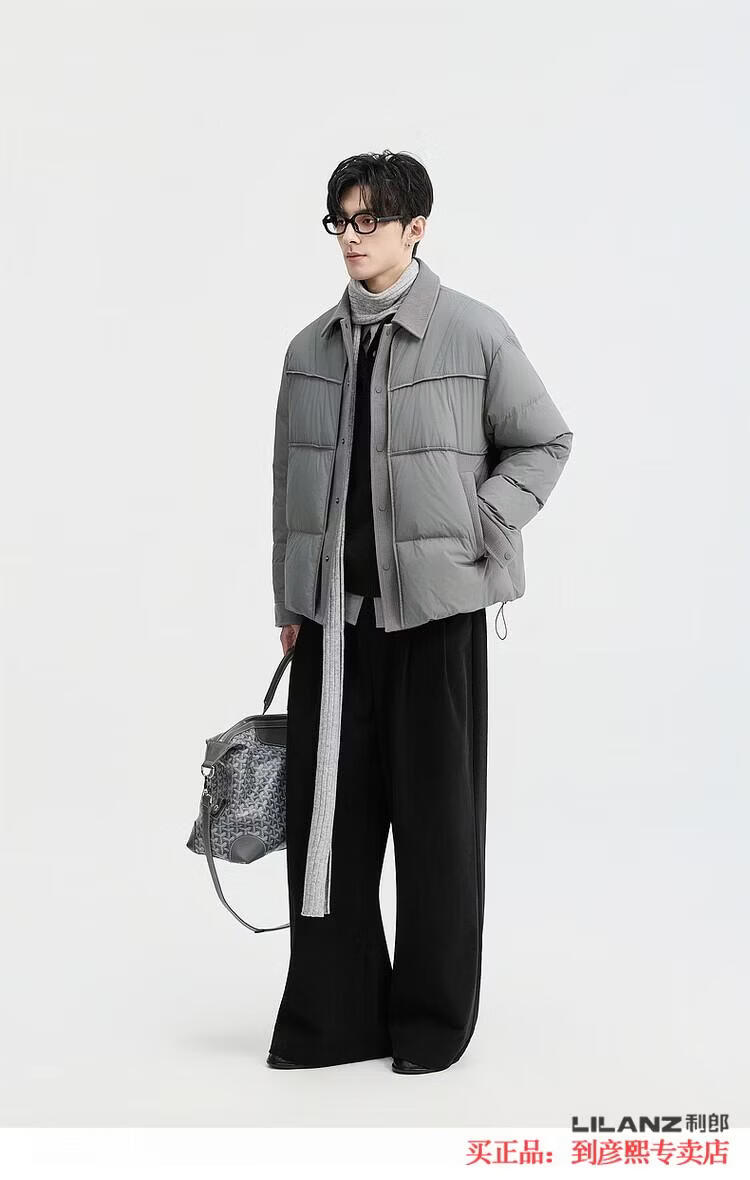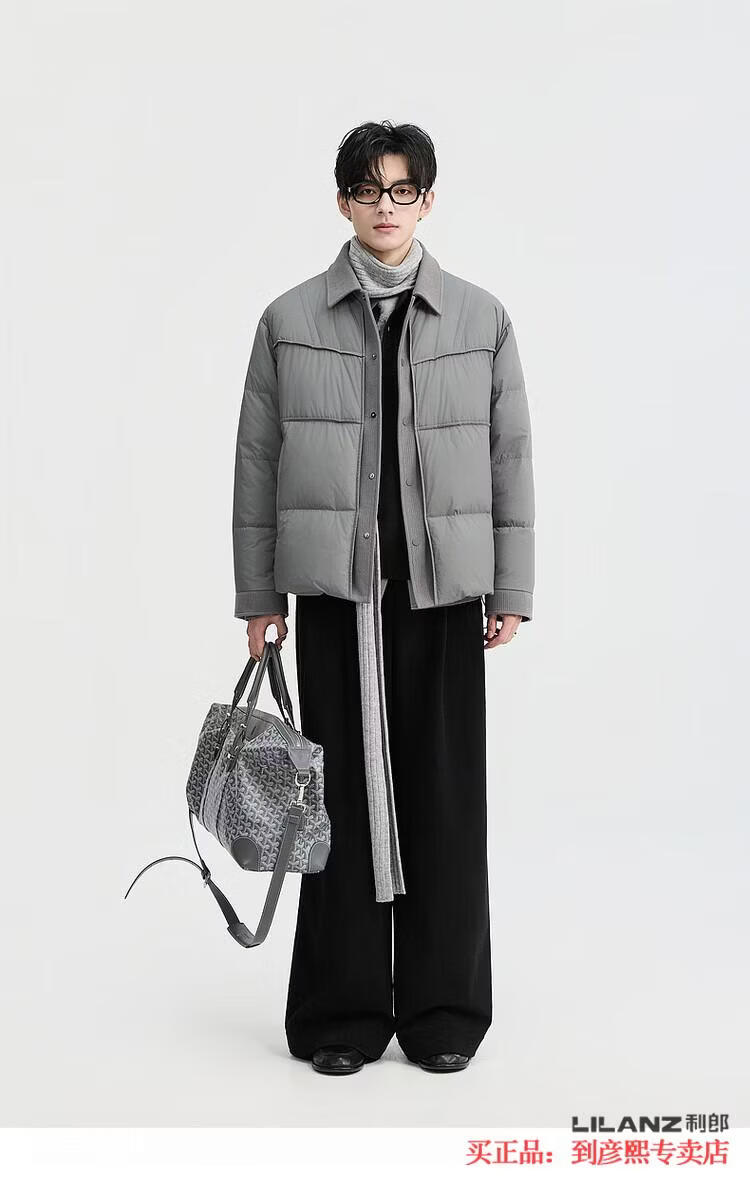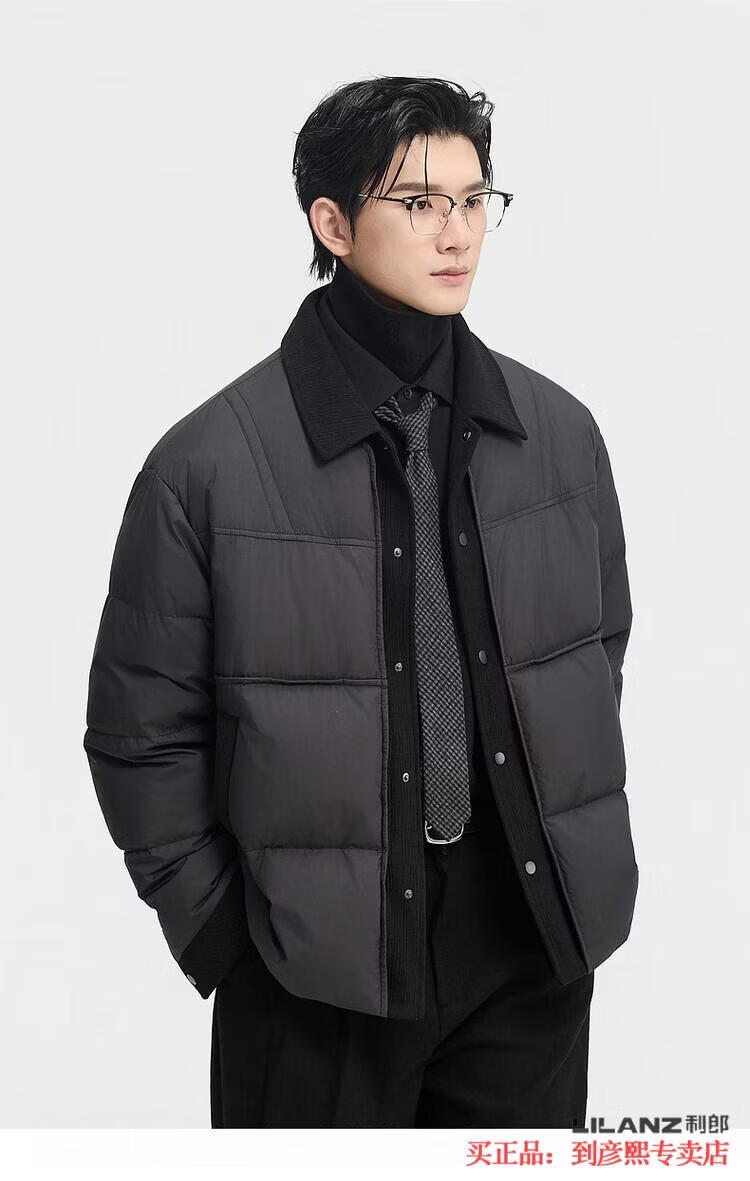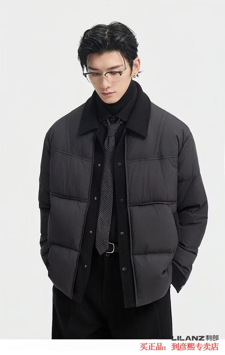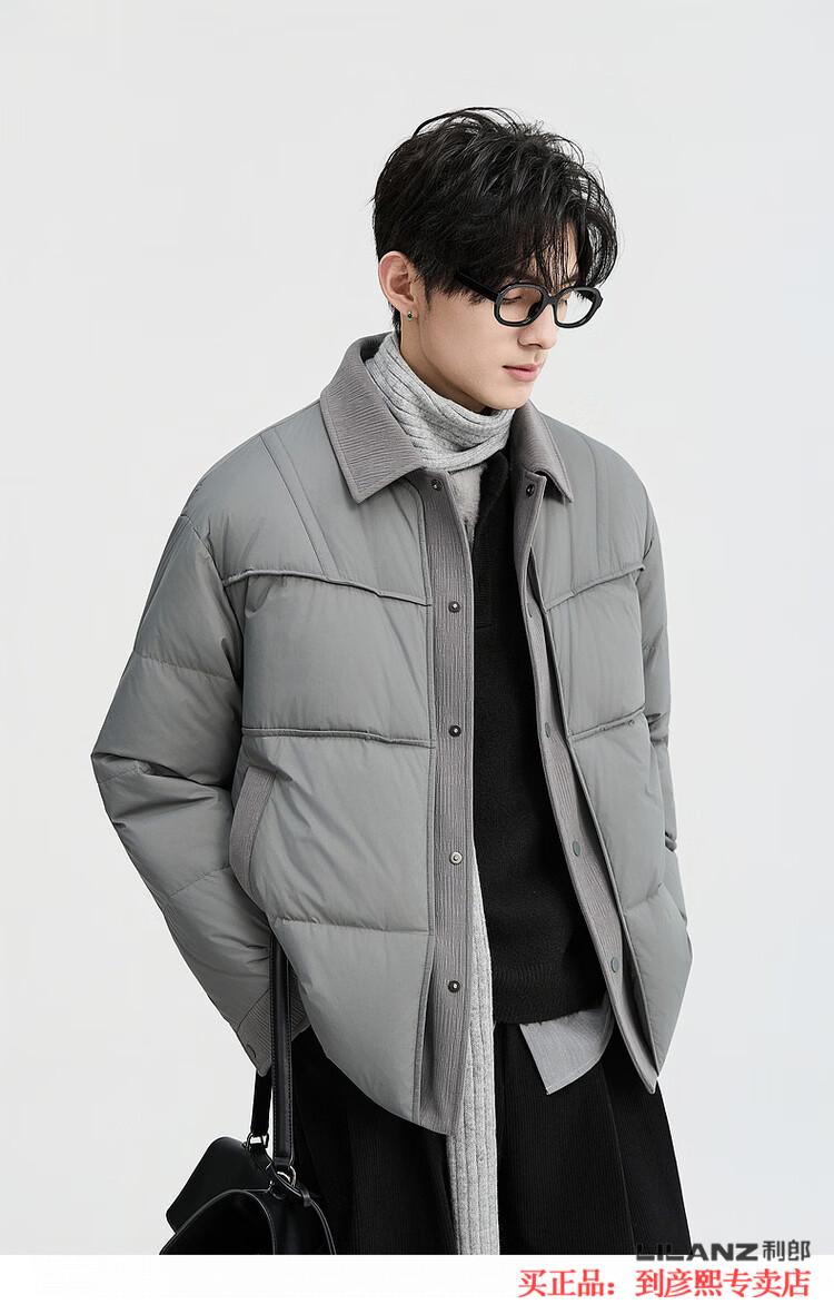 LILANZ official fake two-piece design 2025 new winter lapel light down jacket short men's warm jacket blue gray - flagship model M 100-120Jin Jin equals 0.5 kg