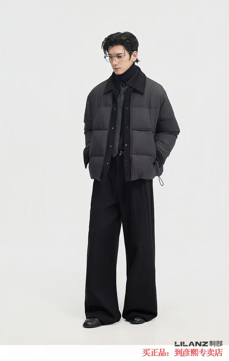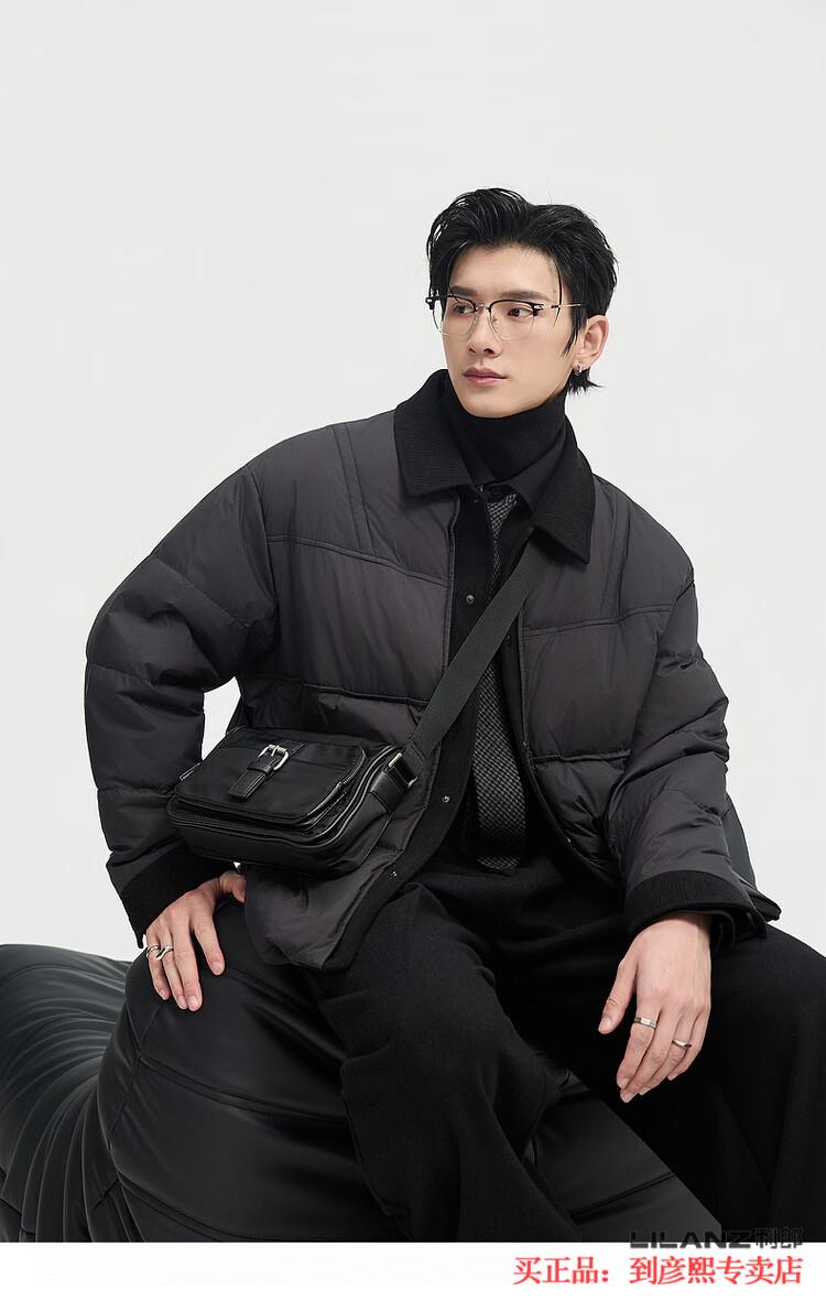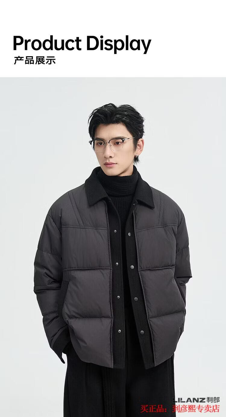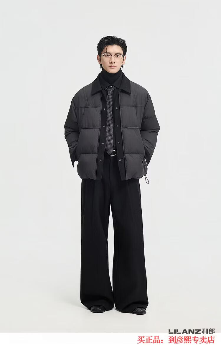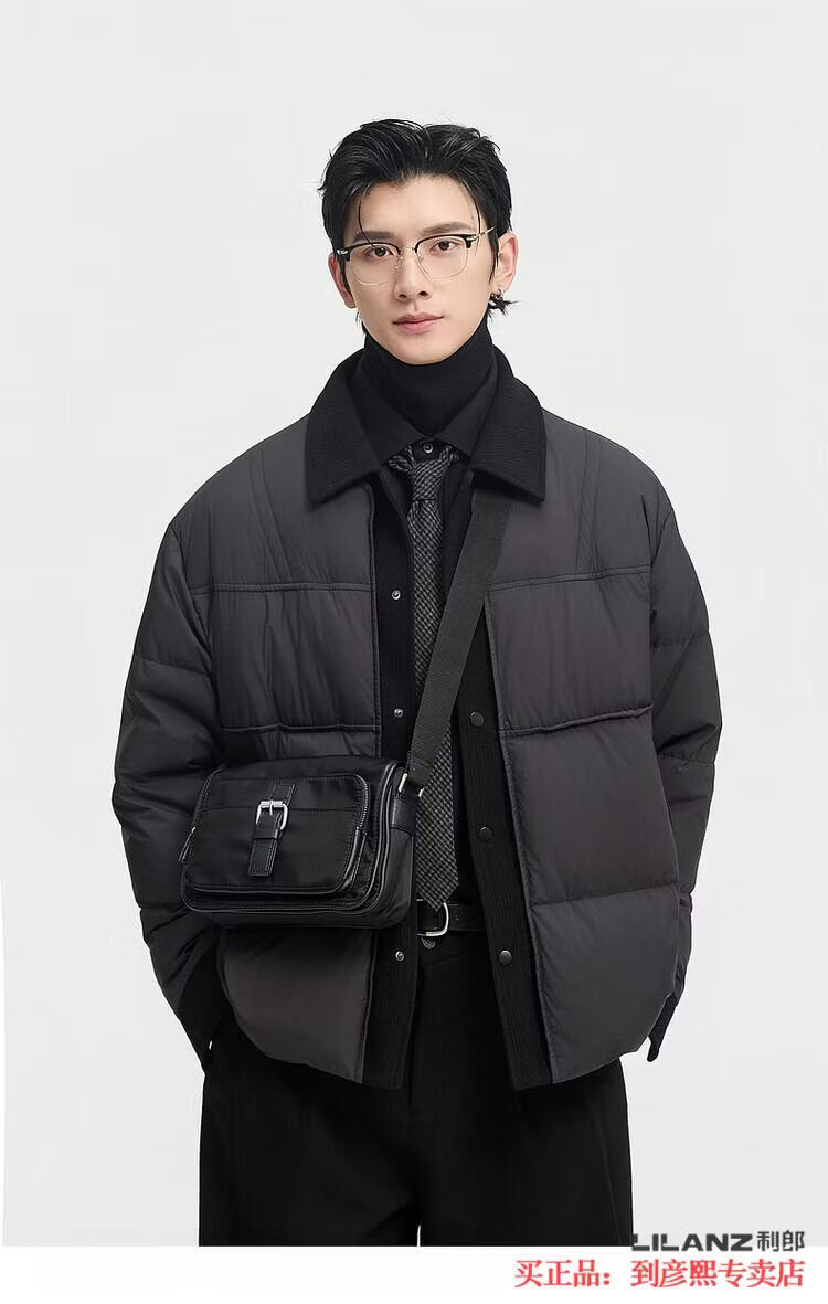 LILANZ official fake two-piece design 2025 new winter lapel light down jacket short men's warm jacket blue gray - flagship model M 100-120Jin Jin equals 0.5 kg