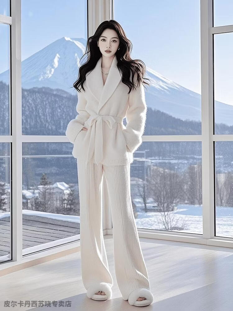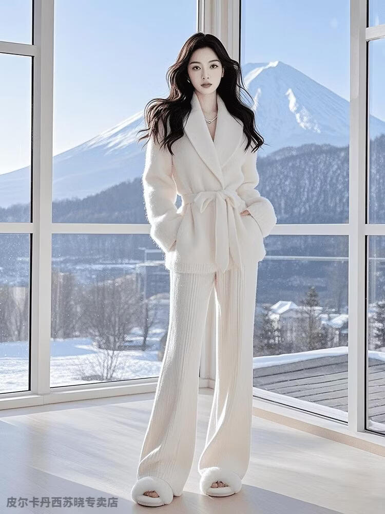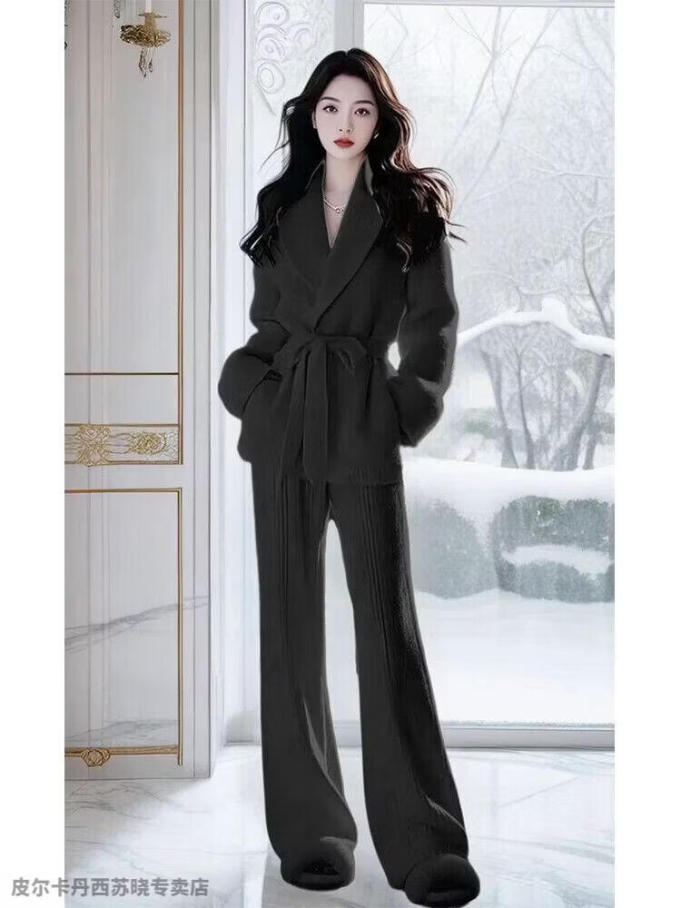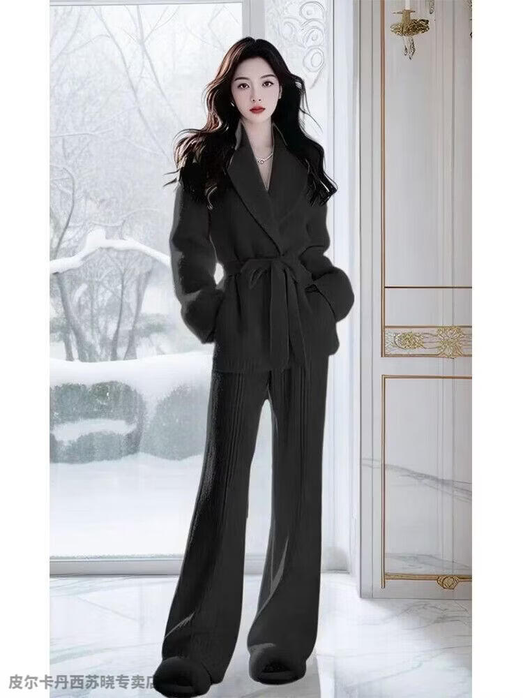 Pierre Cardin Lazy Style Lapel Sweater Jacket Wide Leg Pants Suit Women's Casual Fashion Two-piece Set 2025 Autumn and Winter New Style Dark Gray Suit Standard Edition S Recommended 80-95Jin Jin is equal to 0.5 kg