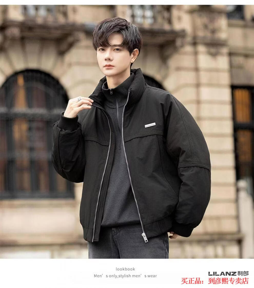 LILANZ official 2025 new men's high-end stand-up collar thickened down jacket winter trendy brand coat white duck down winter coat YR2558 black - flagship model L (120-135Jin Jin equals 0.5kg)