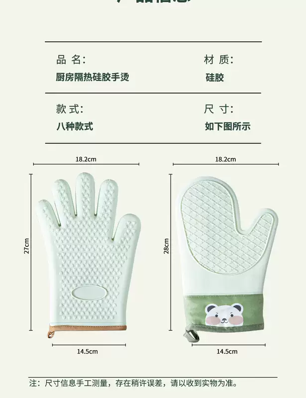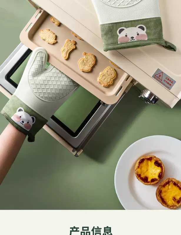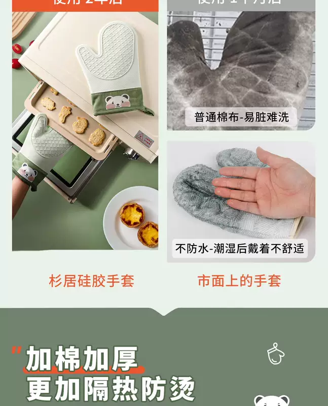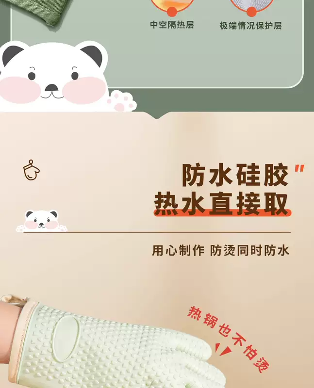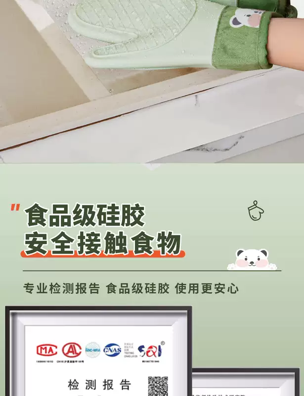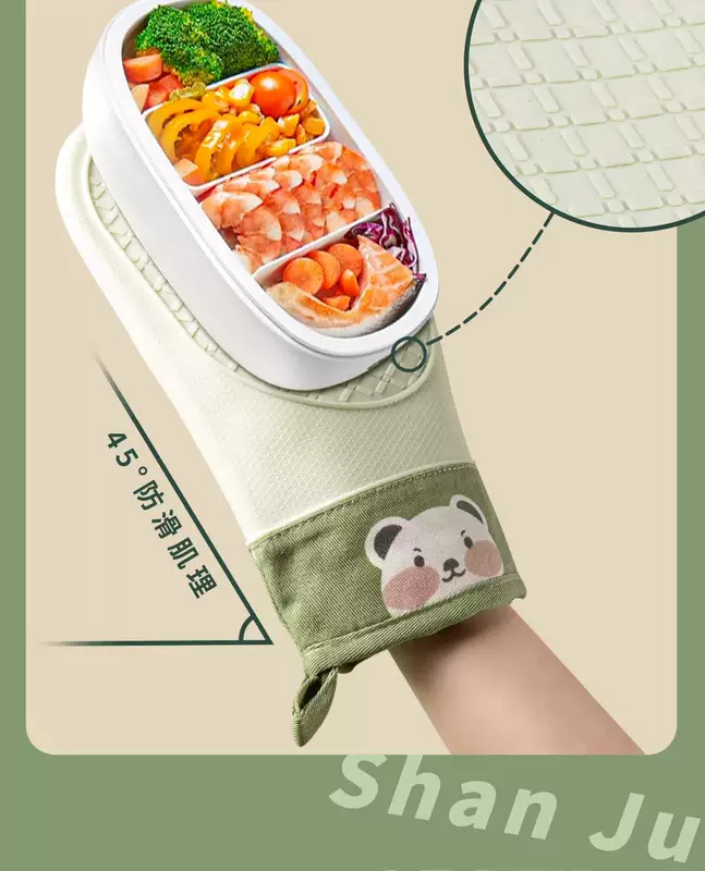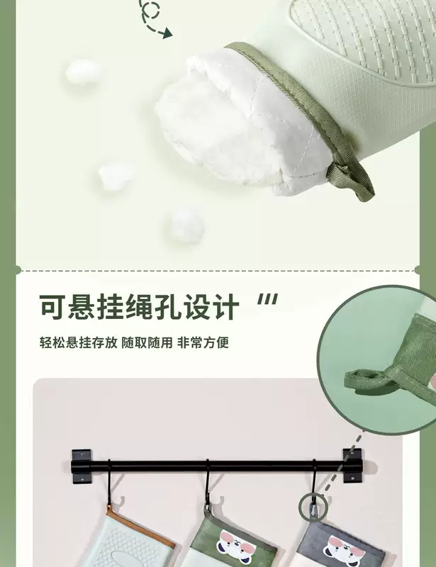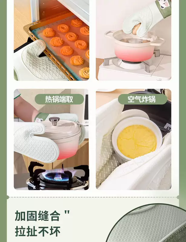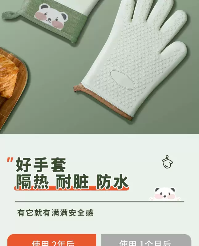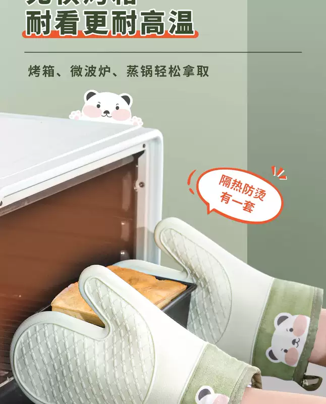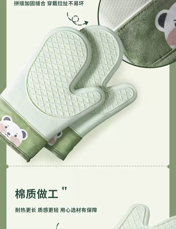 Yusenyi Anti-scalding gloves are insulated and thickened silicone high temperature resistant kitchen oven special non-slip microwave baking baking anti-scalding (extra thick) gloves (2 fingers) pine cone green 1 piece
