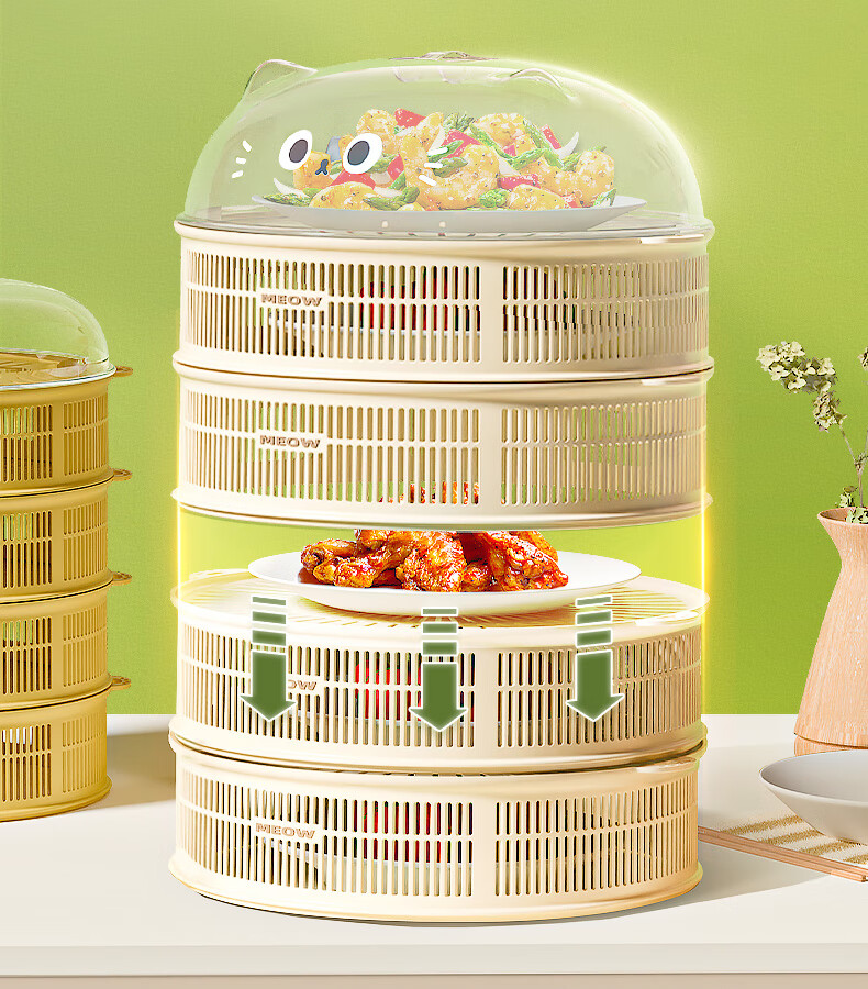 Tuojin imported quality multi-layer breathable vegetable cover from Germany, kitchen table leftover food cover, hollow dust-proof and insect-proof, food-grade PP material, Haiyan Blue, 5 layers + get 1 free