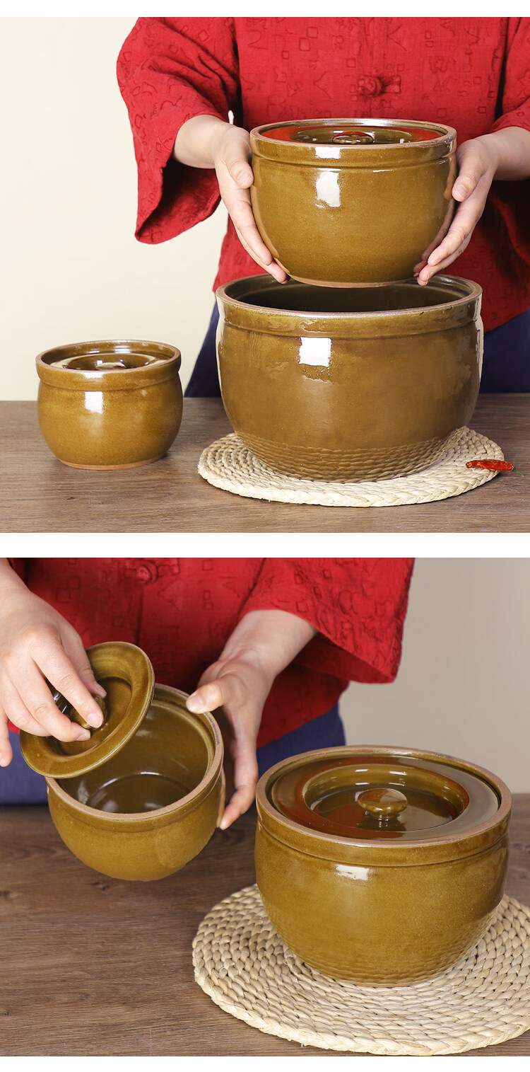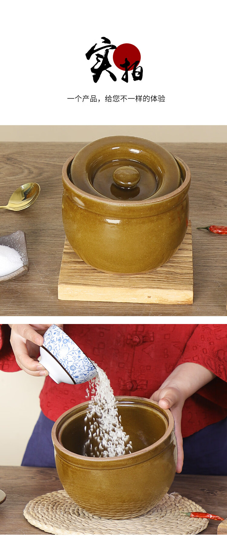 Kaooseen earthenware lard basin with lid, household kitchen oil basin, oil container, commercial seasoning tank, lard tank, old-fashioned meat oil tank, lotus tank filled with water 100Jin, Jin is equal to 0.5kg, Gongfa | Damage replacement