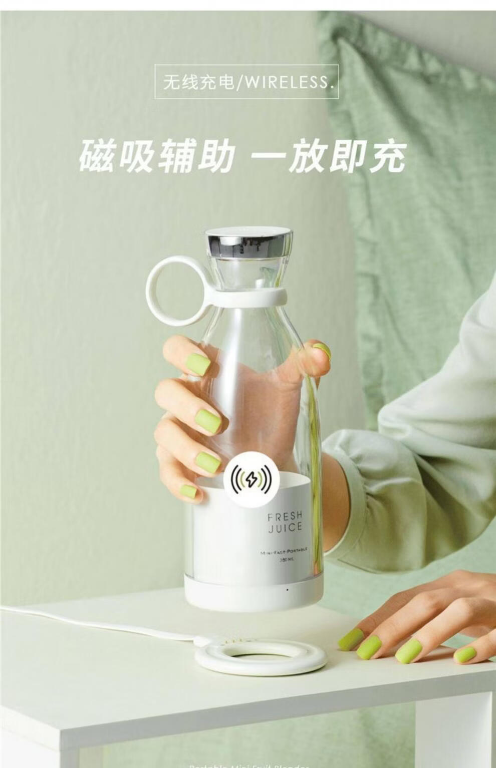 Tuojin German imported high-quality automatic juicer cup portable juicer household small mini wireless electric vegetable portable juicer cup white upgraded model - magnetic charging