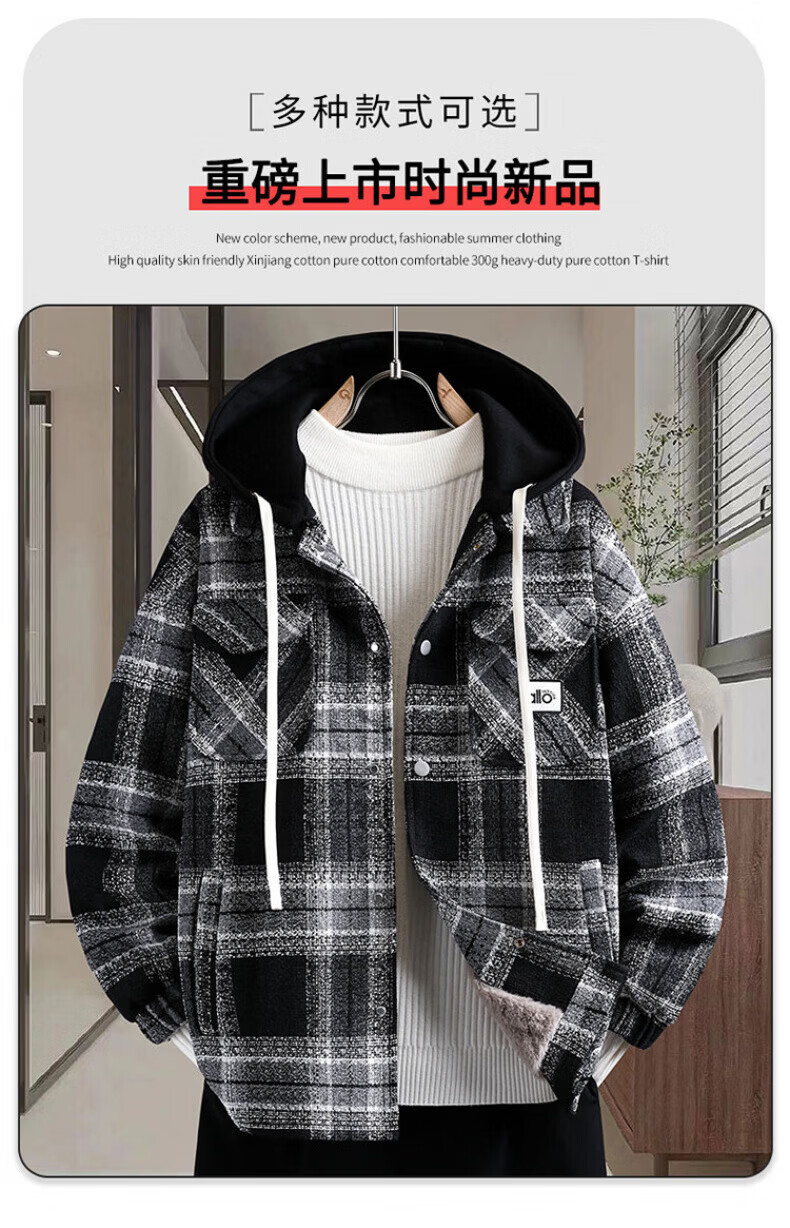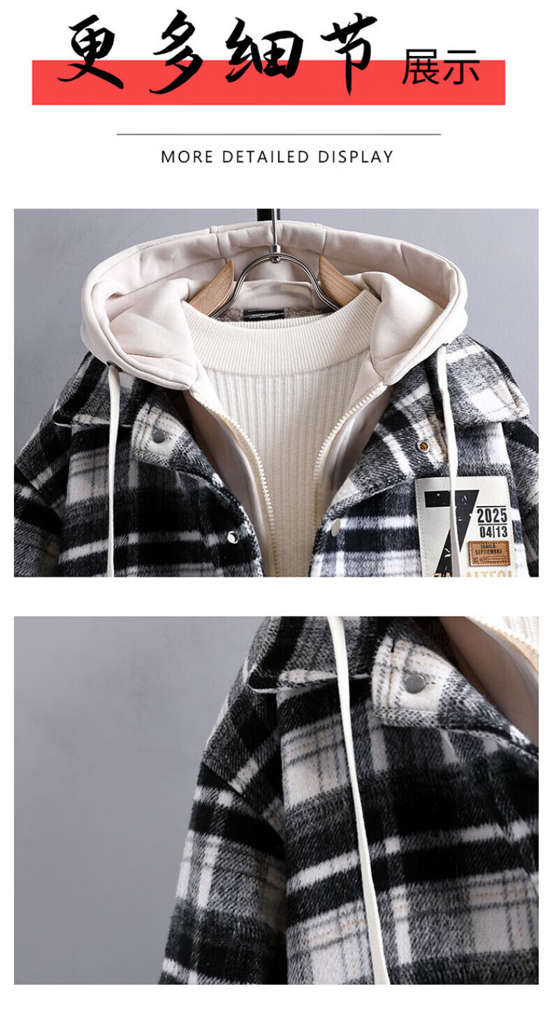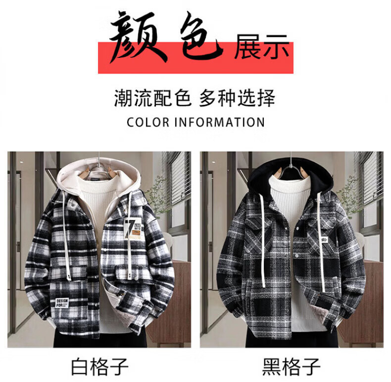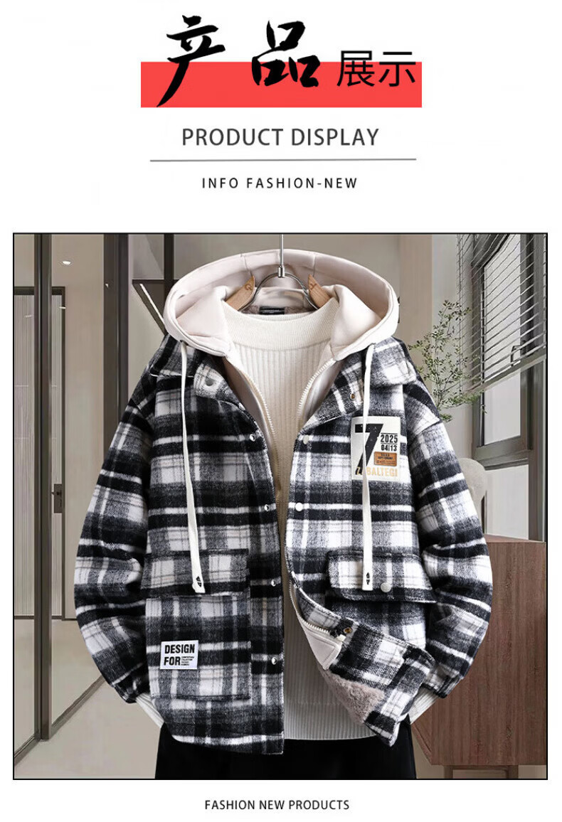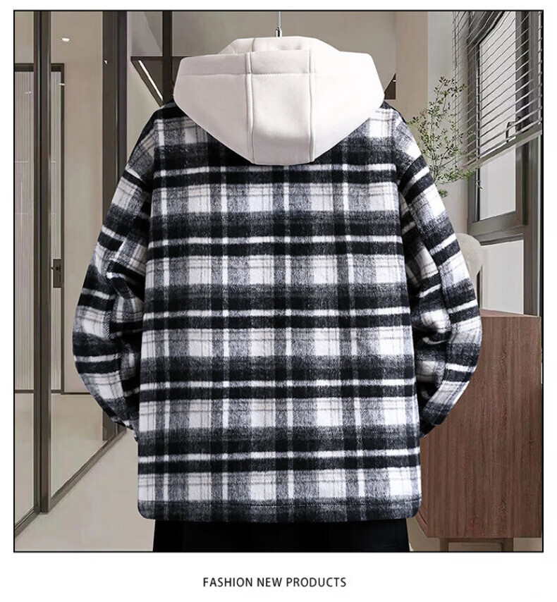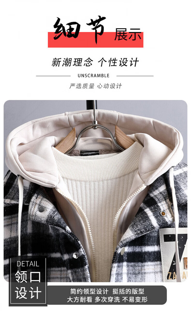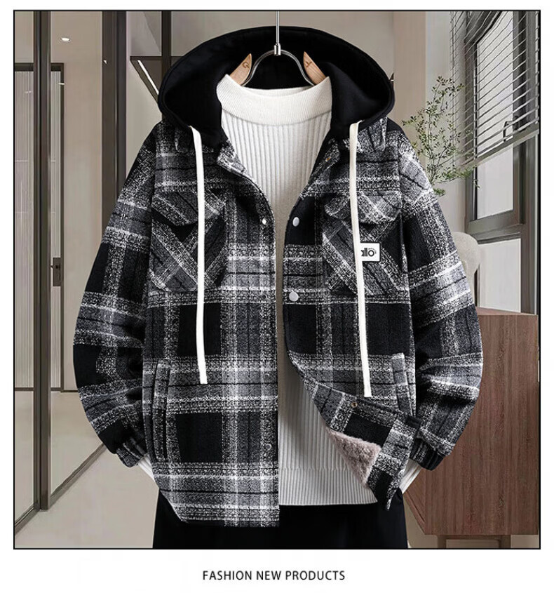 Woodpecker (TUCANO) autumn and winter vacation two-piece jackets for boys, junior high and high school students, velvet and thickened, teenagers and older men's jackets, cotton-padded jackets 8509 black plaid (single jacket), velvet and thickened M 80-100Jin Jin is equal to about 0.5 kg