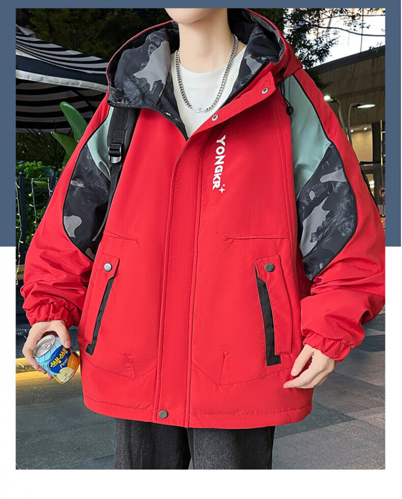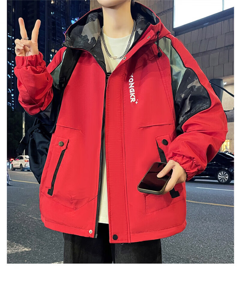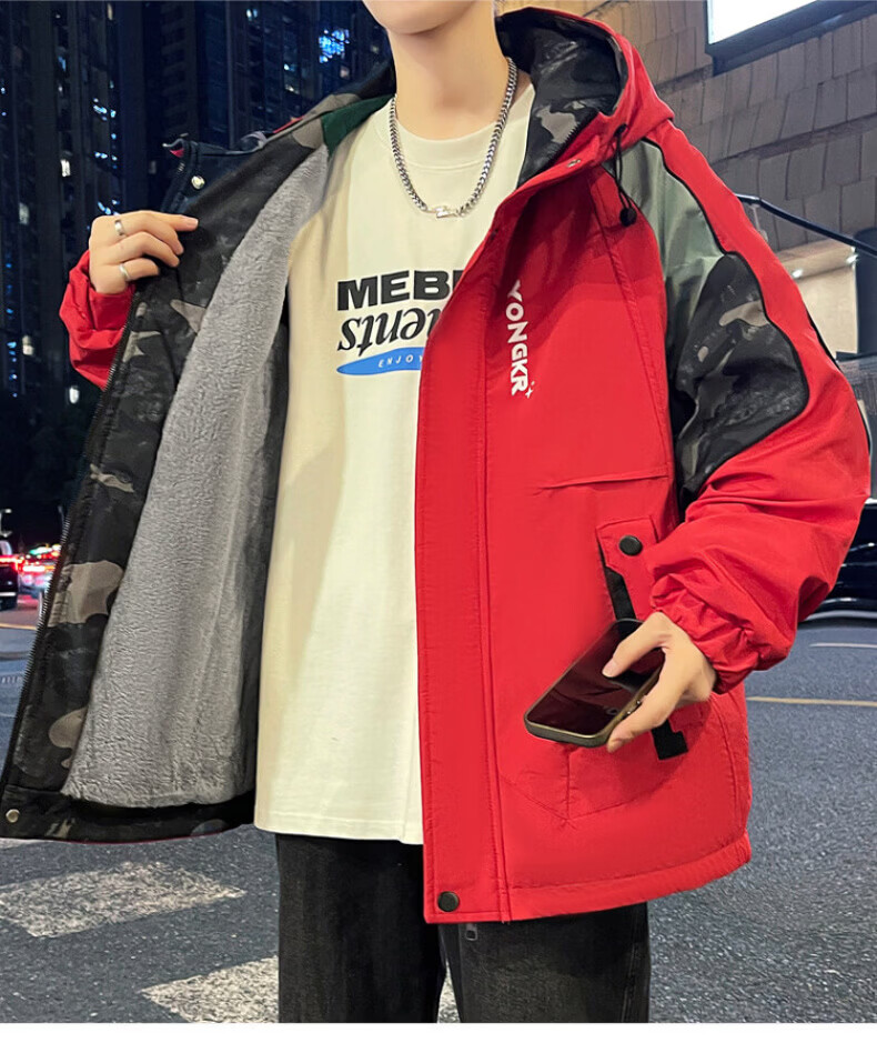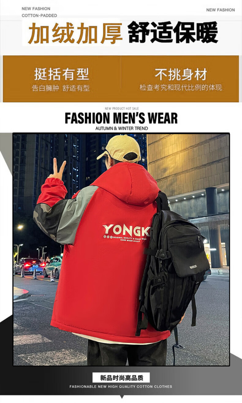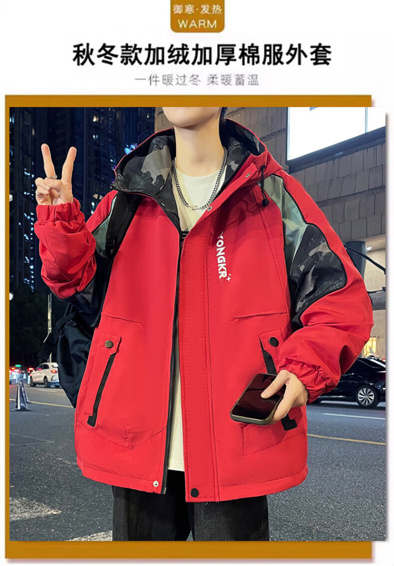 Woodpecker (TUCANO) autumn and winter velvet jacket for boys junior high school and high school students thickened cotton coat teenagers handsome big boy men's jacket JR8889 red (single jacket) velvet thickened 3XL 150-170Jin Jin is equal to about 0.5 kg