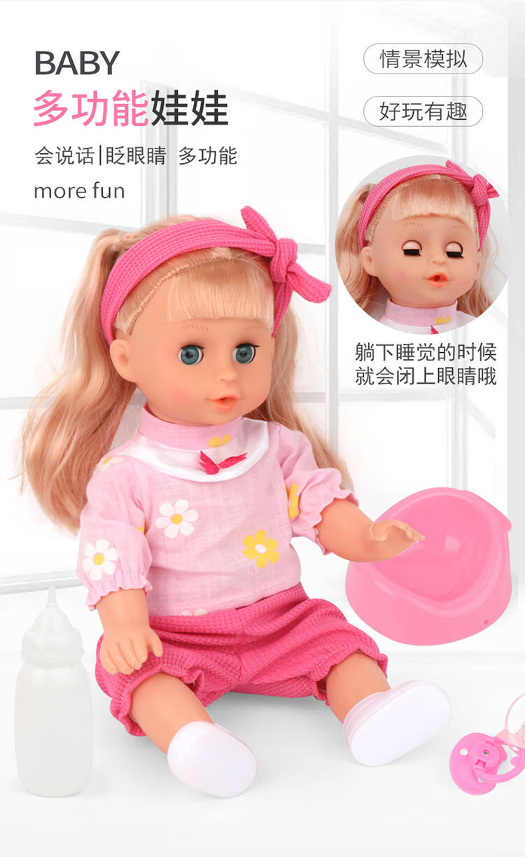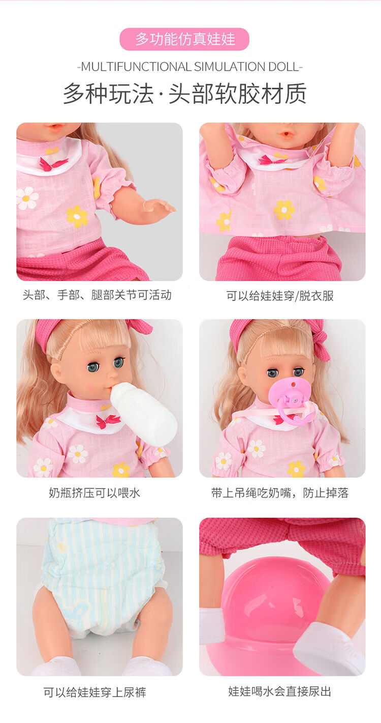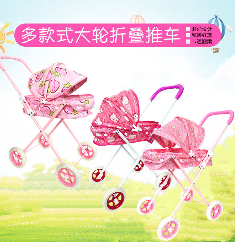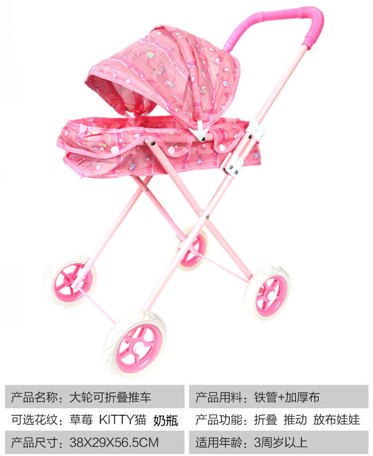 Children's stroller play house girl toy doctor toy simulation stroller with doll 345 strawberry cart + bed system can sleep 35 cm long baby
