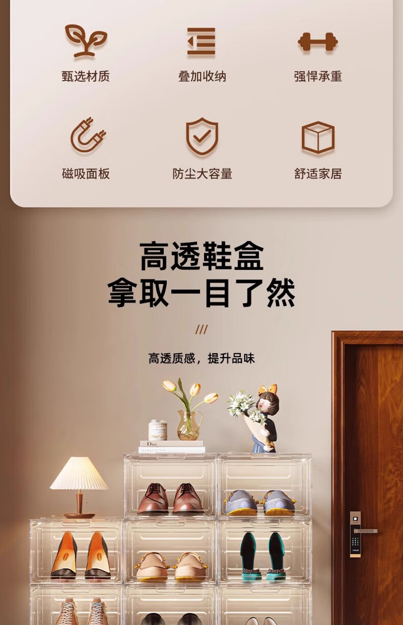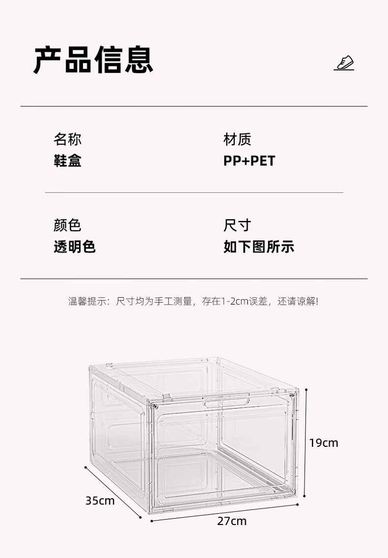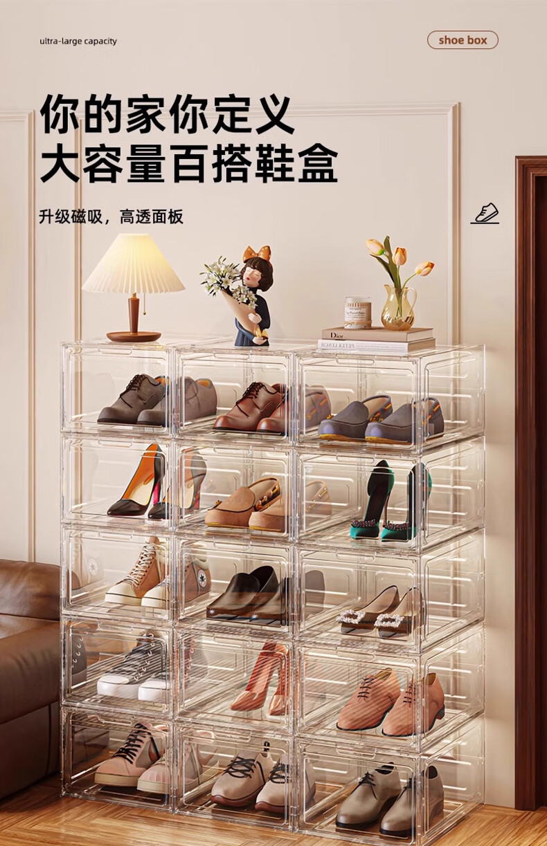 Sailotou shoe box storage box transparent shoe storage magnetic door shoe cabinet storage rack dust-proof acrylic display cabinet high transparency 1 pack magnetic door opening