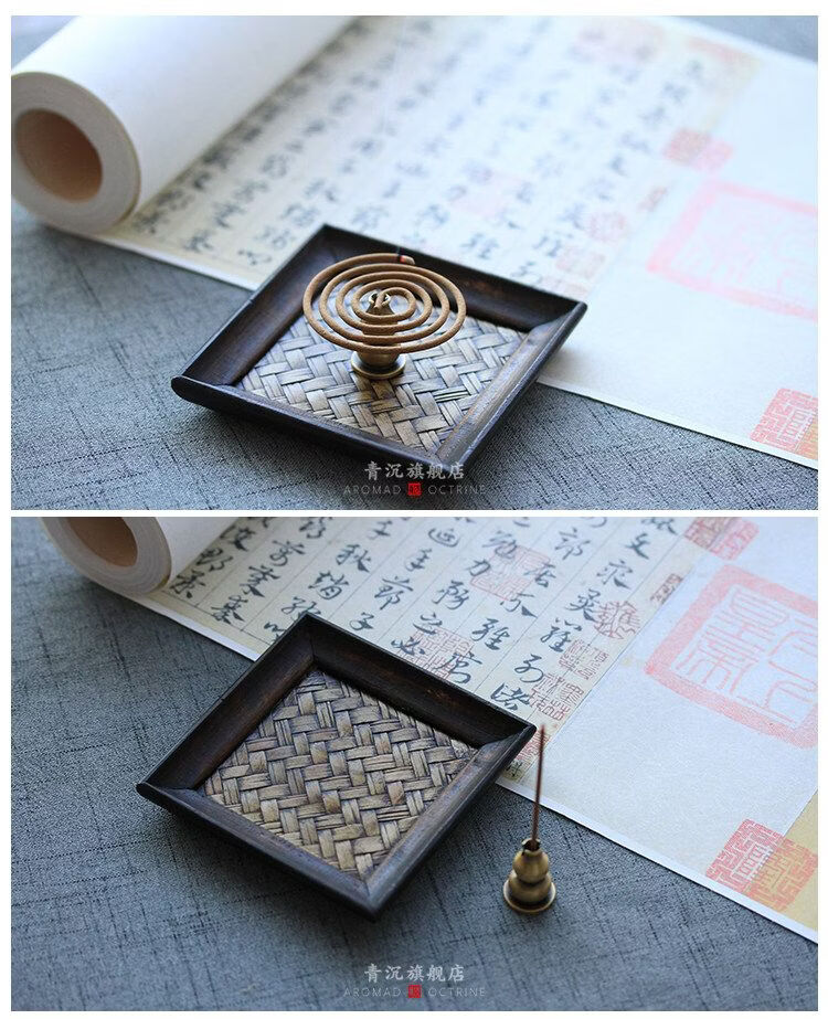 Shantou Lincun retro Japanese-style rattan socket holder sunken sandalwood furnace cord seat plate home creative rattan plate