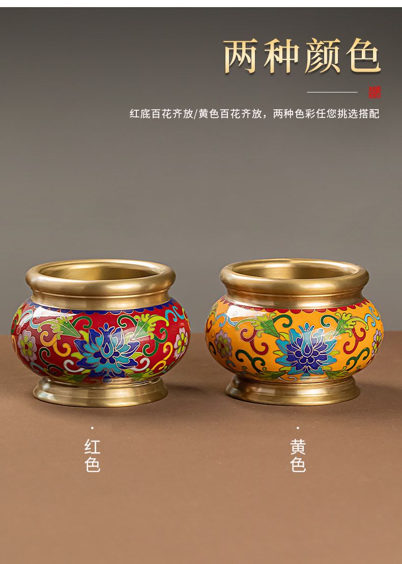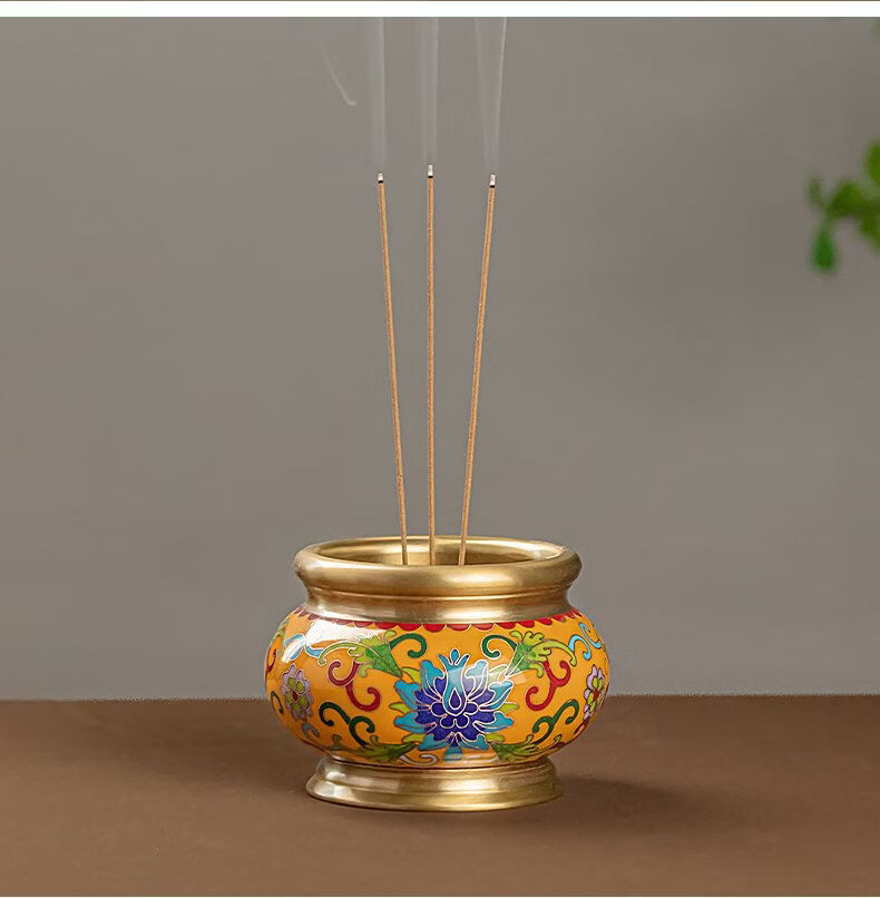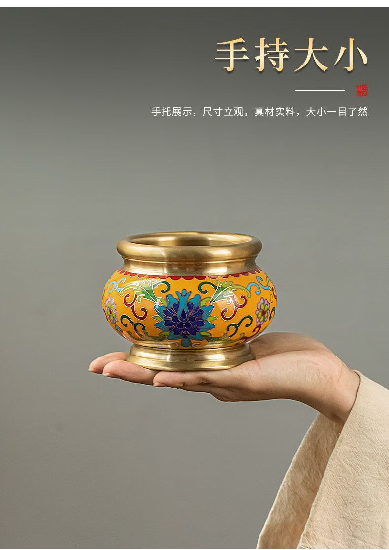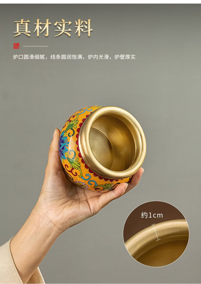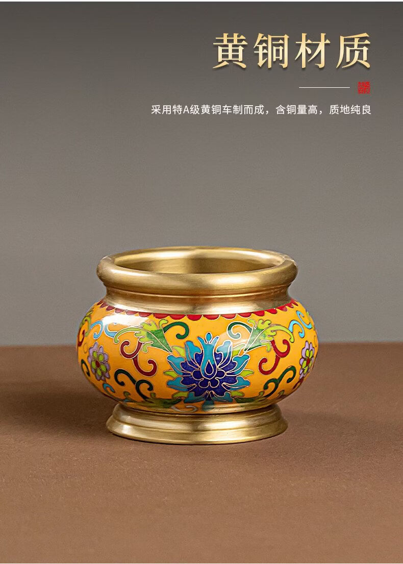 Shantou Lin Village cloisonné copper stove household incense sandalwood enamel Buddha hall worship yellow offering stove + black wire