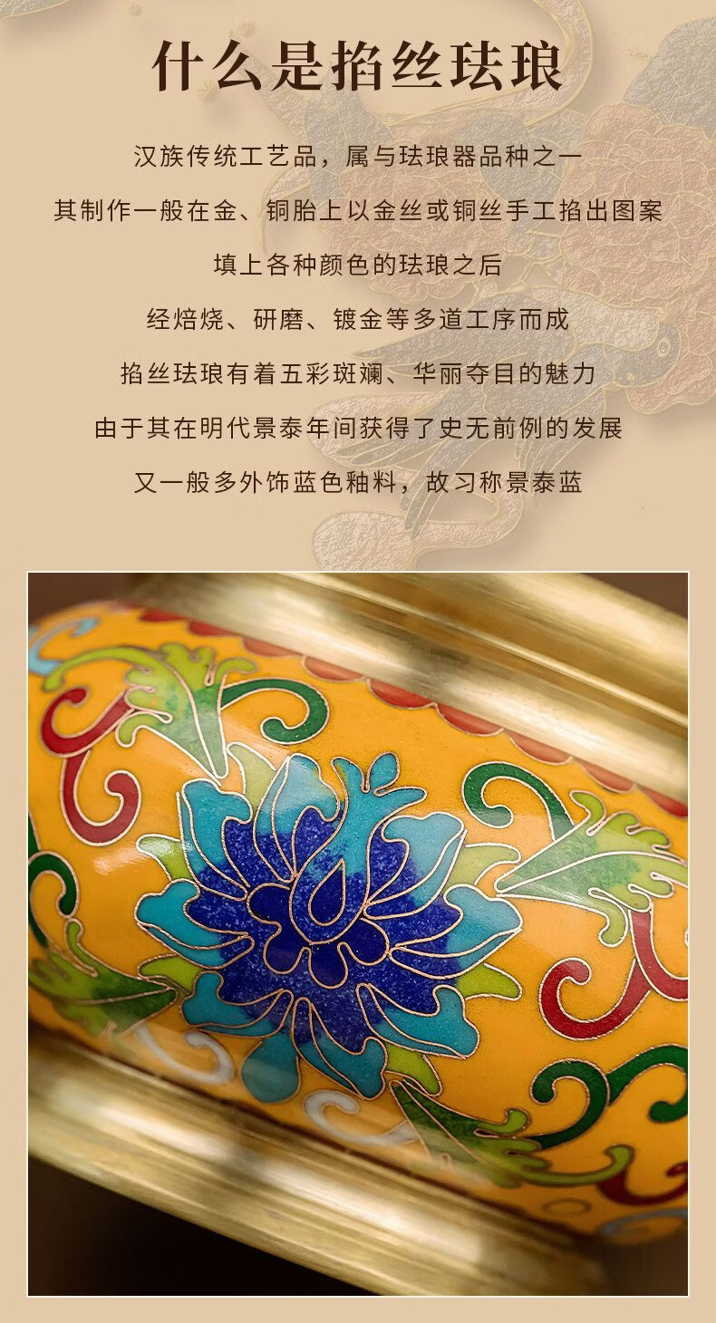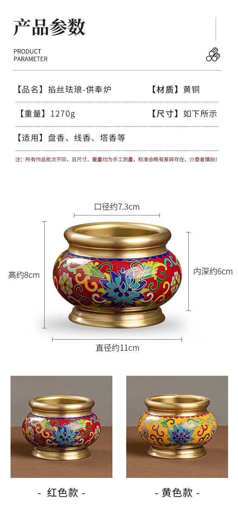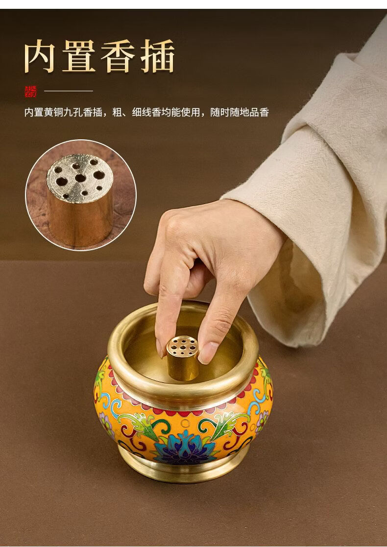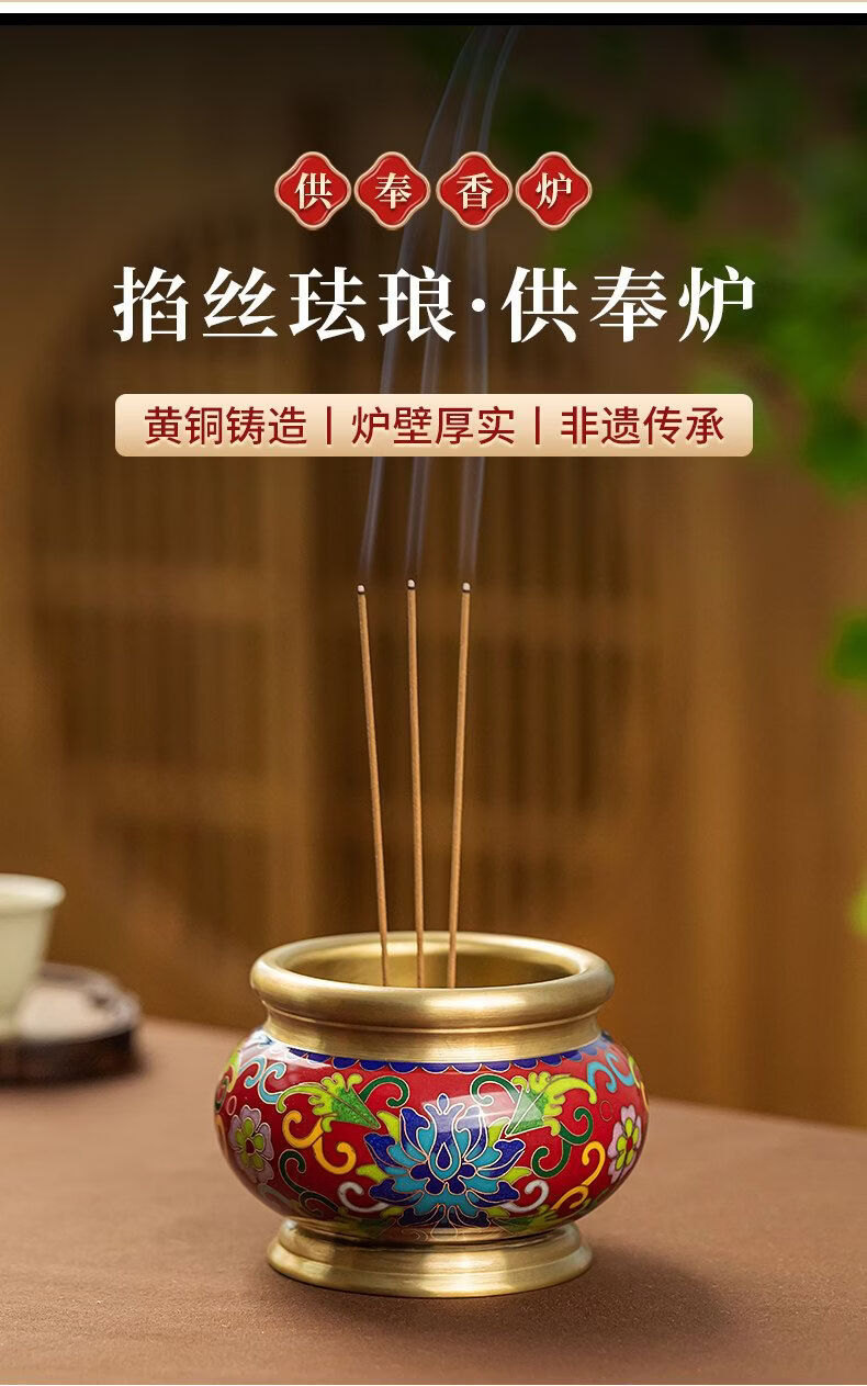 Shantou Lin Village cloisonné copper stove household incense sandalwood enamel Buddha hall worship yellow offering stove + black wire