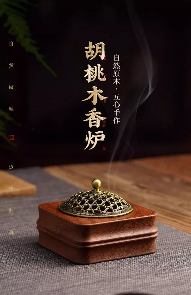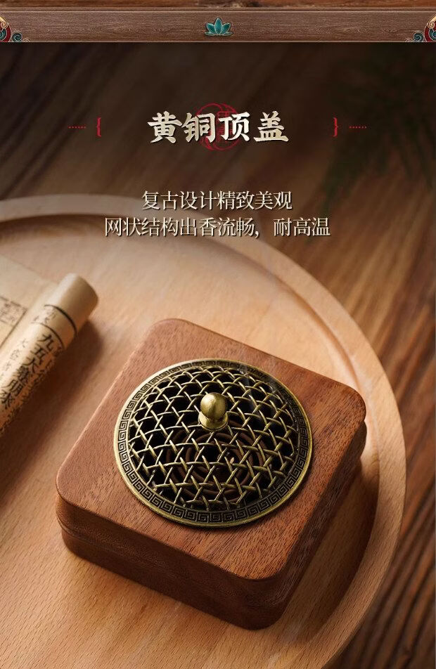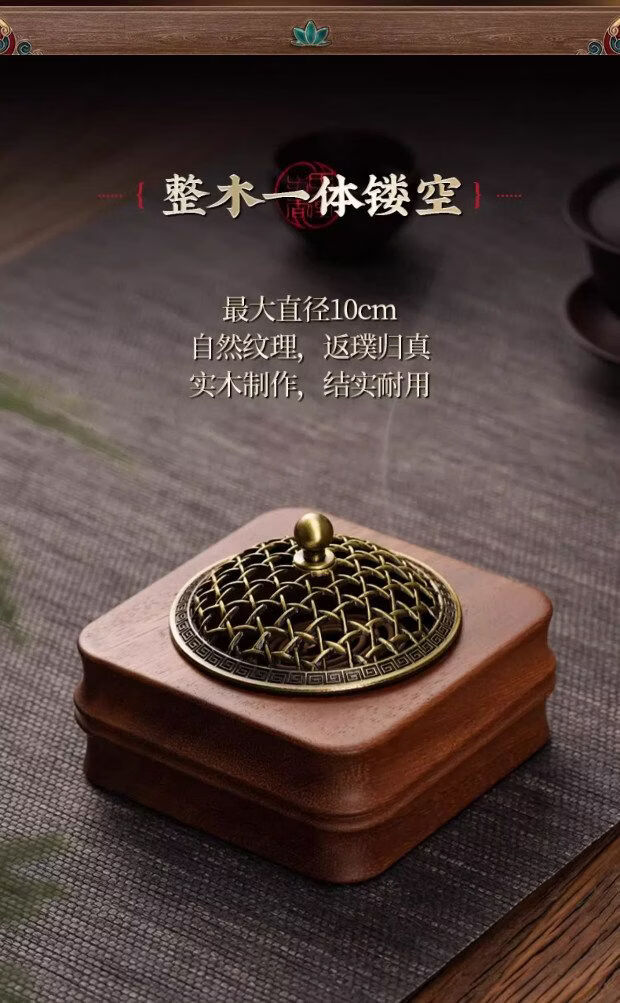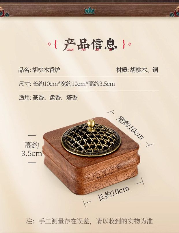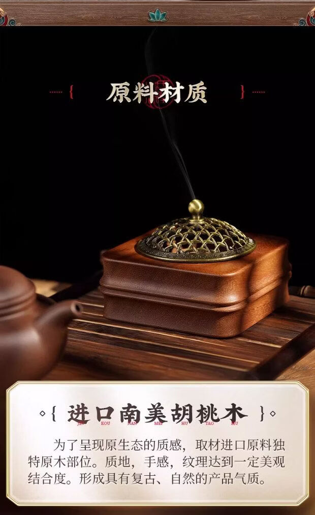 Shantou Lincun retro walnut incense burner household sandalwood seal solid wood ornaments walnut incense burner style 2