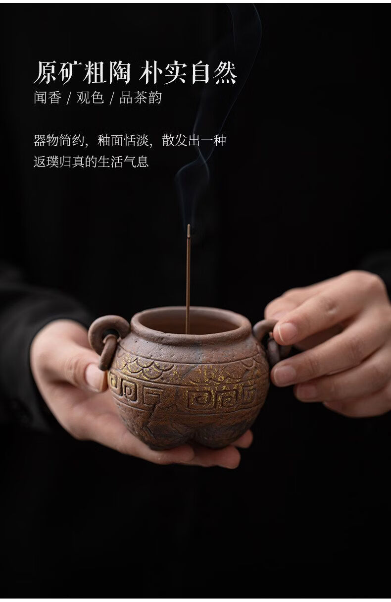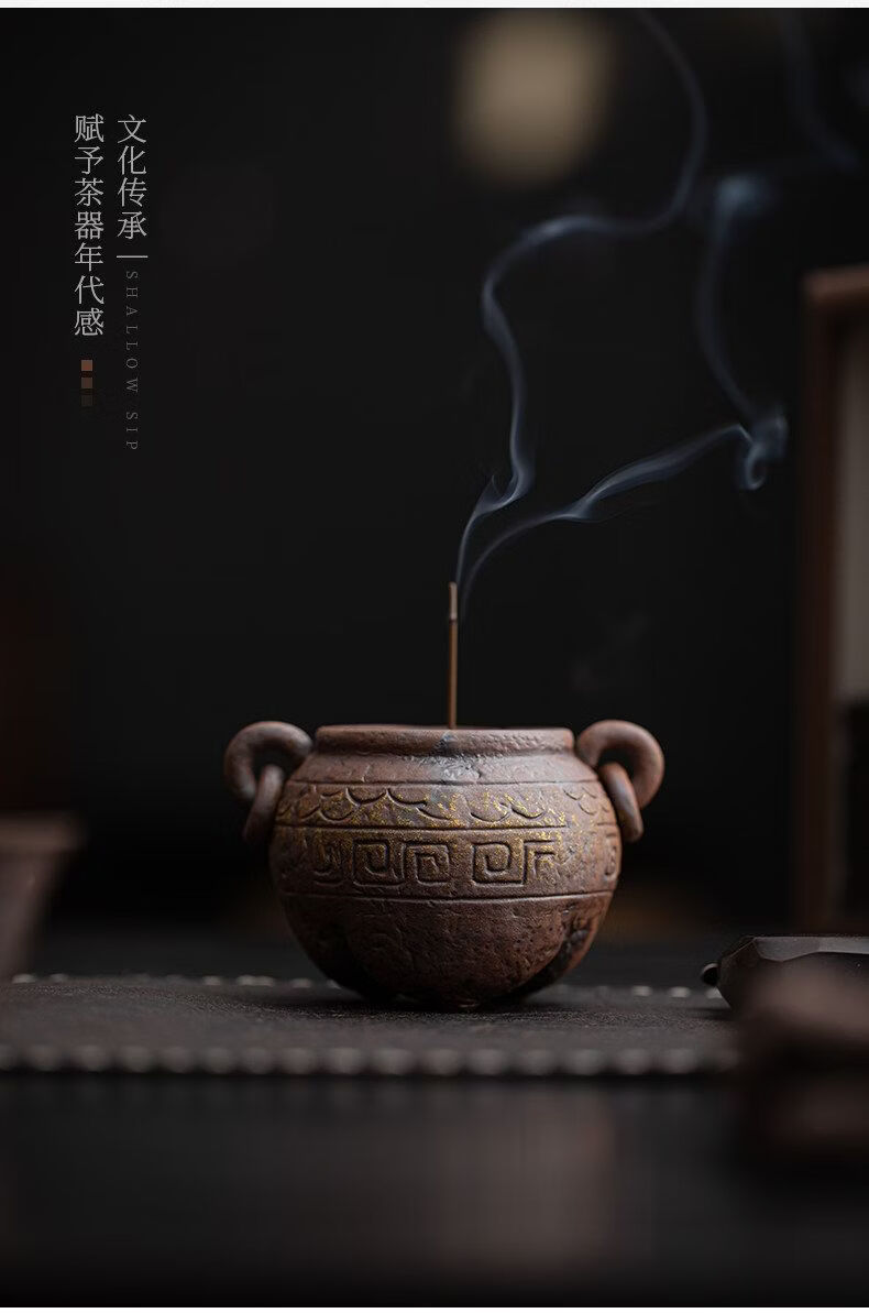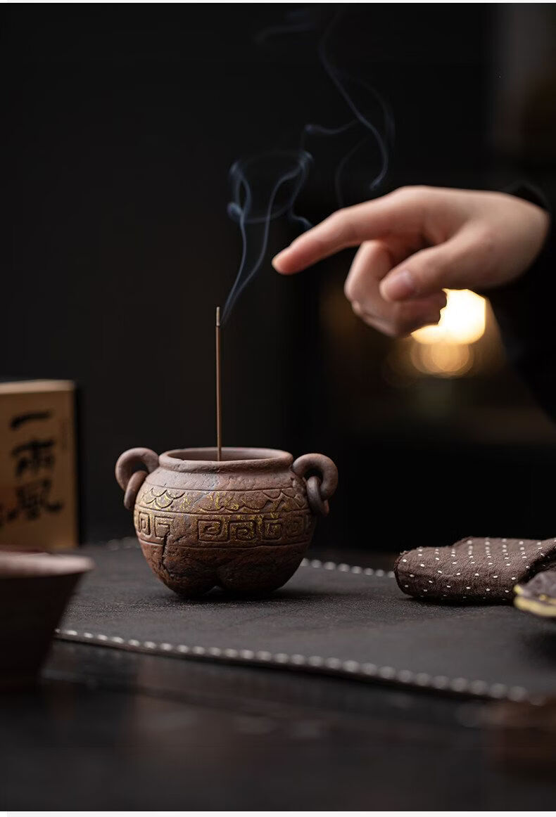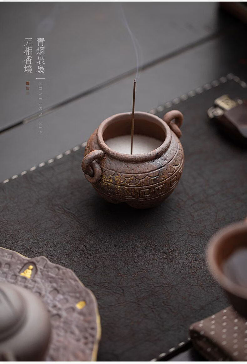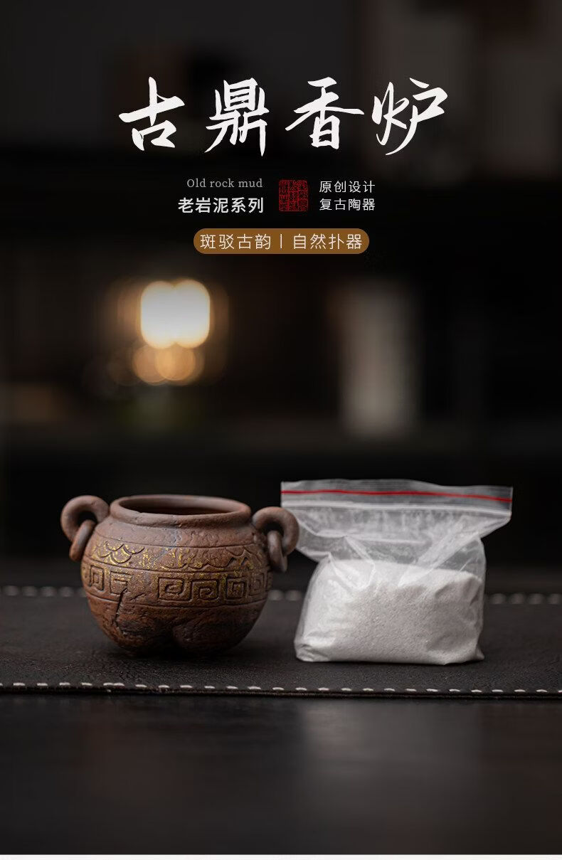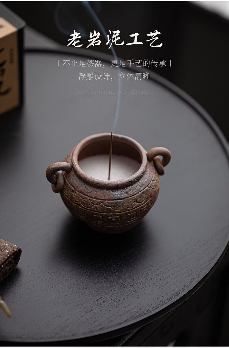 Shantou Lin Village ancient tripod old rock clay ceramic thread incense burner Wabi-sabi wind incense burner ornaments ancient tripod thread stove (including fine sand