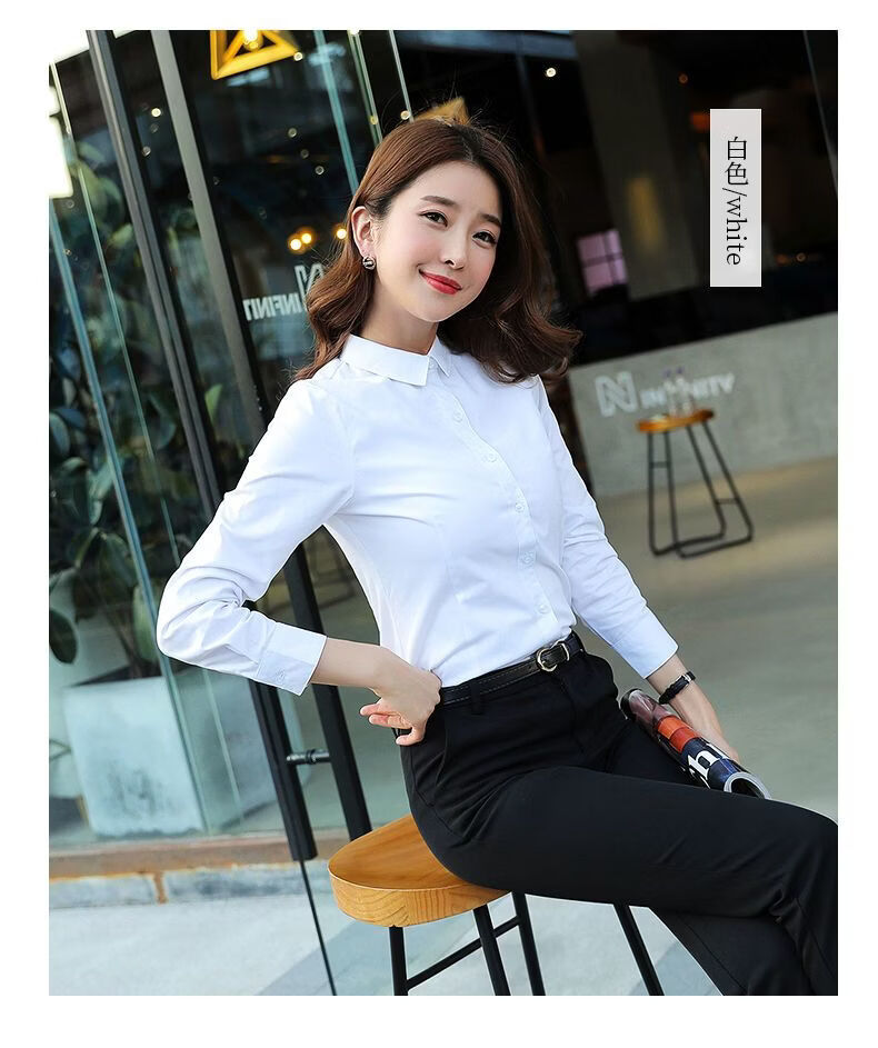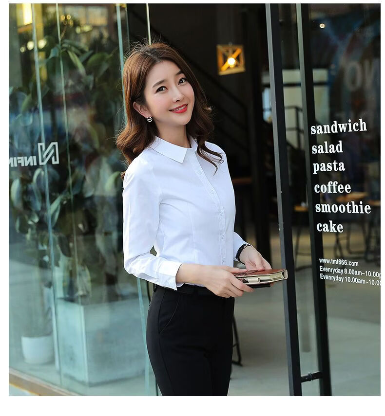ROMON velvet cotton shirt women's professional formal white shirt long-sleeved slim new temperament autumn and winter thickened warm work clothes white velvet free silk scarf L recommended 103-111Jin Jin equals 0.5 kg