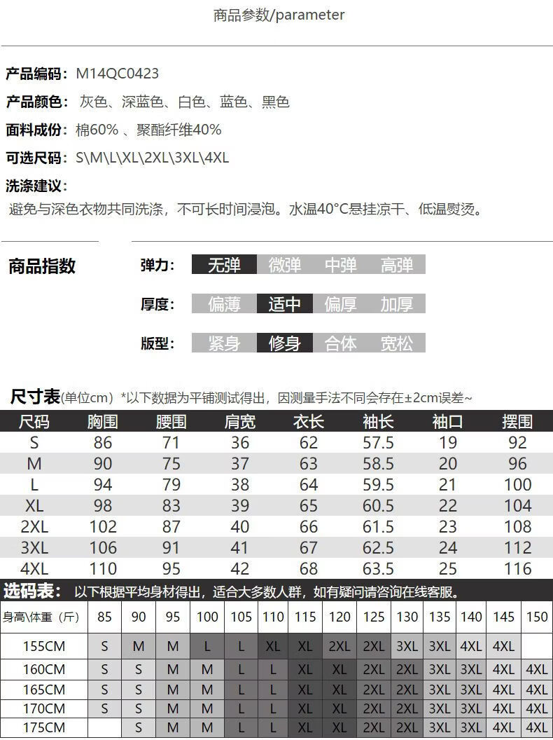 China (cm) 160-165/84-86 165-170 / 88-90 167-172 / 92-96 168-173 / 98-102 170-176 / 106-110