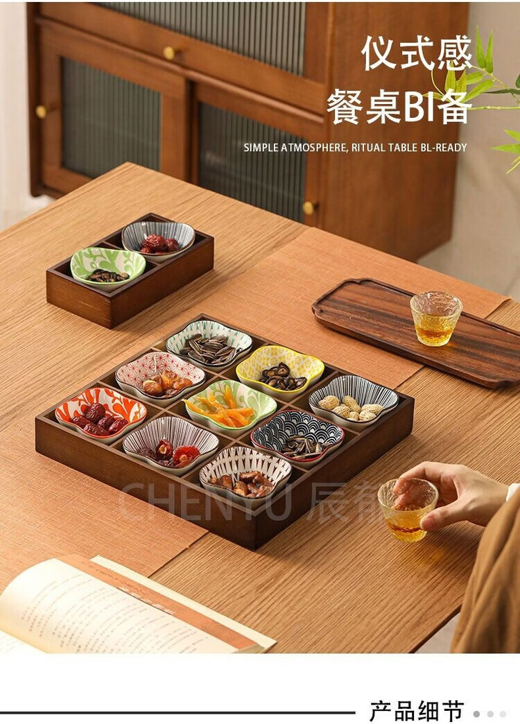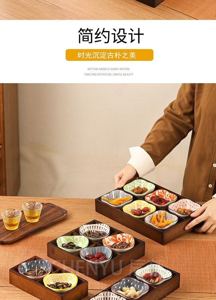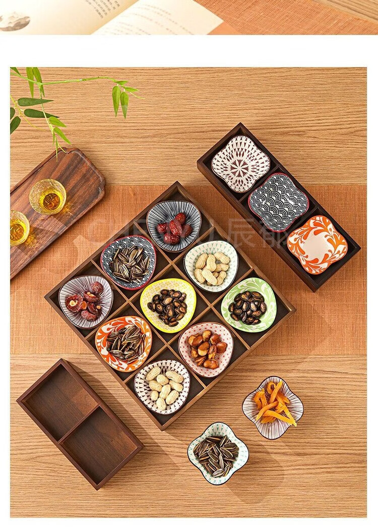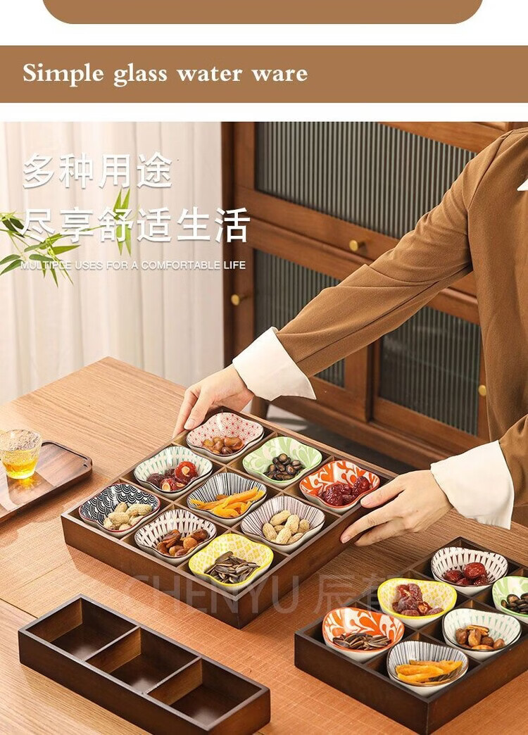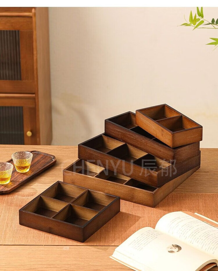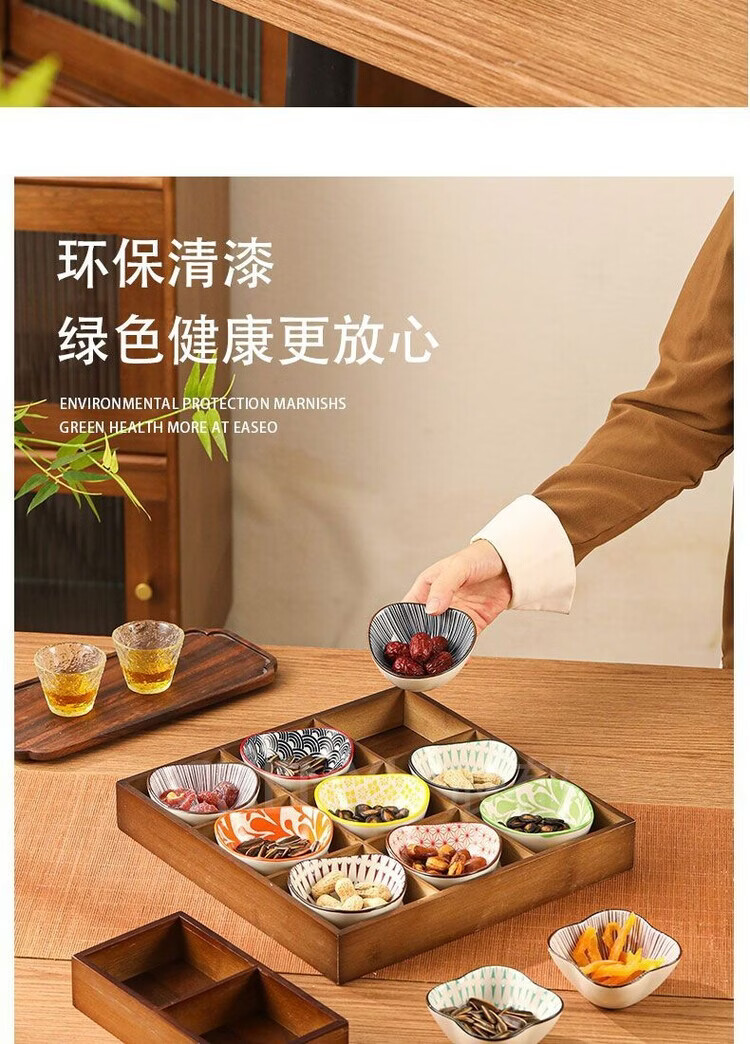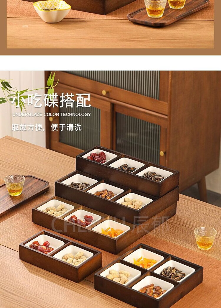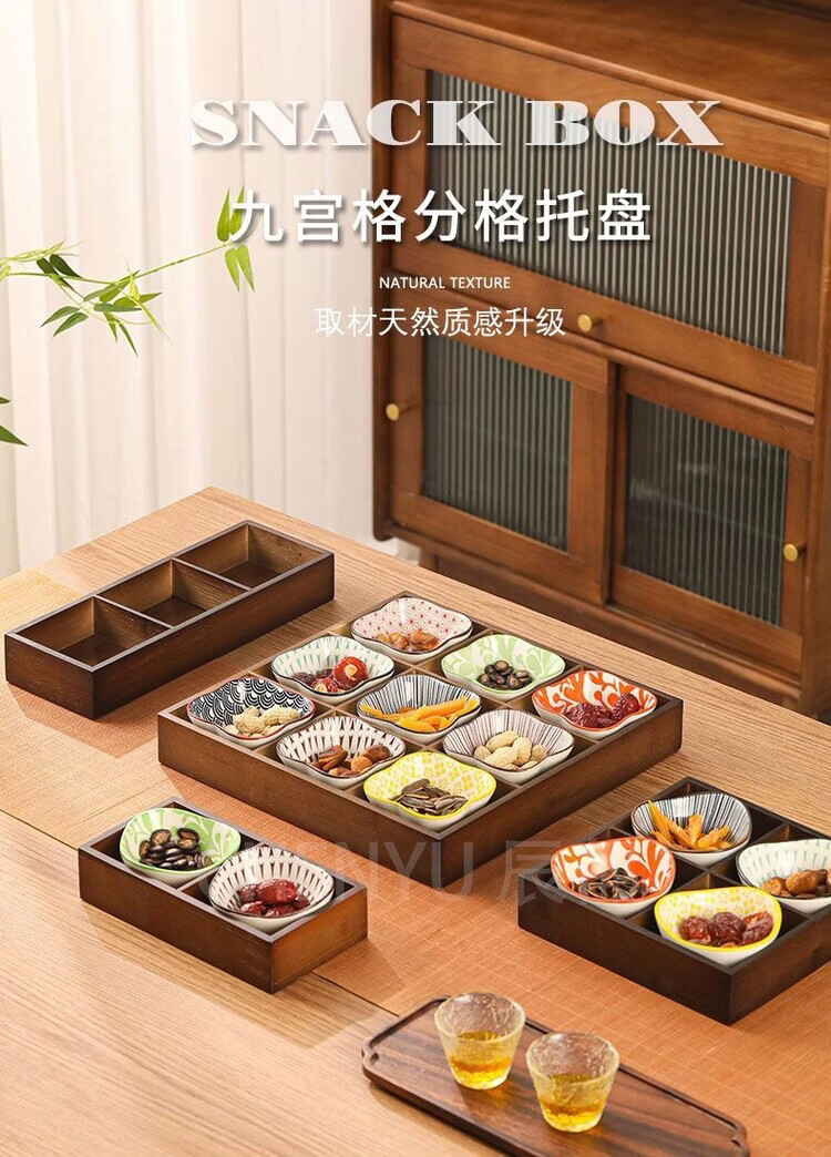 Fantasy walnut color nine-square grid tray household dried fruit tray fruit snack tray around the stove tea snack tray divided grid tray walnut two-square grid