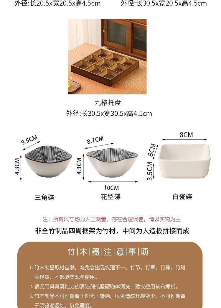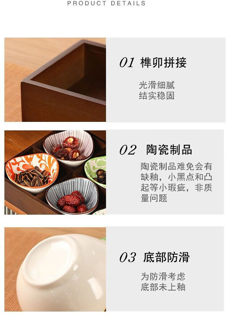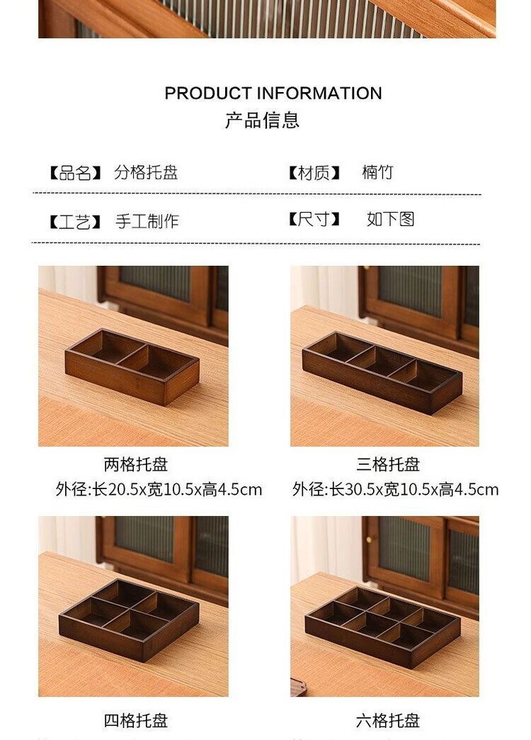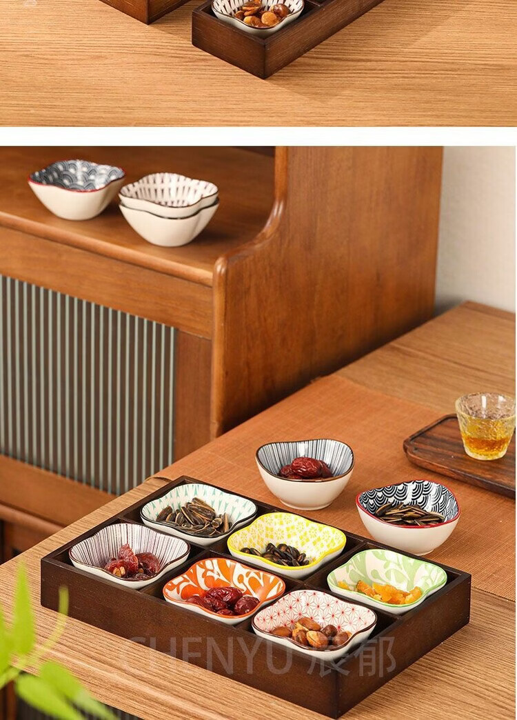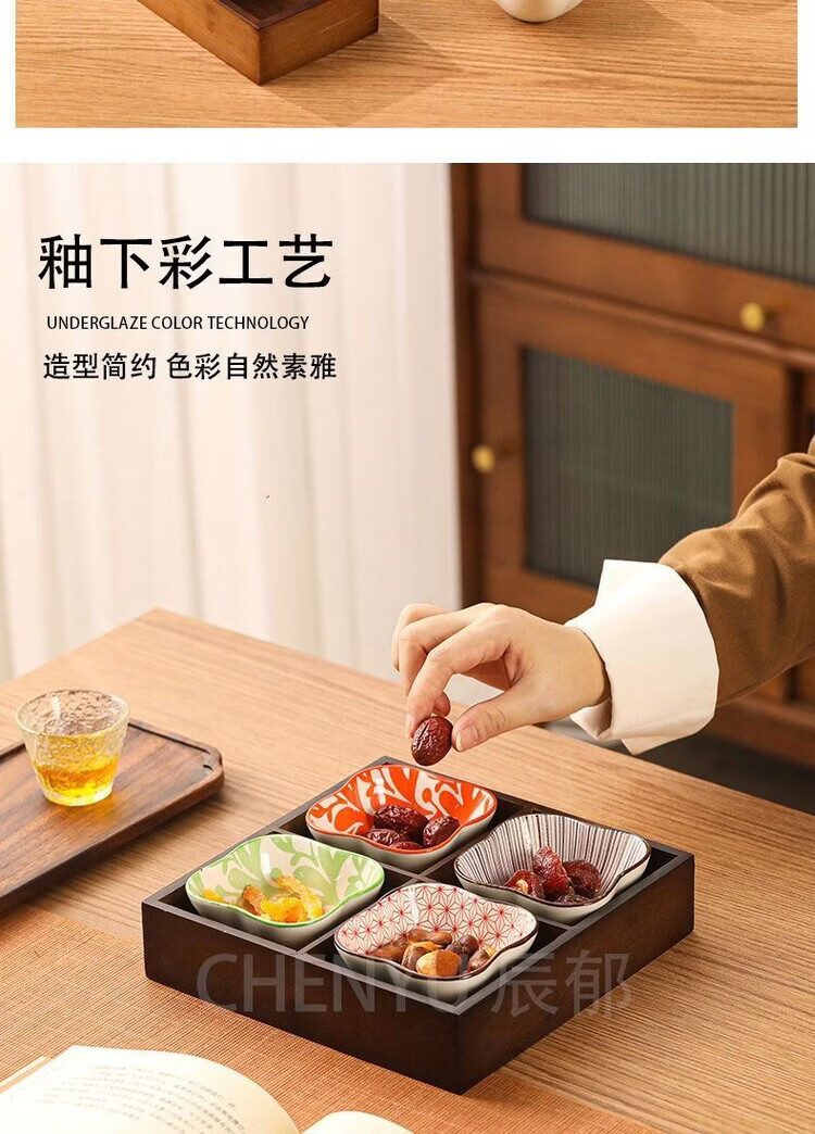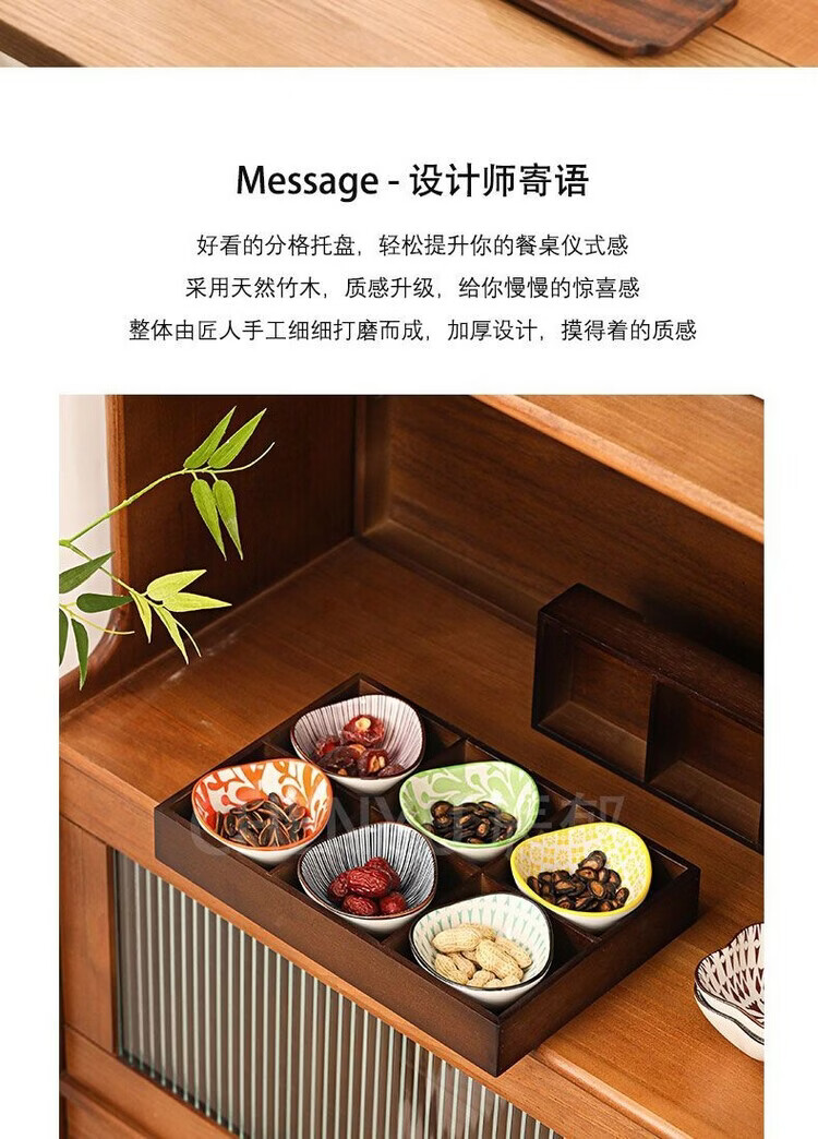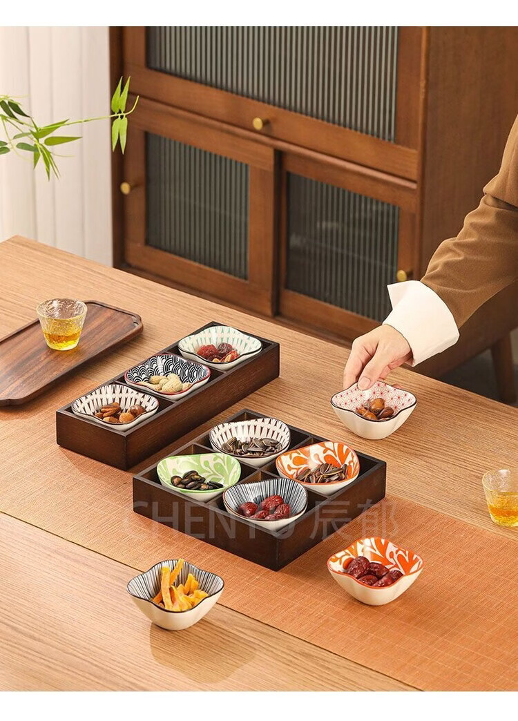 Fantasy walnut color nine-square grid tray household dried fruit tray fruit snack tray around the stove tea snack tray divided grid tray walnut two-square grid