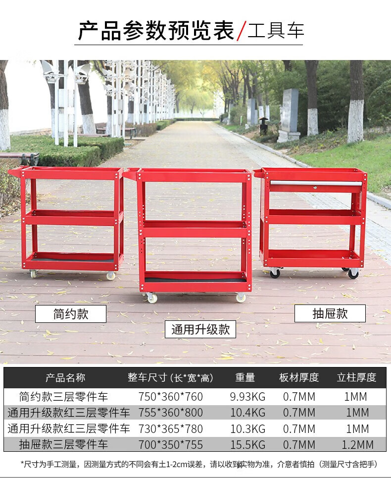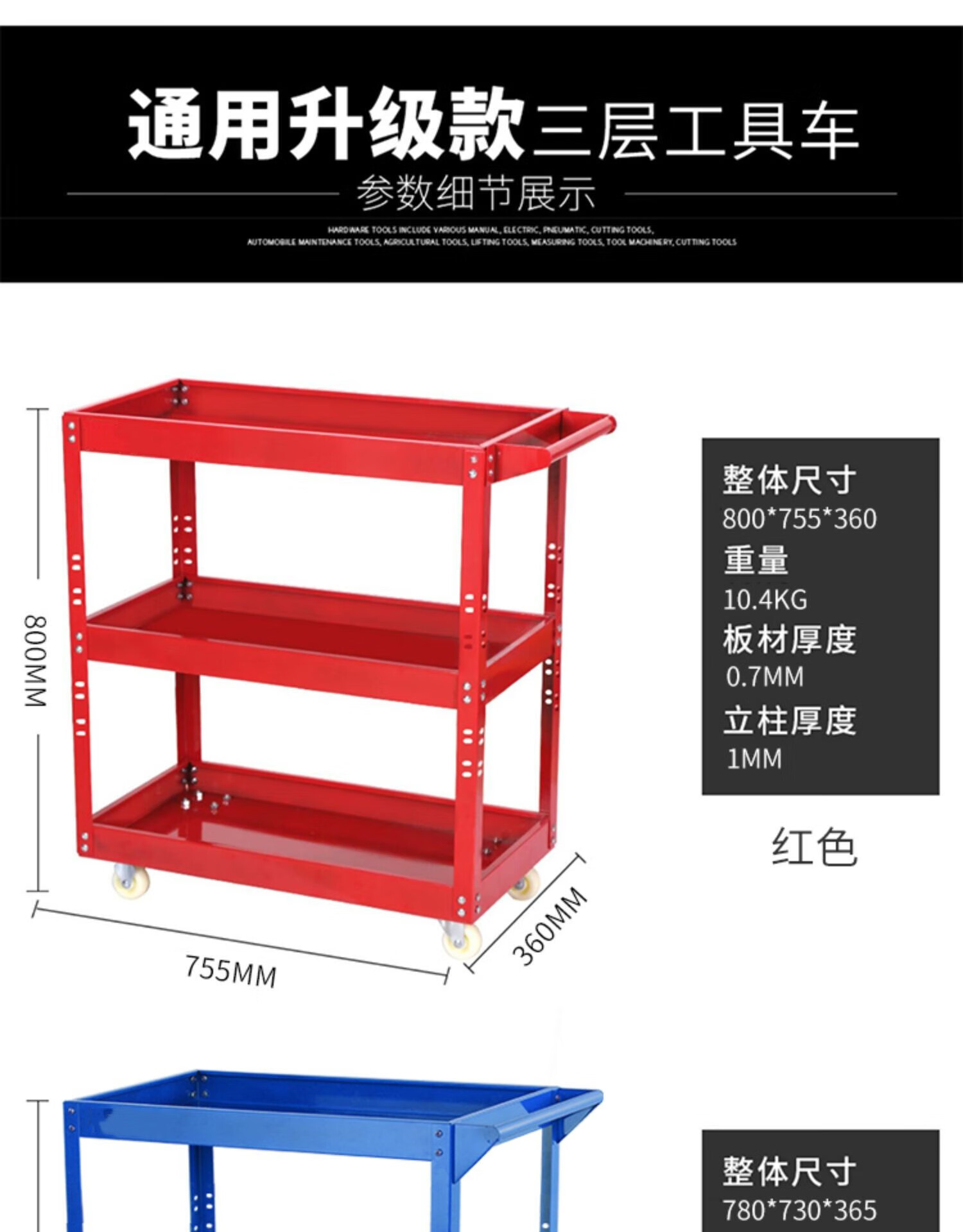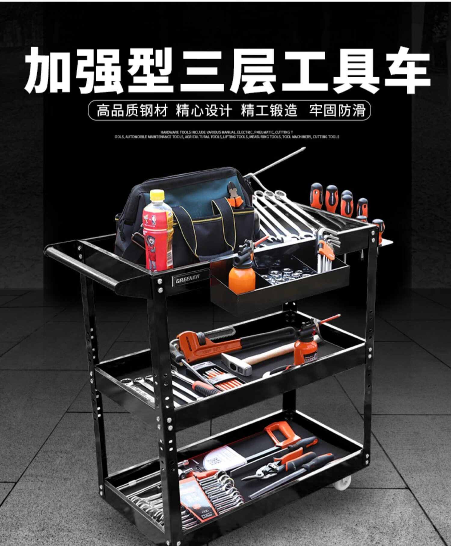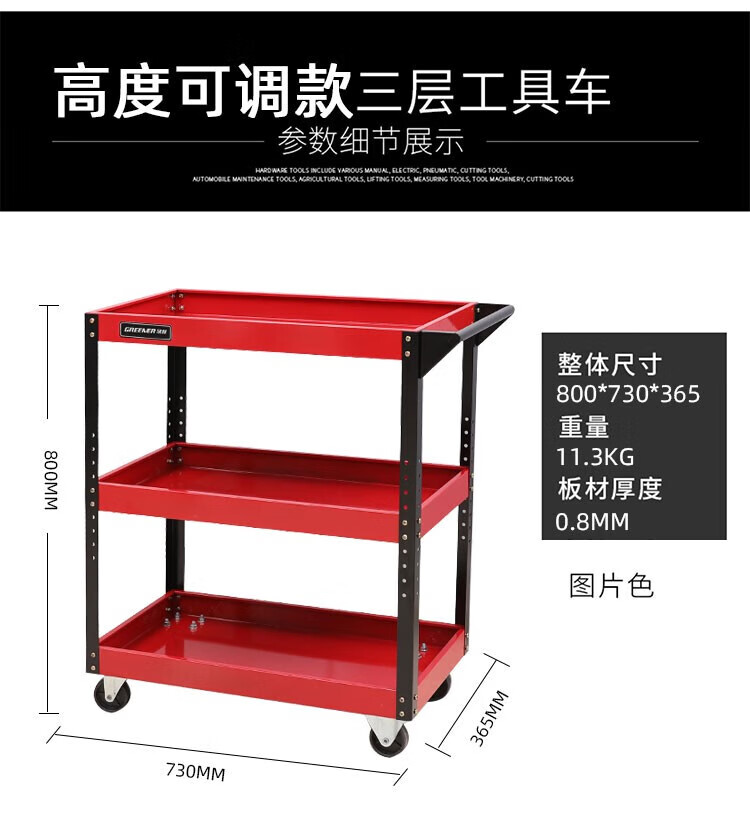Sailoto mobile tool cart, shelf storage workshop, three-layer multi-functional hardware cabinet for auto repair, drawer style hook, black