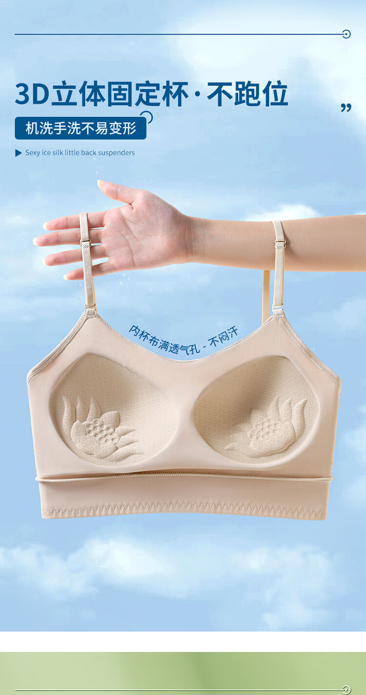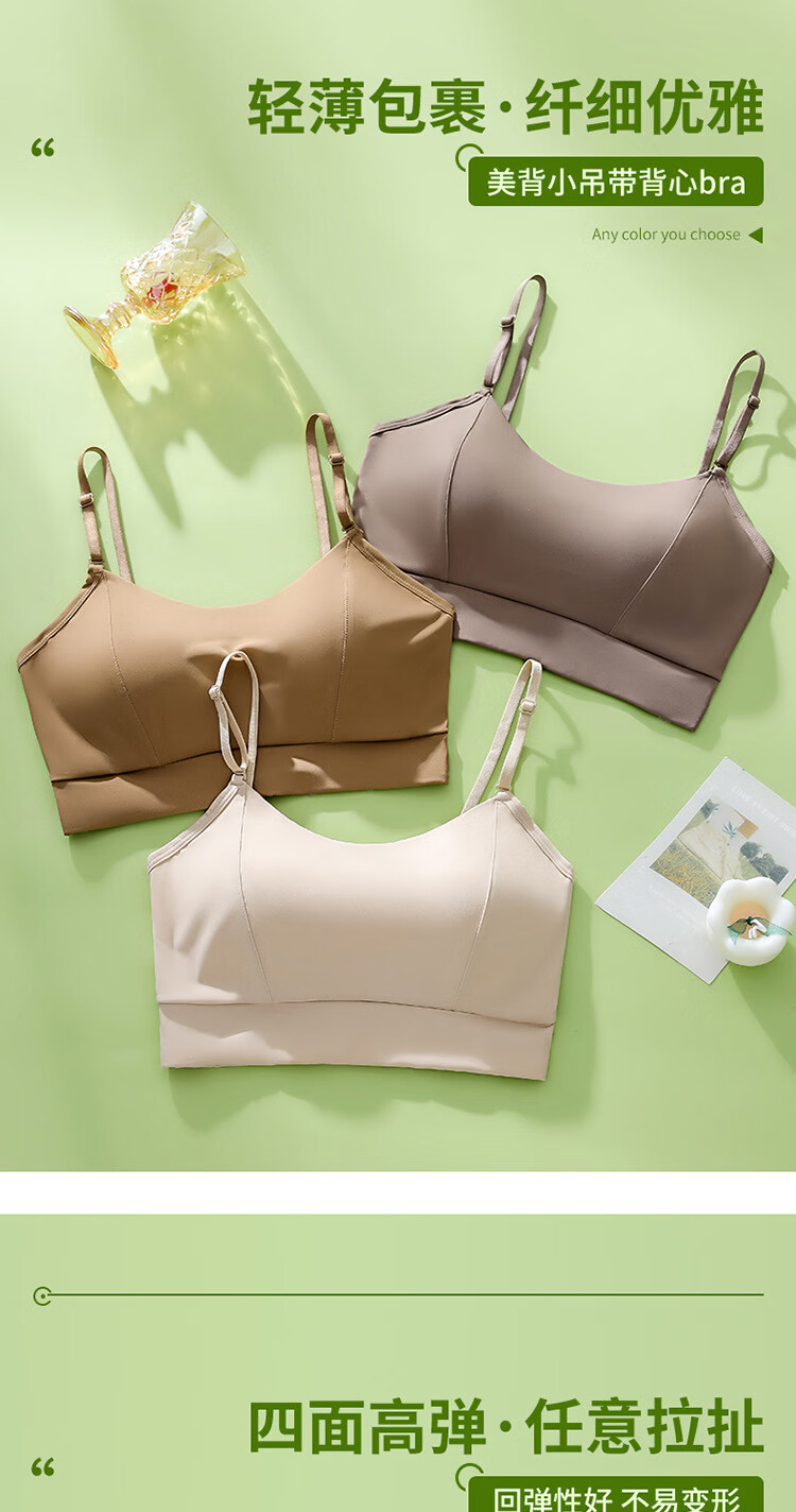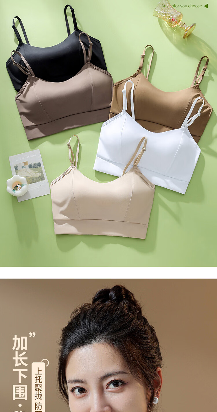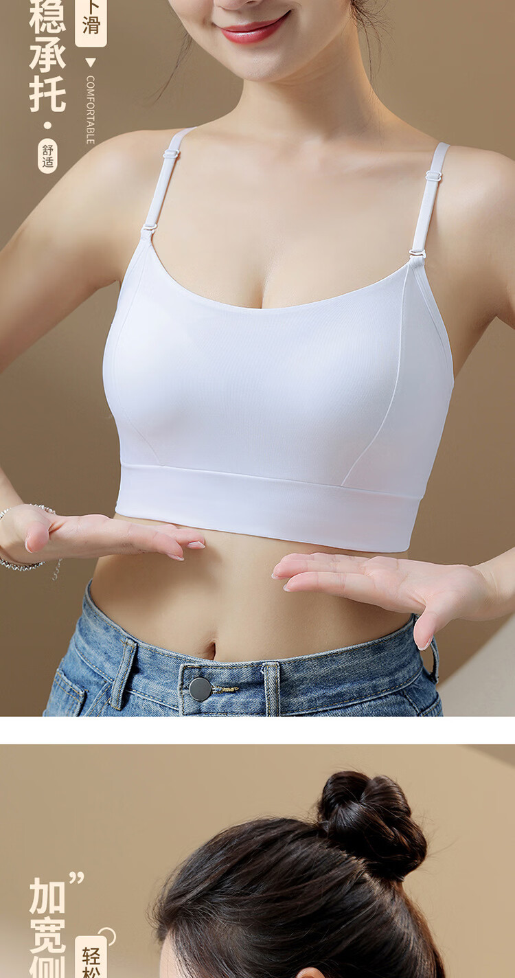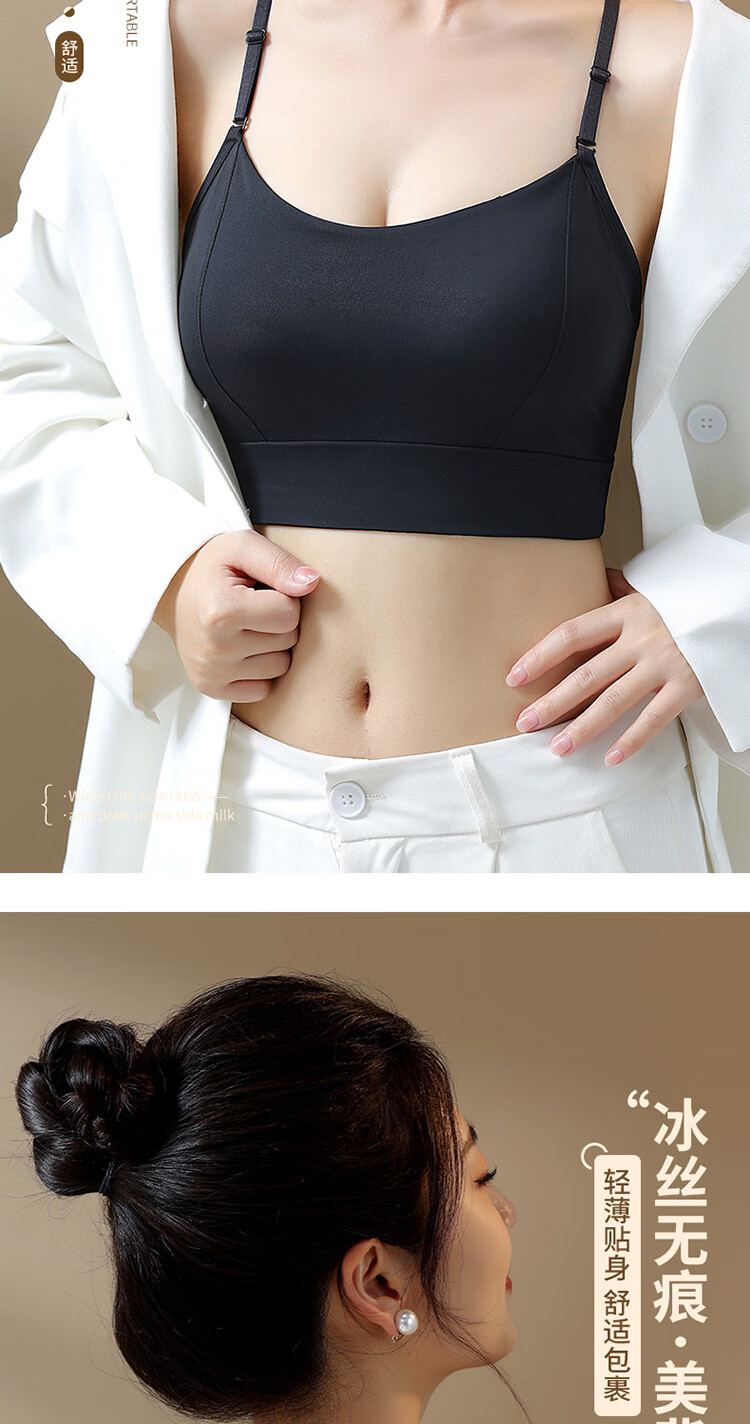 Summer Thin Seamless Beautiful Back Sling with Breast Pads Gathering Upper Support Fixing Cup Lightweight Solid Color Large Size Vest Black M