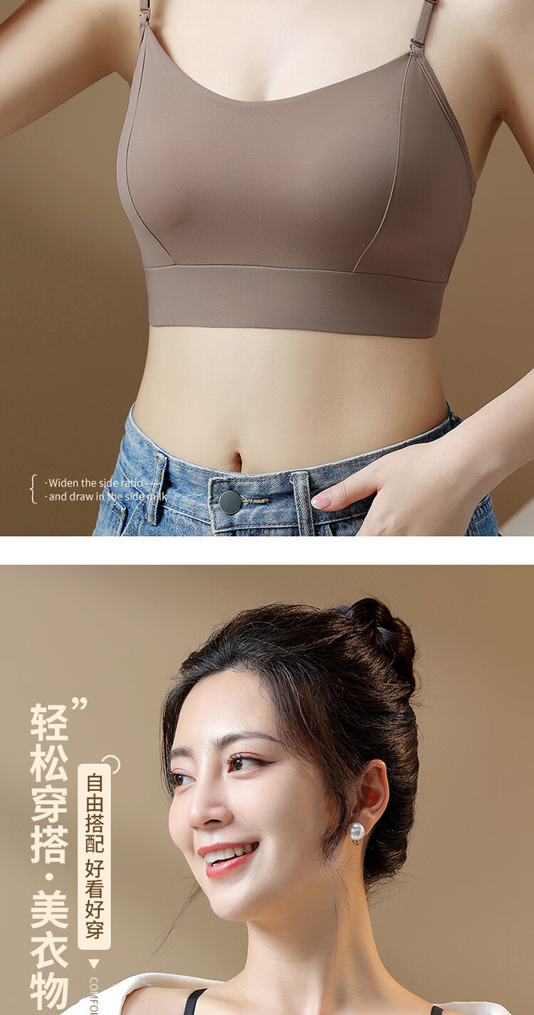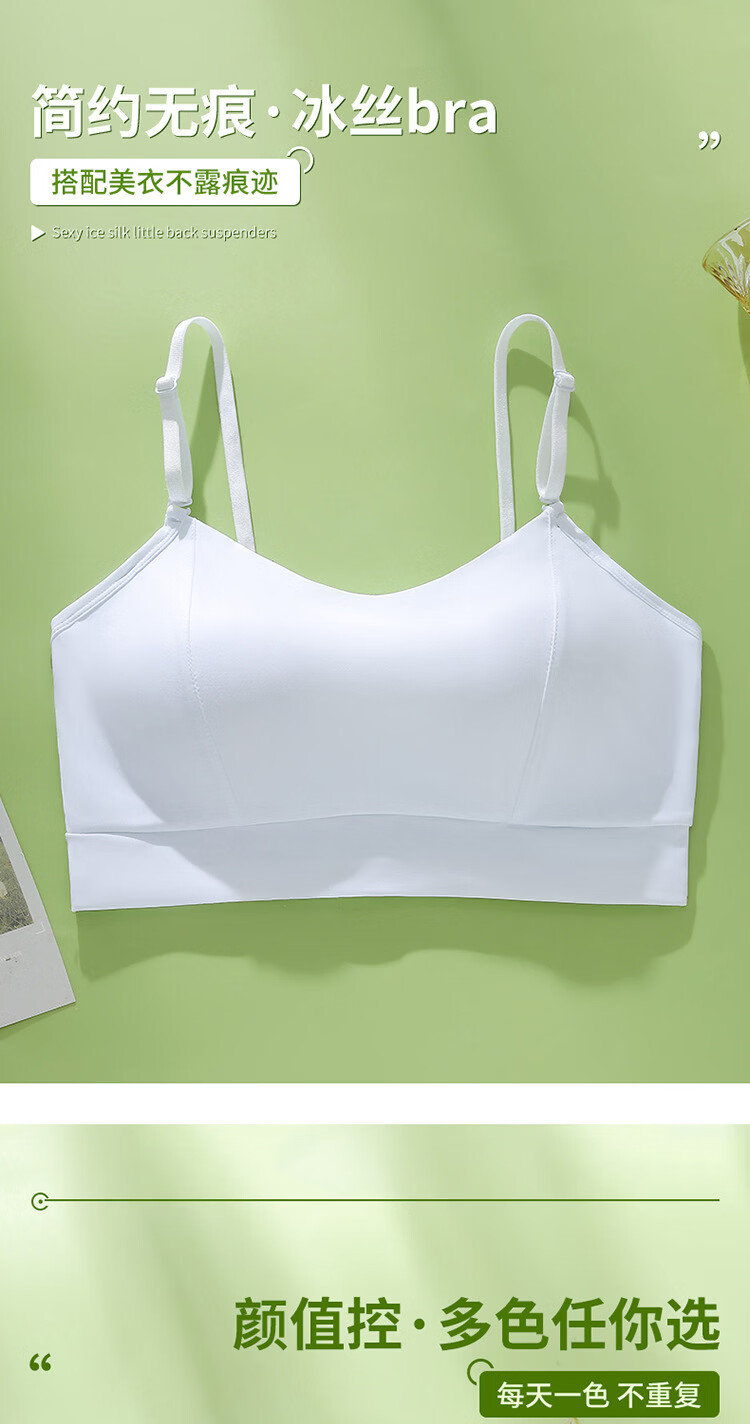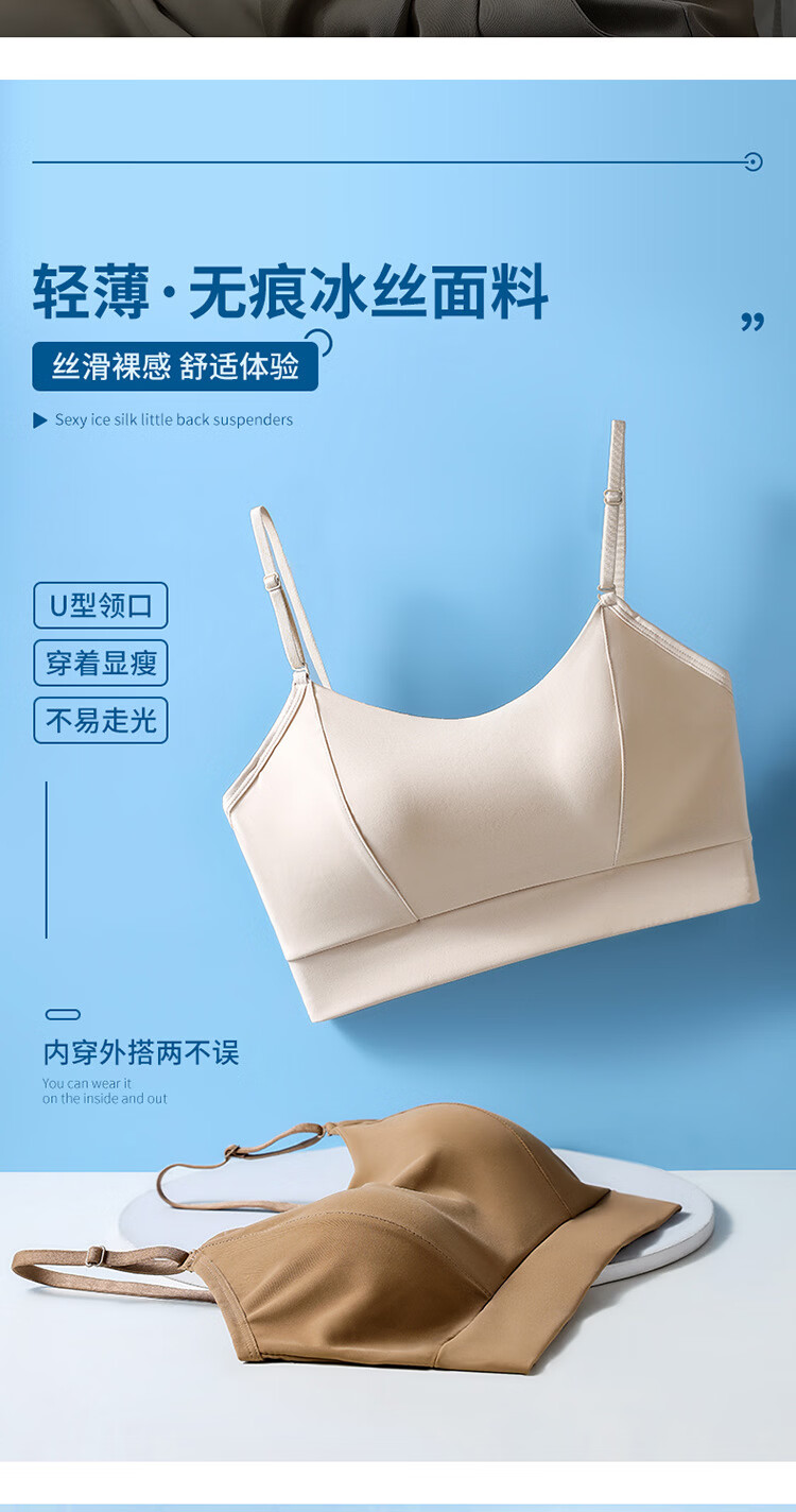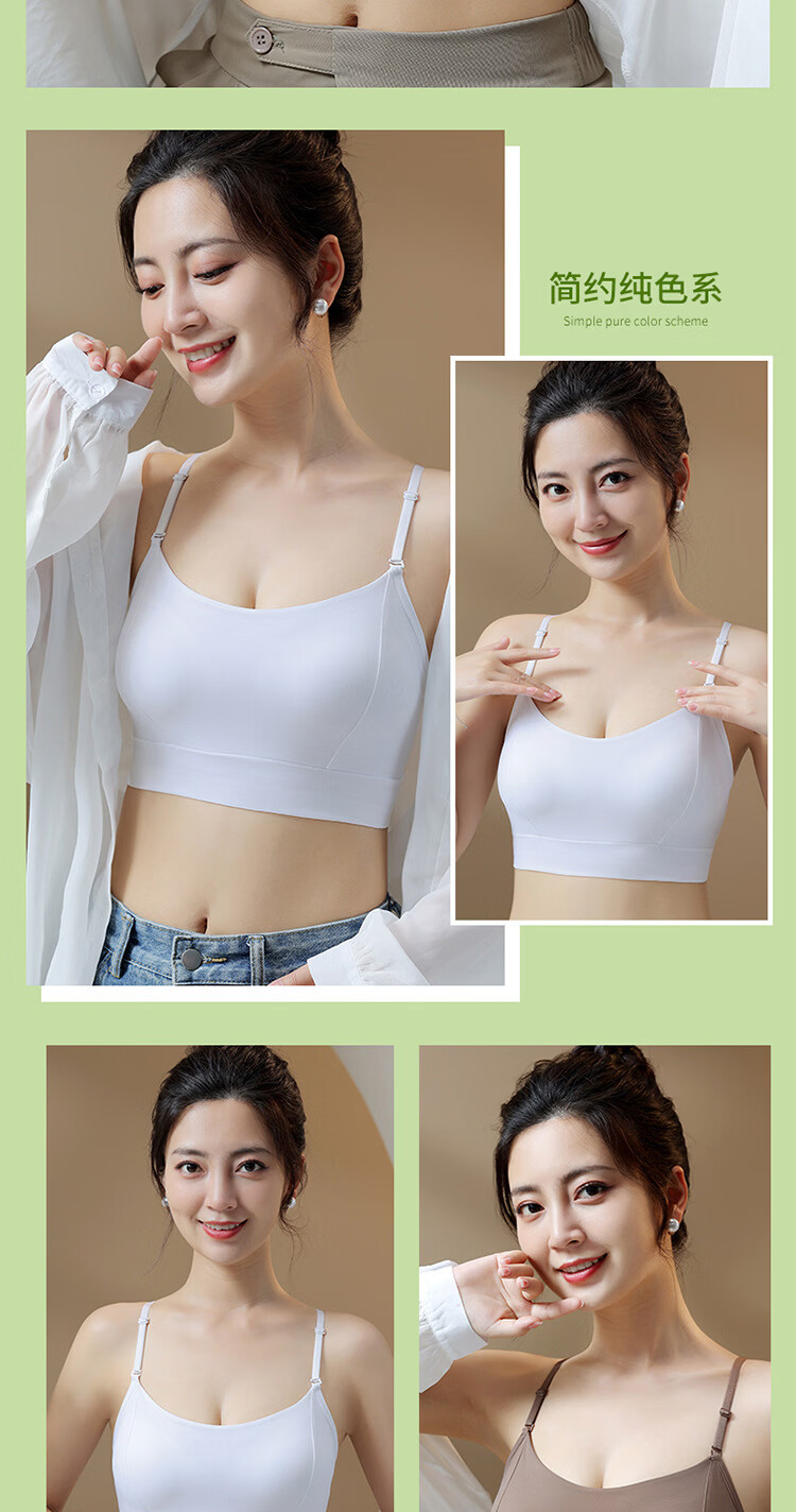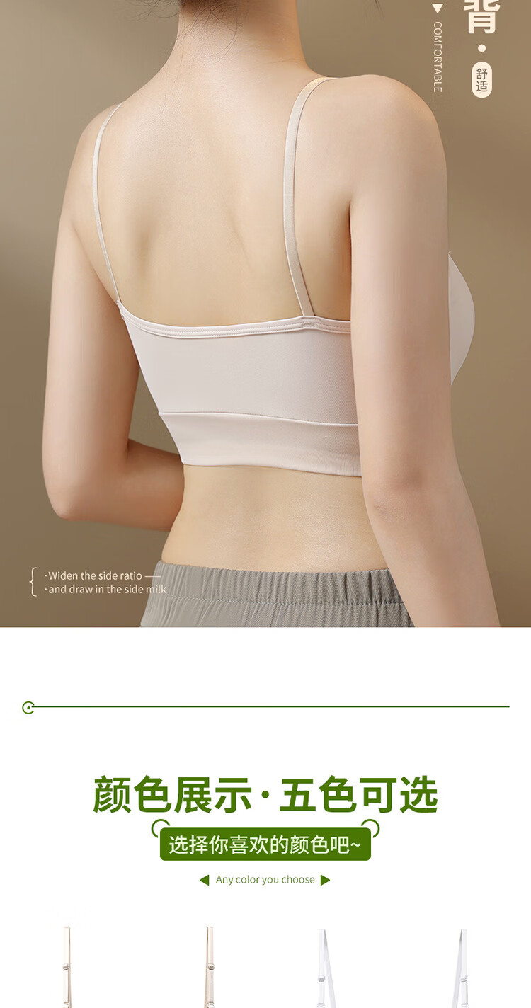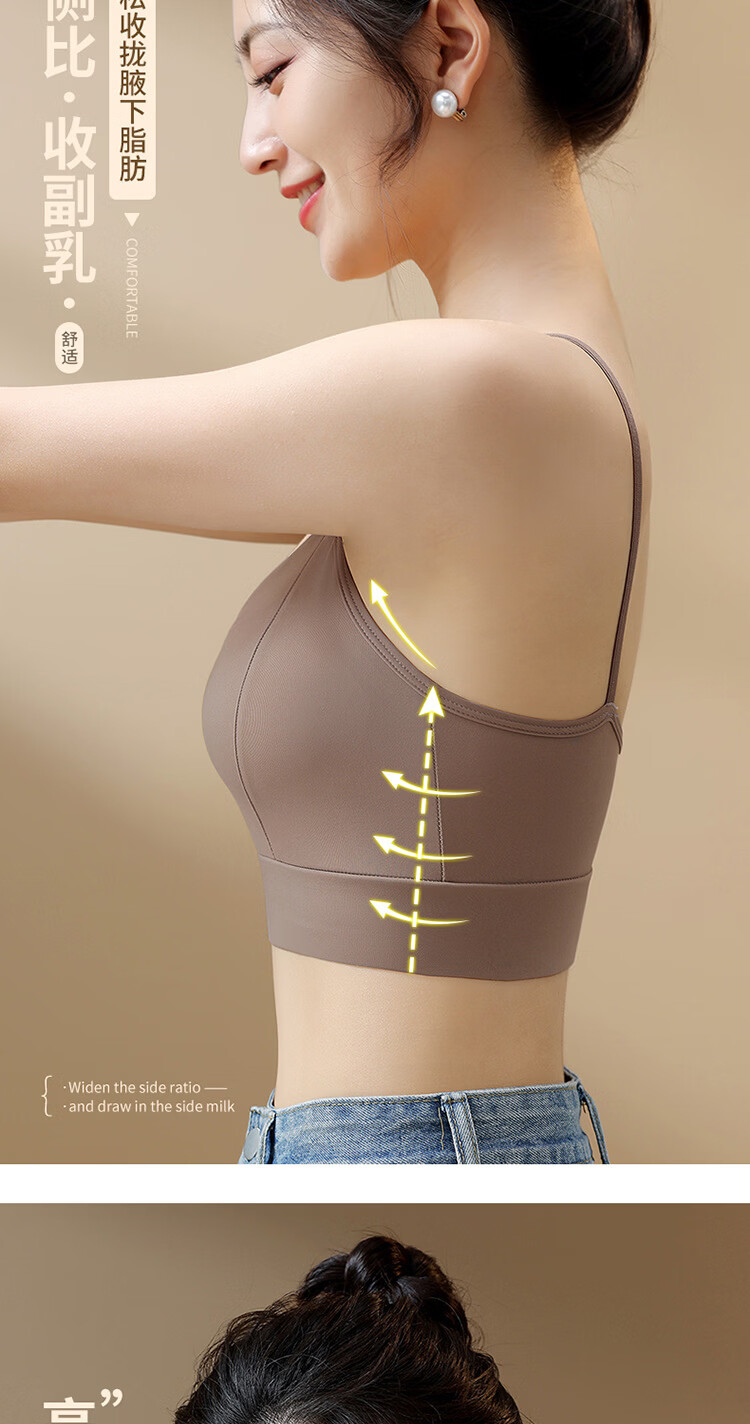 Summer Thin Seamless Beautiful Back Sling with Breast Pads Gathering Upper Support Fixing Cup Lightweight Solid Color Large Size Vest Black M