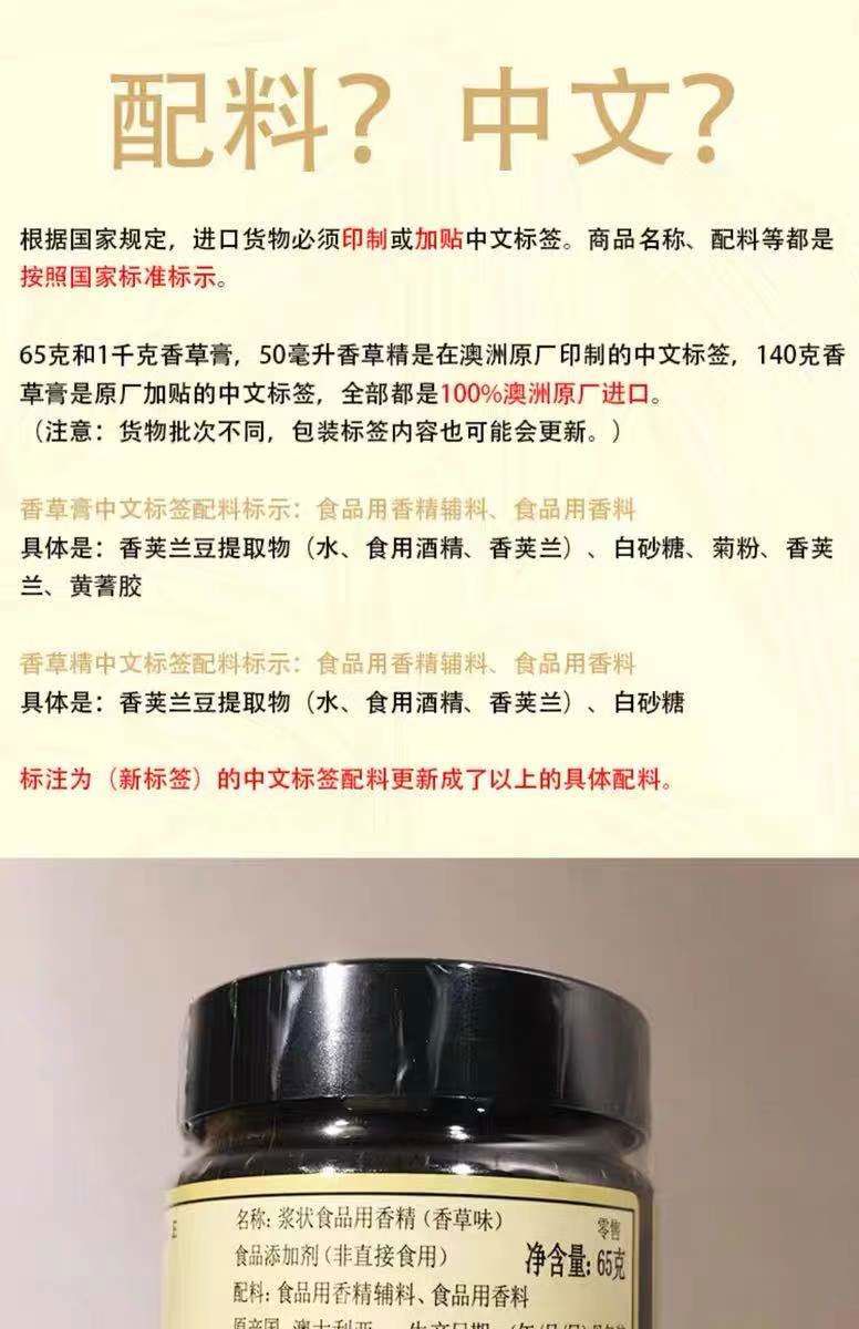 Australian Queen Vanilla Paste 140g Edible Natural Vanilla Extract Flavored Pod Seed Paste Concentrate for Baking Madagascar Vanilla Paste 473 Points 2ml