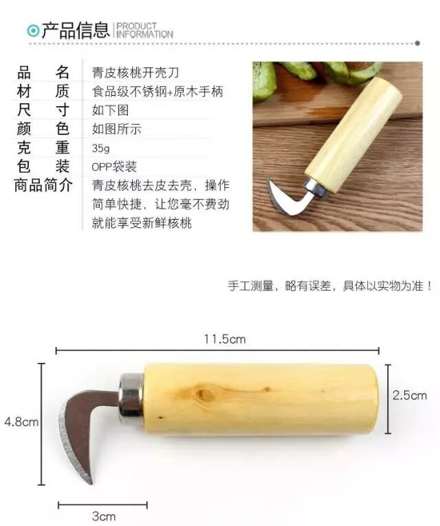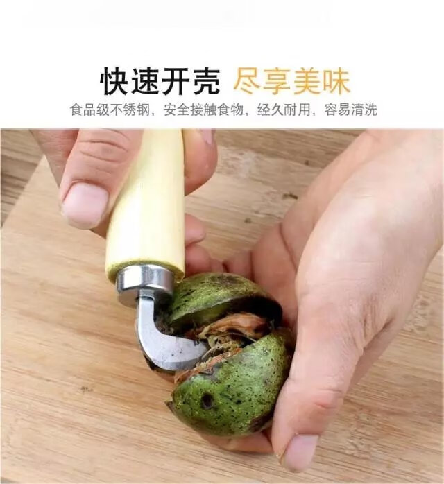 Handmade green peeled walnut knife to peel fresh green walnuts tool Shaanxi anti-slip wooden handle walnut clip 3-pack anti-slip handle walnuts