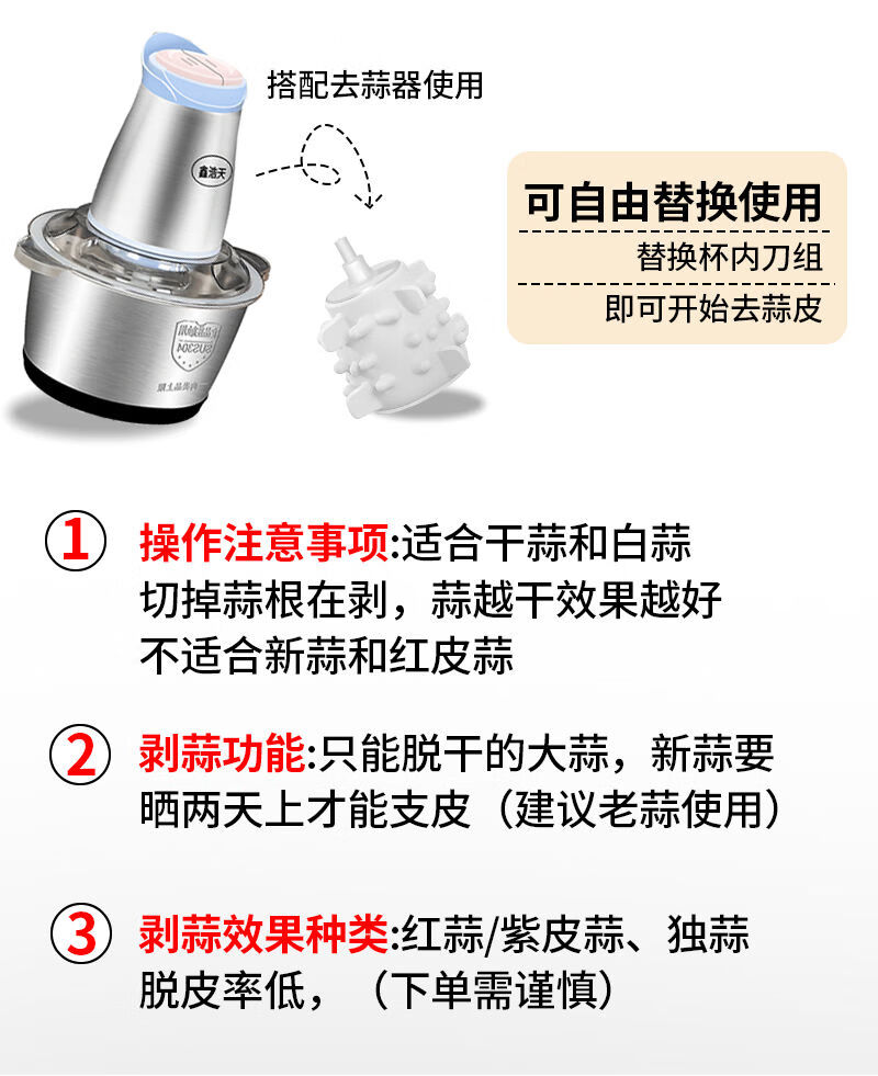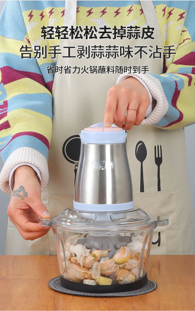 Garlic artifact commercial garlic mince electric garlic blender minced garlic minced garlic machine crushed garlic minced garlic minced garlic mince 3.5 liter red plastic cup 1 knife head + 4 spare knives