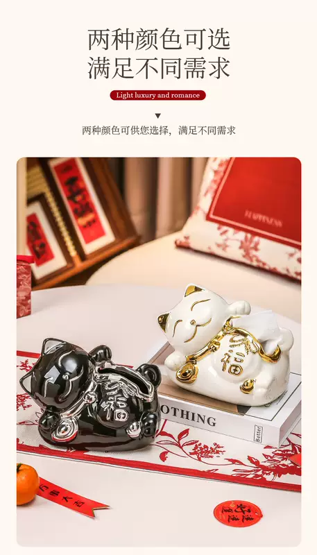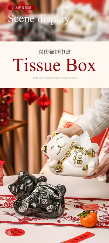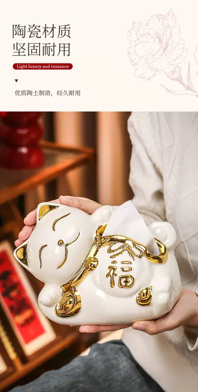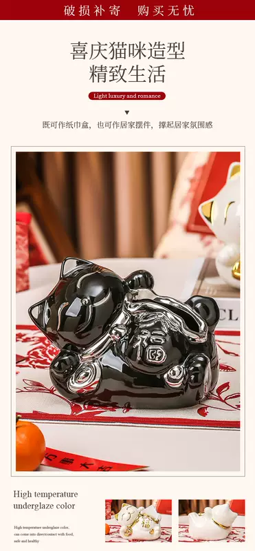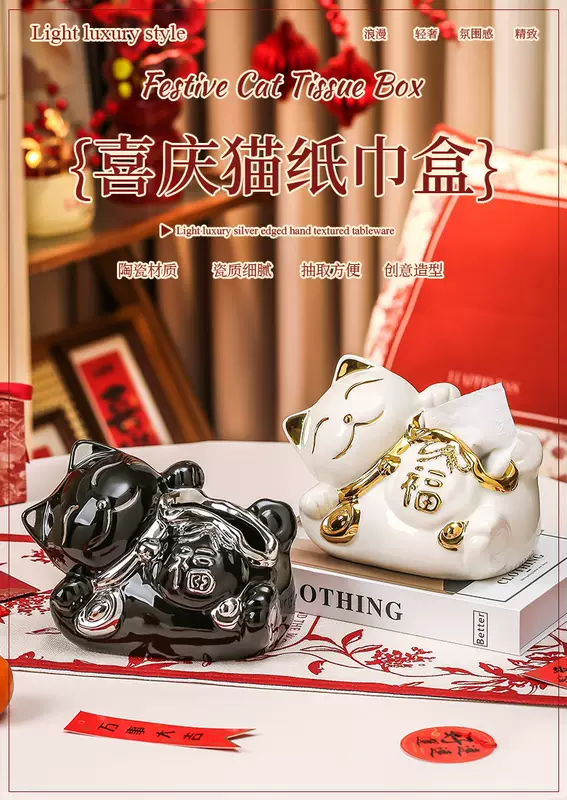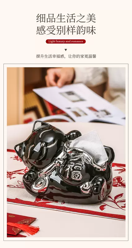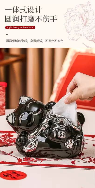 Yusenyi Lucky Cat Tissue Box Cute New Home Living Room Coffee Table Exquisite Ornaments Light Luxury High-Level Creative Tissue Box (Platinum) Lucky Cat Tissue Box
