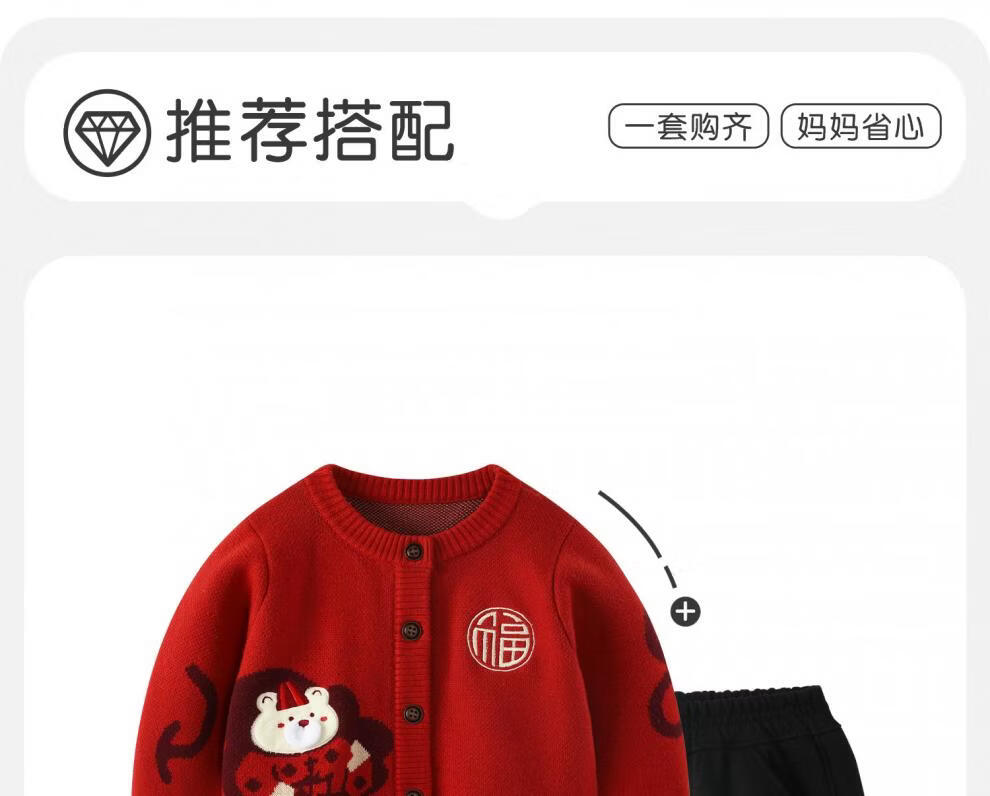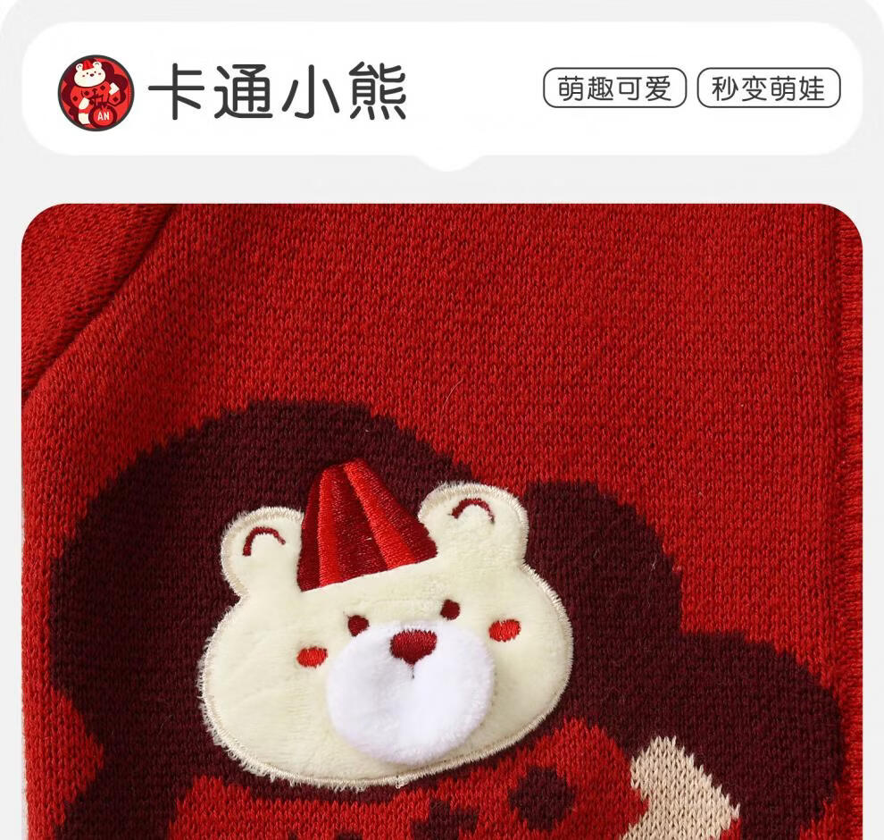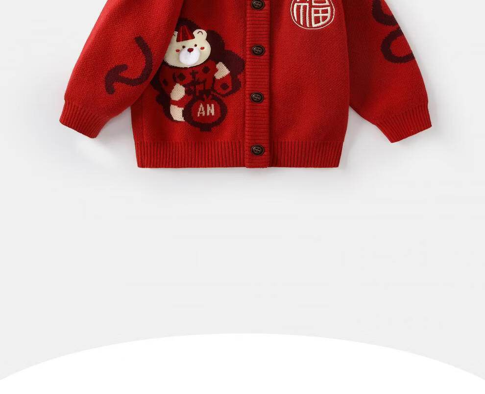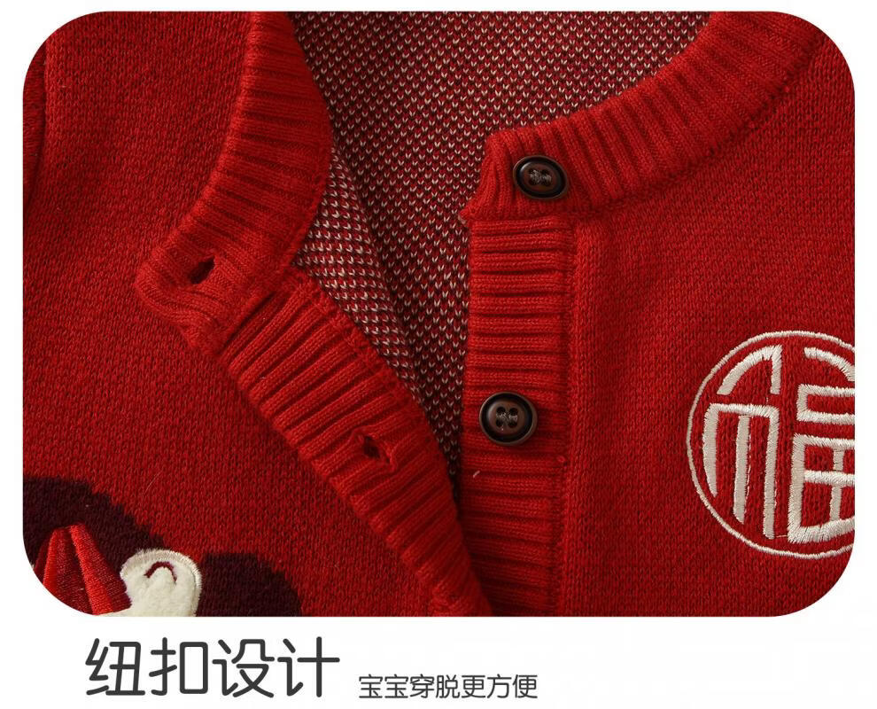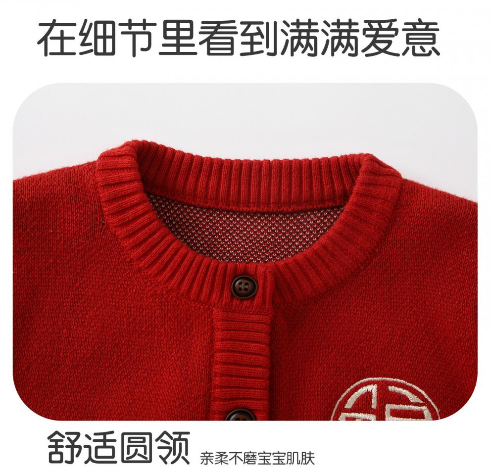 BORBOON B New Year's greetings suit for baby boy plus velvet suit for baby boy red sweater autumn and winter knitted cardigan two-piece set for boys Zhou 2-piece set 6768 plus velvet 73 cm