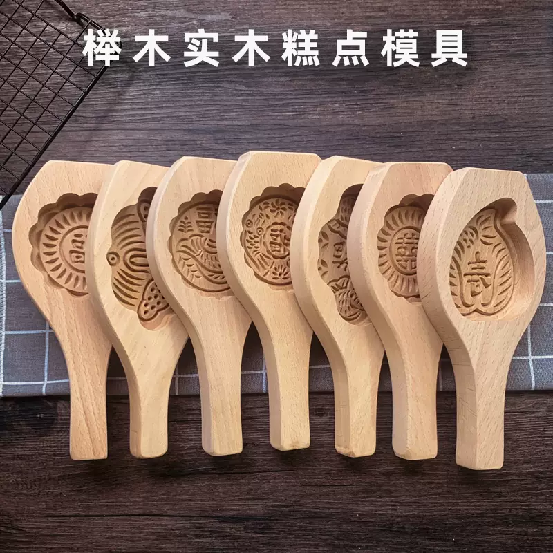 Yusenyi Beech Wood Mid-Autumn Mooncake Mold Chinese Pastry Printing Piece Printing New Year Cake Old-fashioned Baking Equipment Mung Bean Cake Mold Full of Blessings