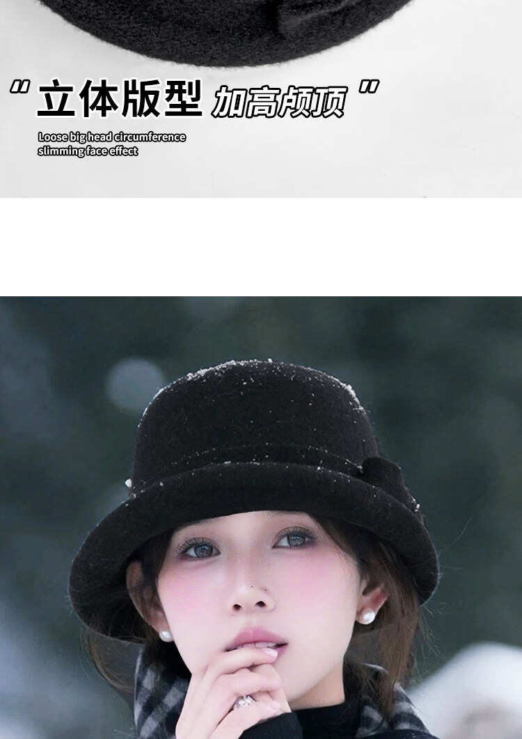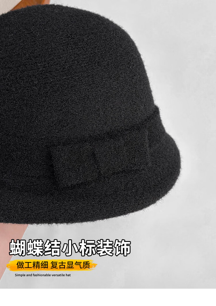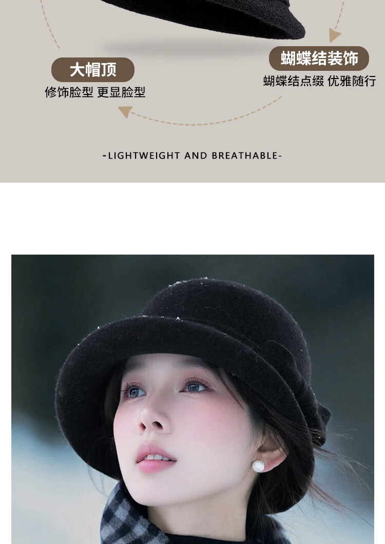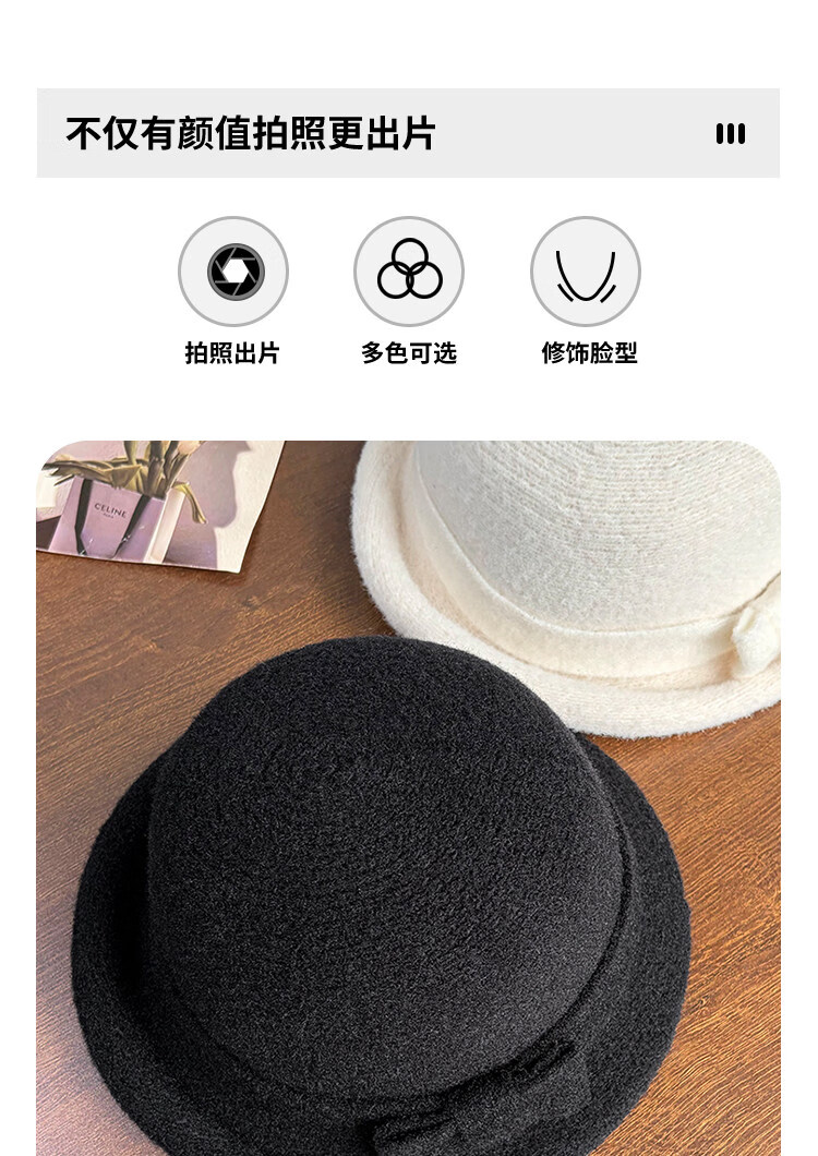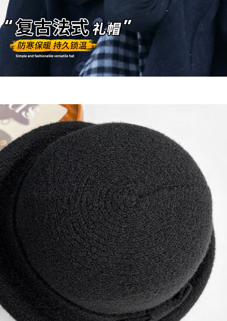 Zunti hat for women in autumn and winter French Hepburn style elegant white top hat for ladies ladies showing their face small bow thousand gold hat black adjustable
