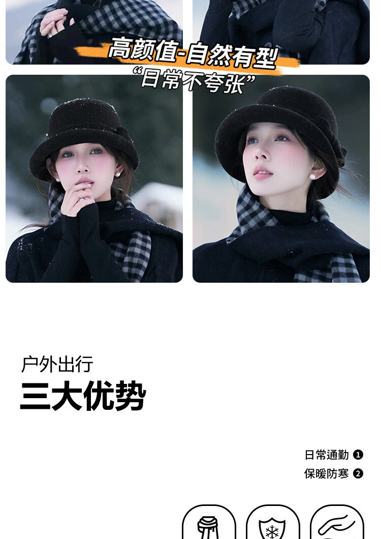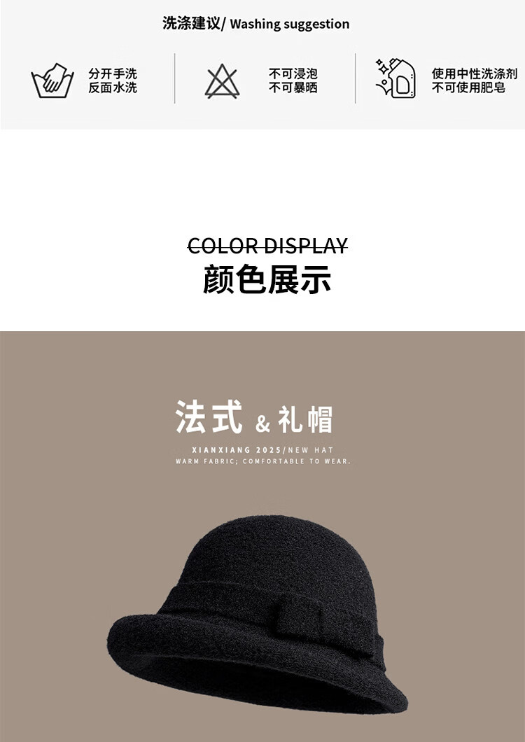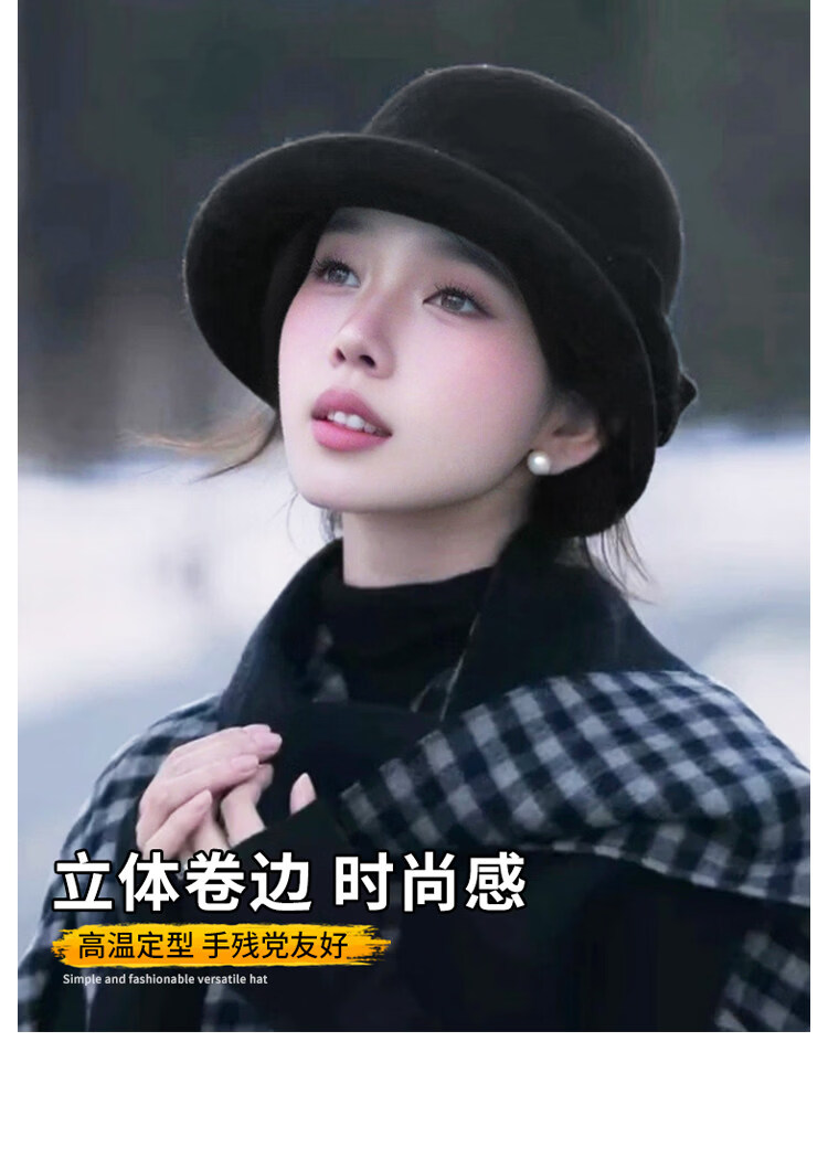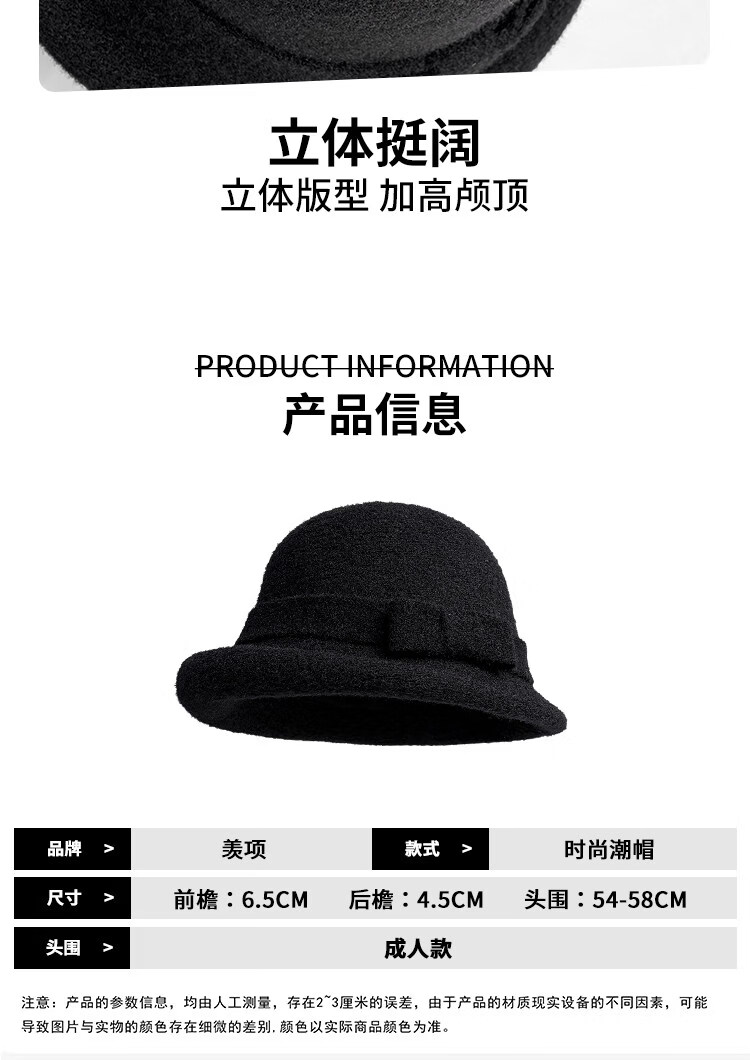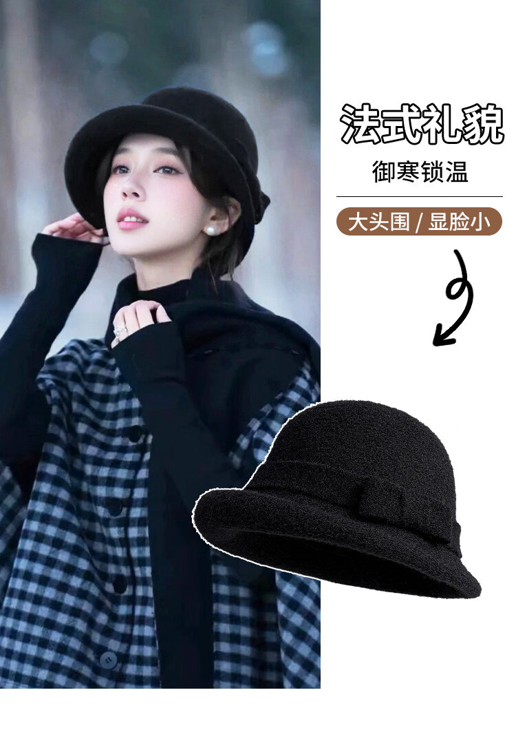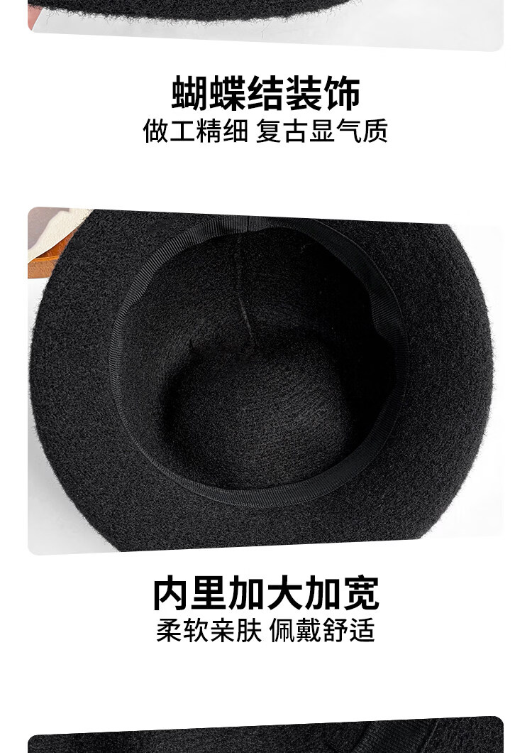 Zunti hat for women in autumn and winter French Hepburn style elegant white top hat for ladies ladies showing their face small bow thousand gold hat black adjustable