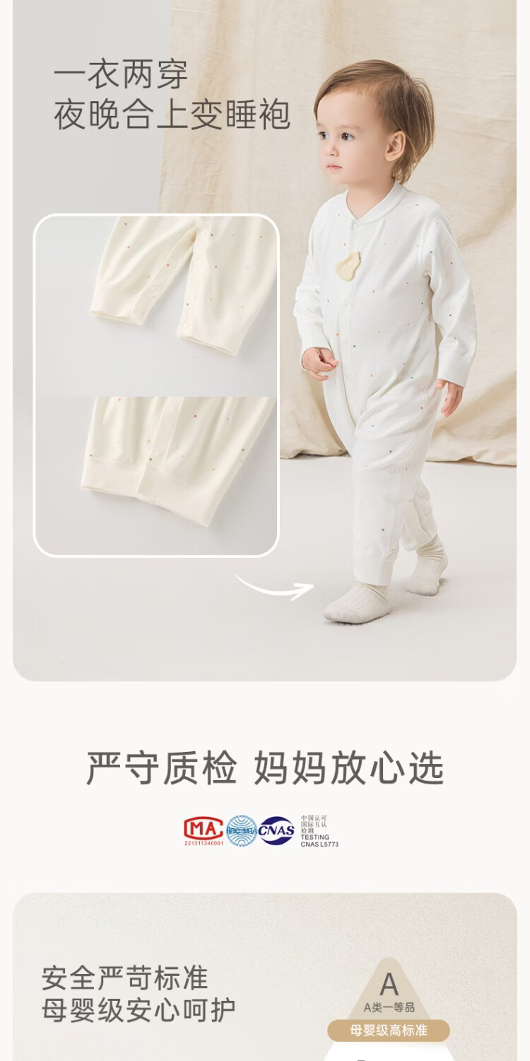 Wooden cotton, cloud oxygen cotton, baby jumpsuits for men and women, spring and autumn infants and young children, long-sleeved clothes, home rompers, bottoming pajamas, sky blue, dot a Fulu cotton Tencel spring, 73cm, 6-9 months, recommended weight 7.5