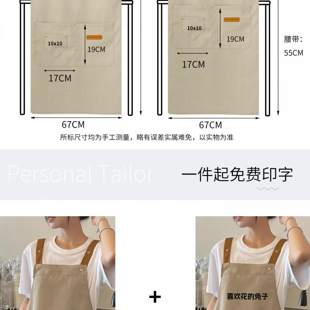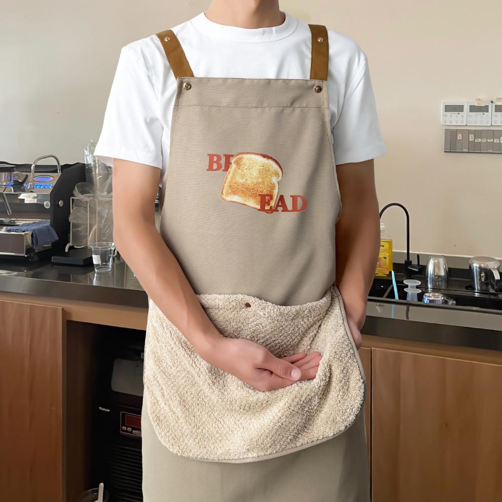 Tuojin imported quality hand-wiping apron from Germany for kitchen and household 2025 new style waterproof and oil-proof for cooking and dining beige English bread_normal style
