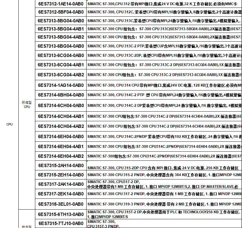 Siemens PLCS7-300CPU312/313C/314C/315/317/319-3/2PN/DP/ 6ES7313-5BG04-0AB0
