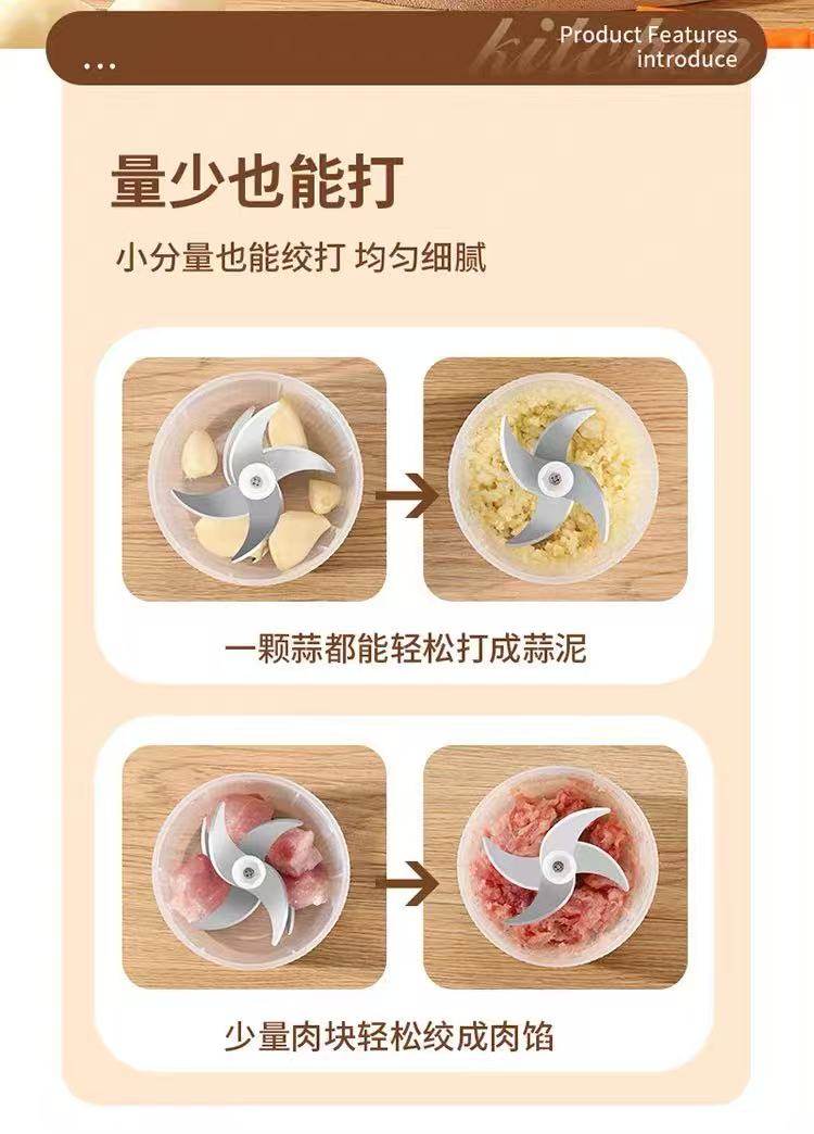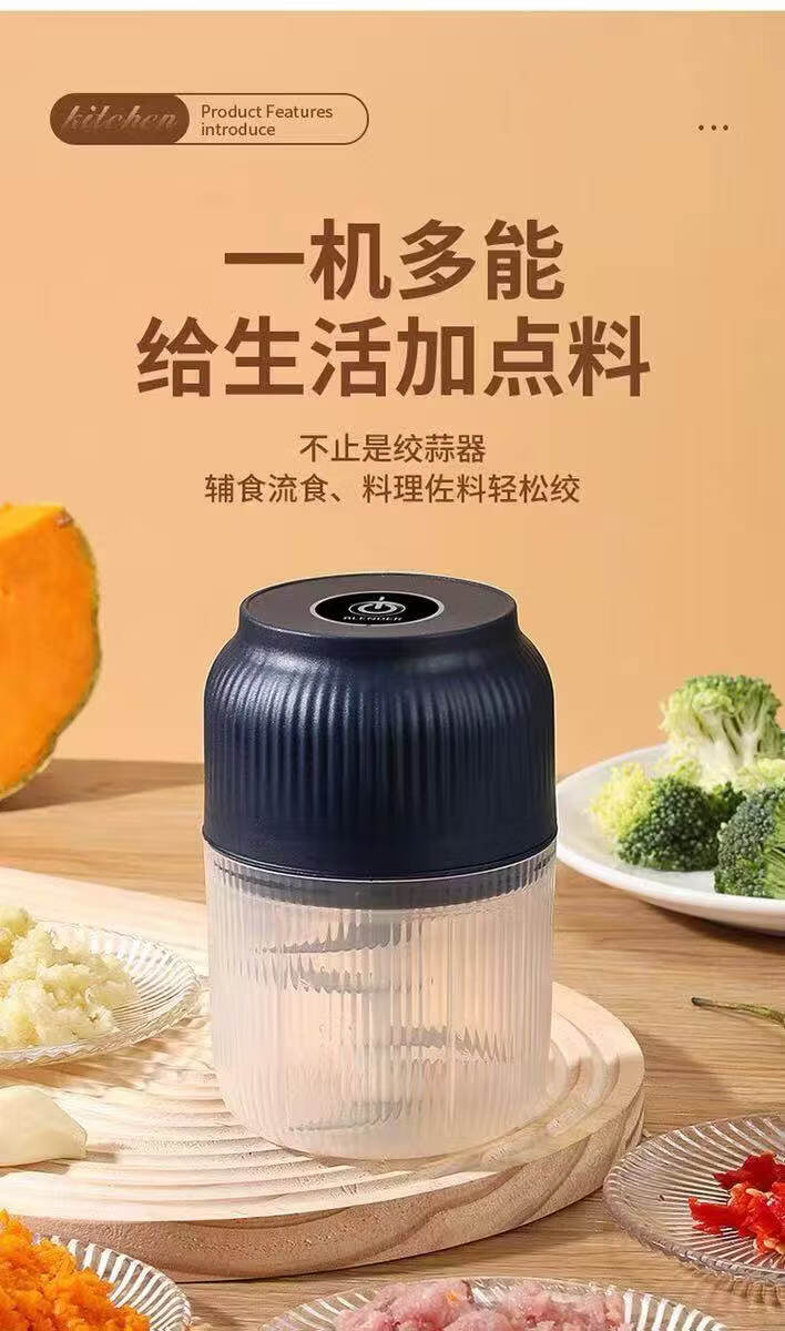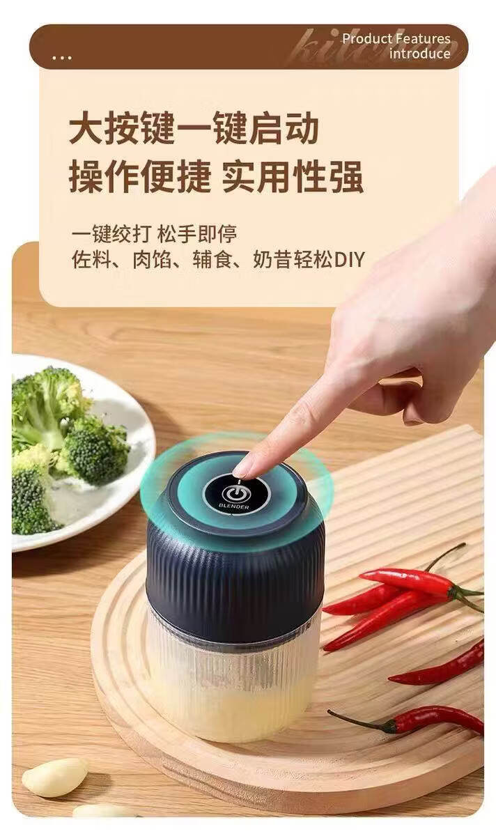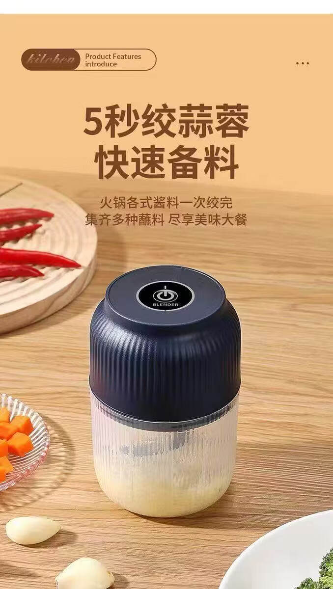 Tuojin imported quality wireless meat grinder from Germany, electric garlic masher, garlic dip, small household charging wireless garlic, simple blue + powerful four blades + egg beater _320ML