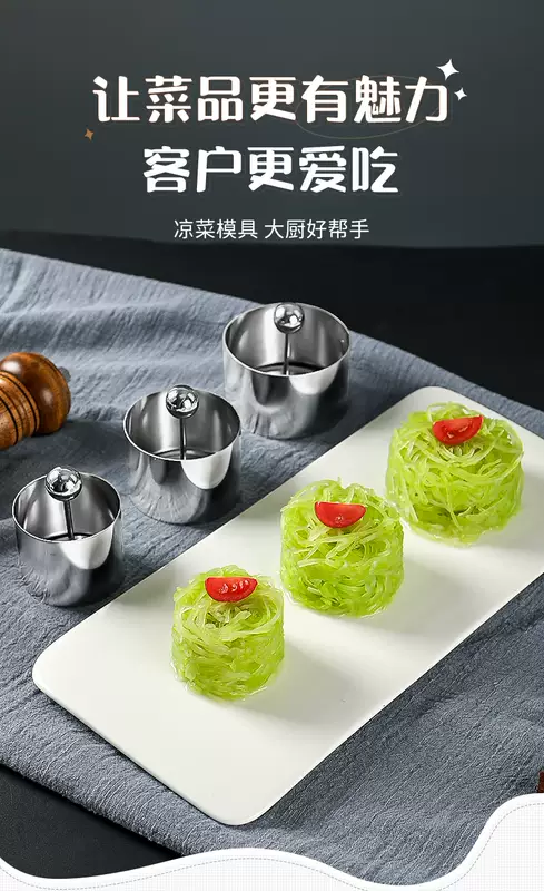 Yusenyi cold dish mold stainless steel round dish three-piece set of kitchen tools hotel kitchen creative dish decoration shape (small size 6cm) one circle and one push