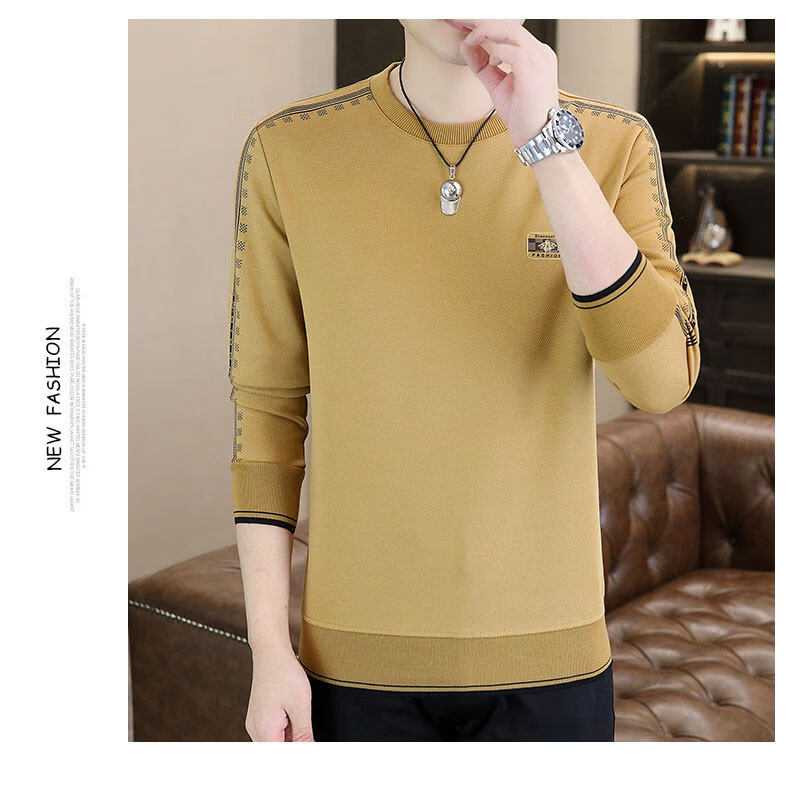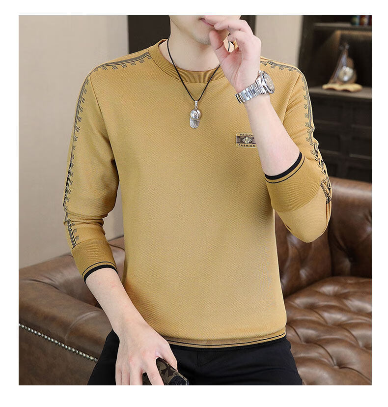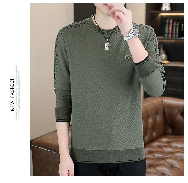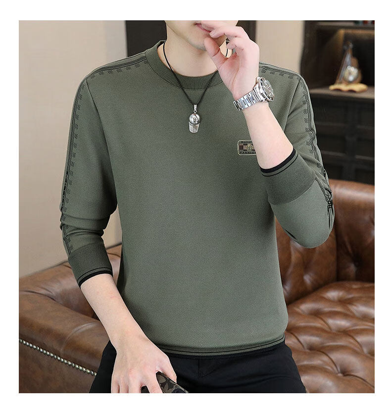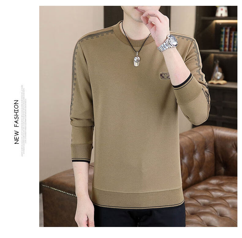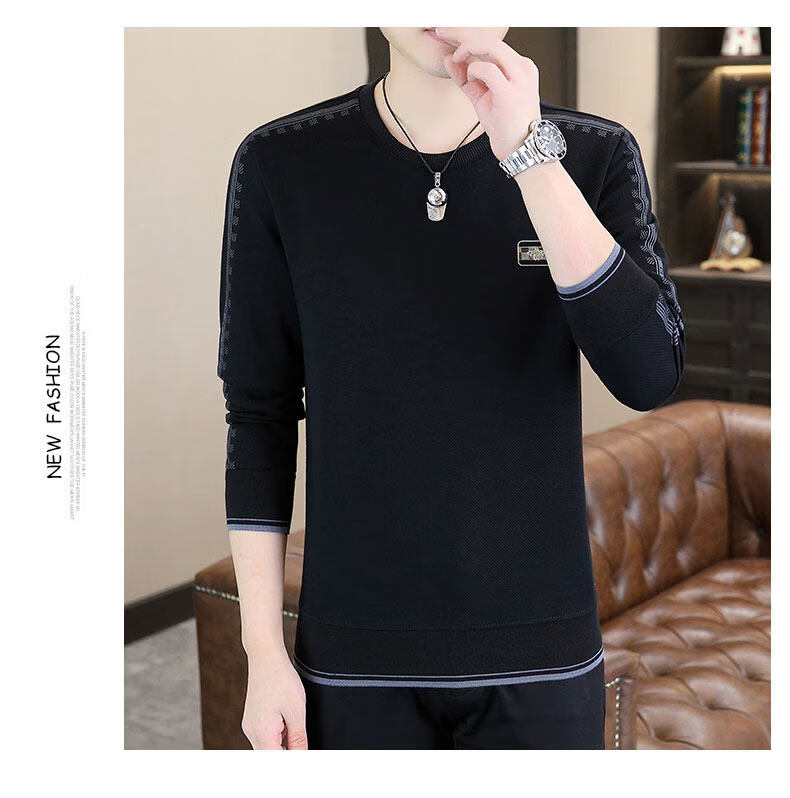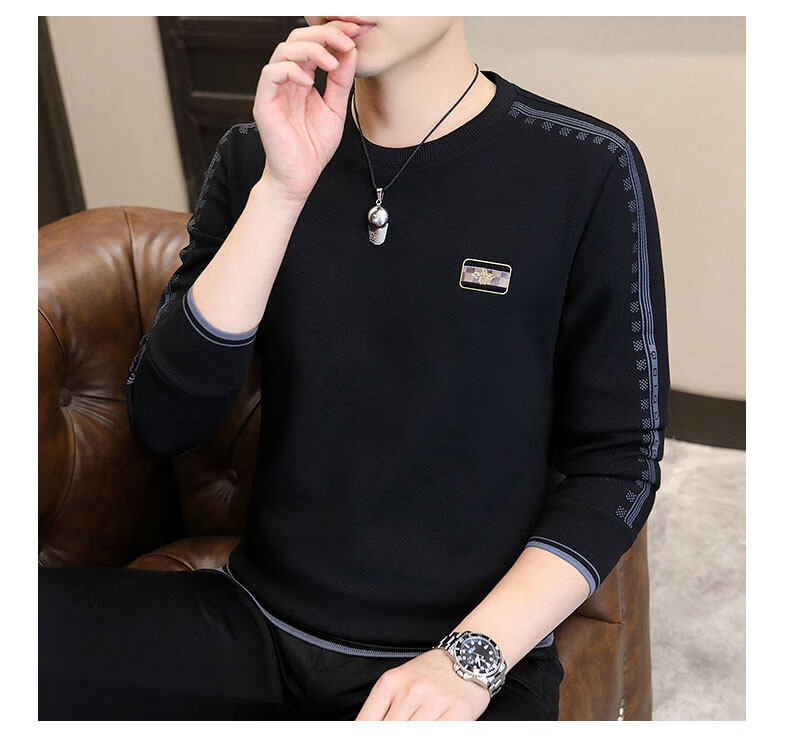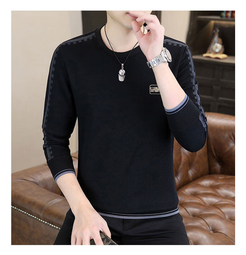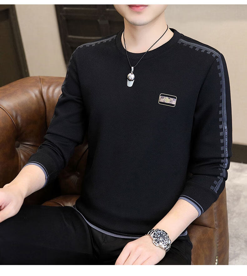 JEEP SPIRIT sweatshirt men's 2025 autumn and winter new men's long-sleeved T-shirt versatile inner layering shirt men's tops plus velvet 23429 black thickened 4XL about 170-185Jin Jin equals 0.5 kg can be worn