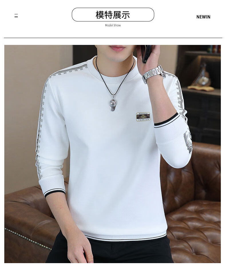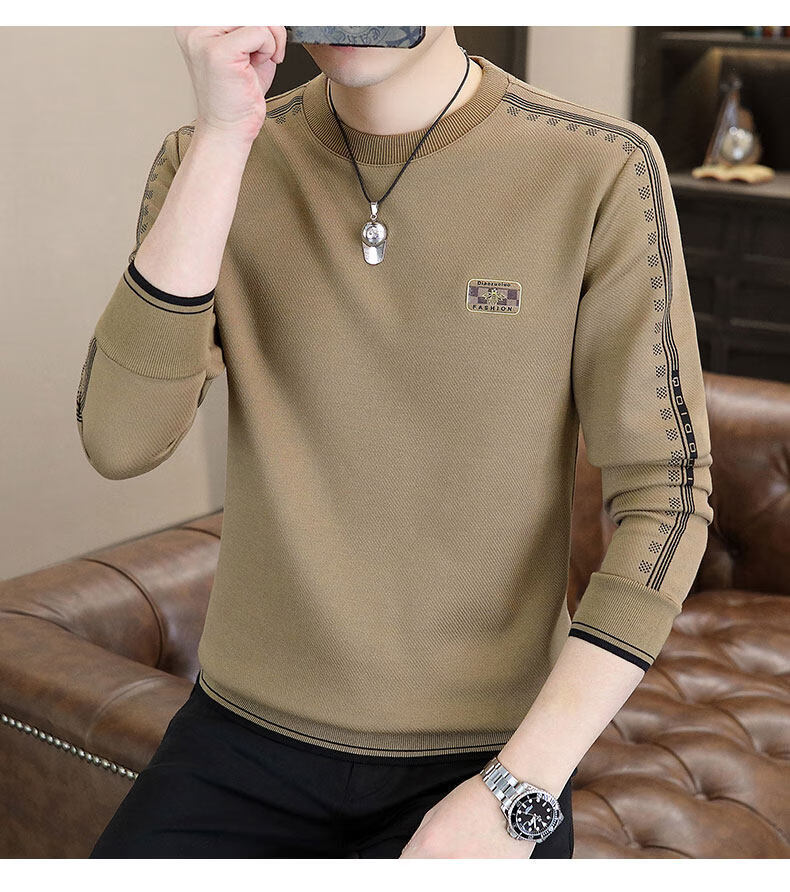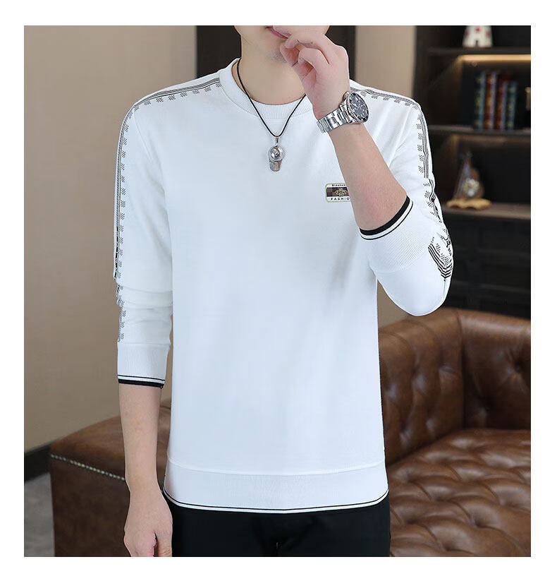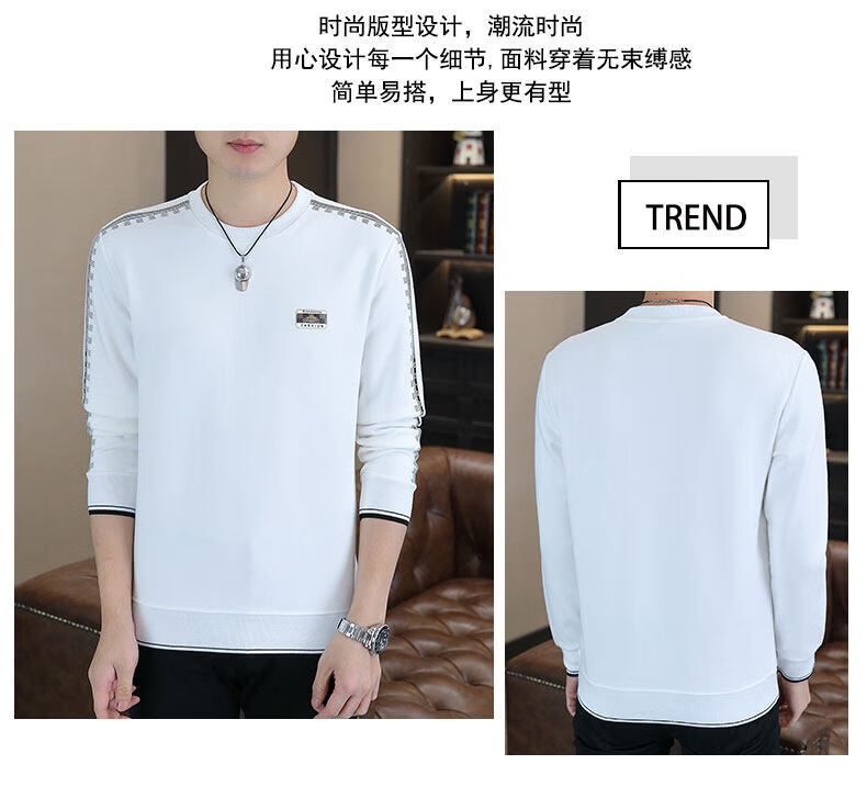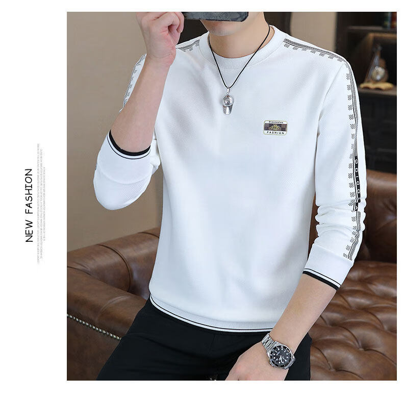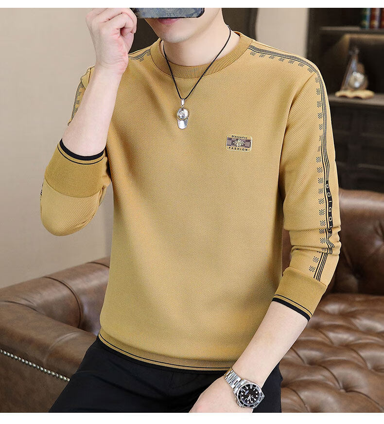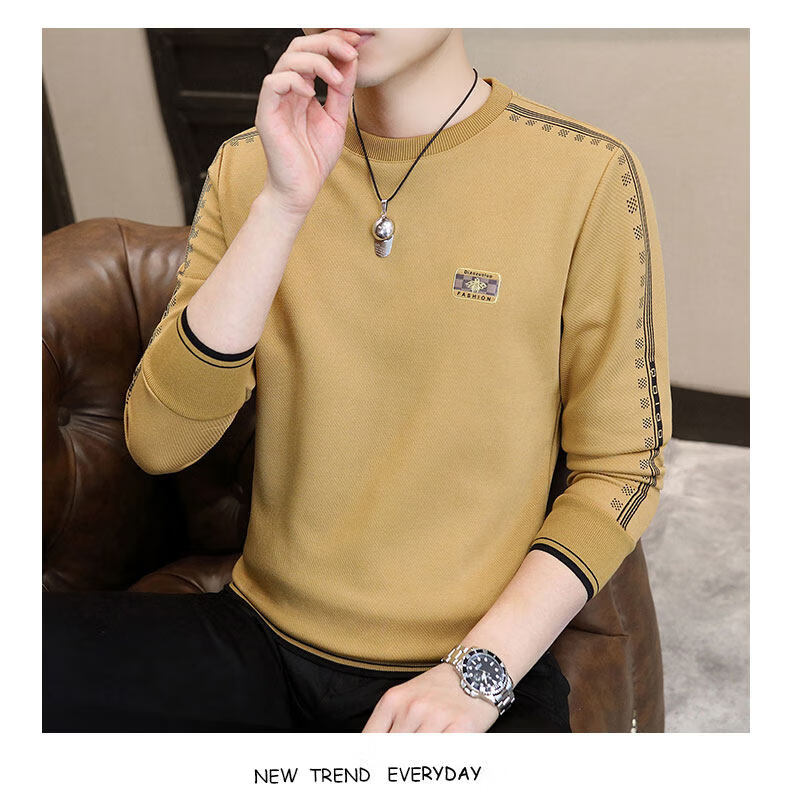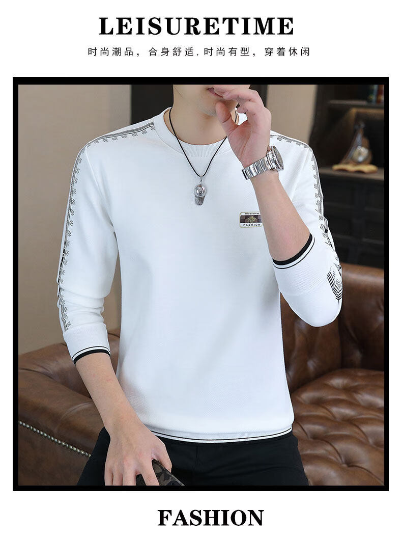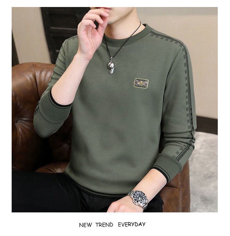 JEEP SPIRIT sweatshirt men's 2025 autumn and winter new men's long-sleeved T-shirt versatile inner layering shirt men's tops plus velvet 23429 black thickened 4XL about 170-185Jin Jin equals 0.5 kg can be worn
