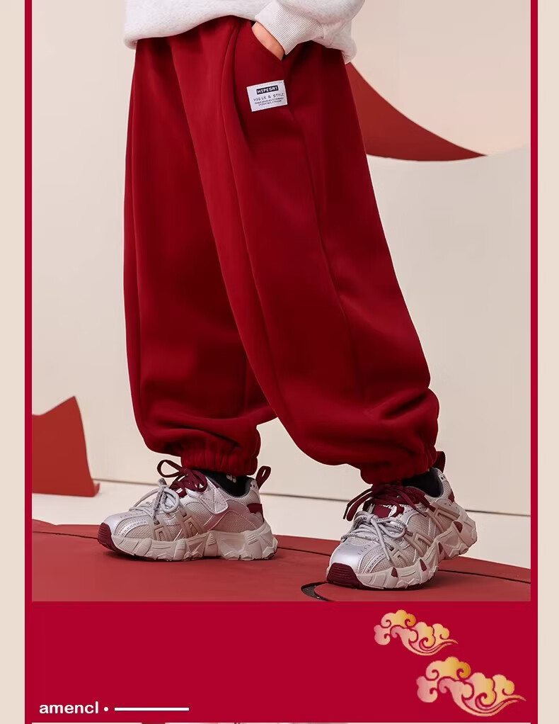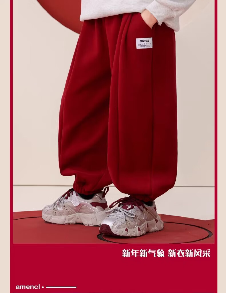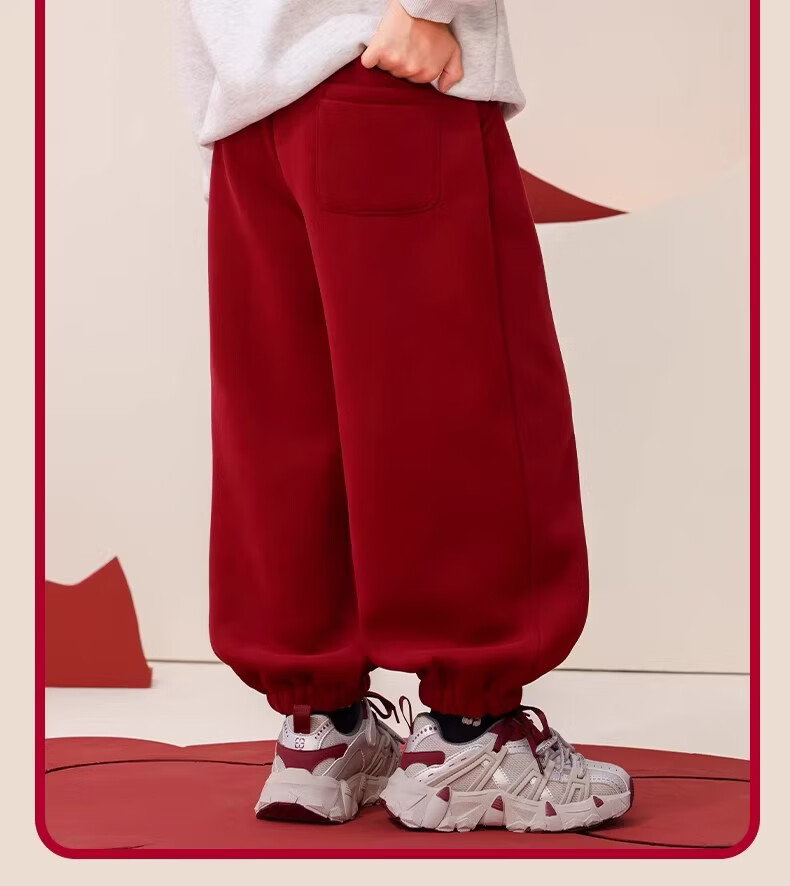 I.KARNOW boys' red velvet pants children's autumn and winter sports pants 2025 new big children's new year thickened one-piece velvet sweatpants 16319 Angora red 140