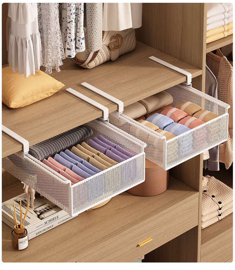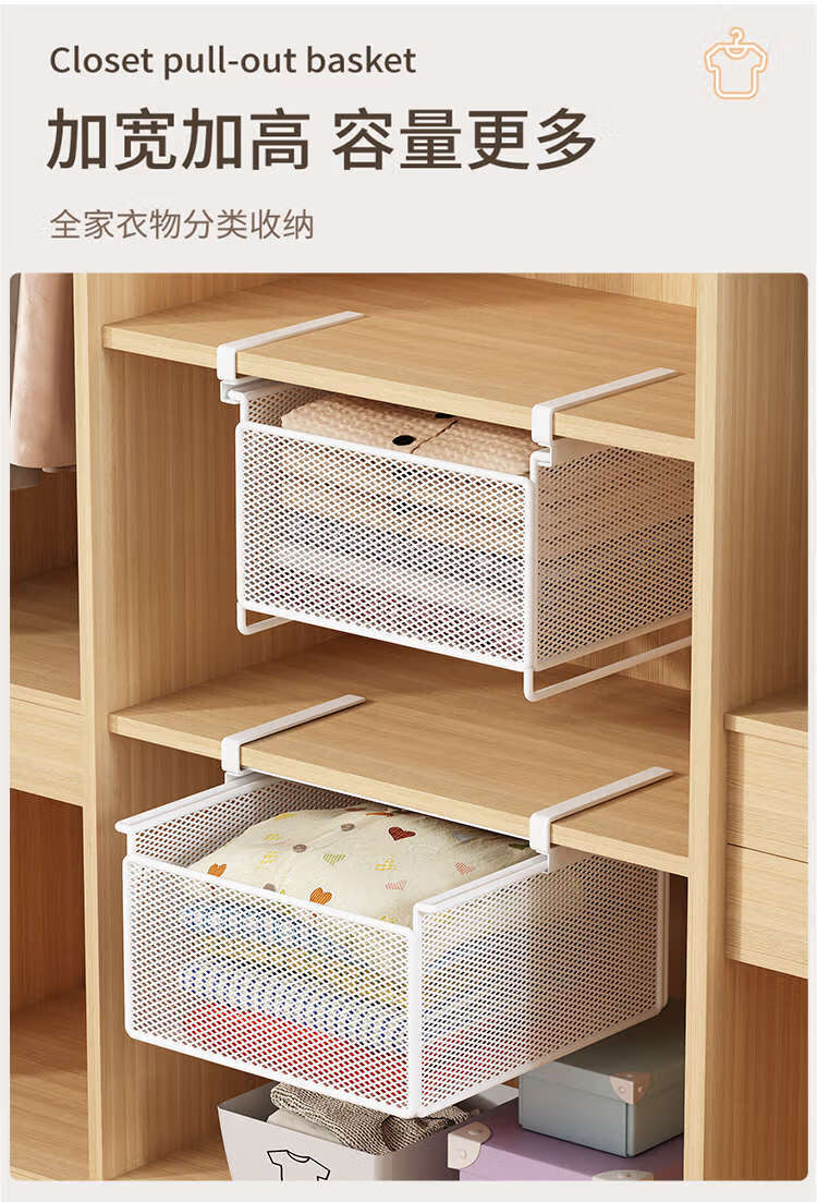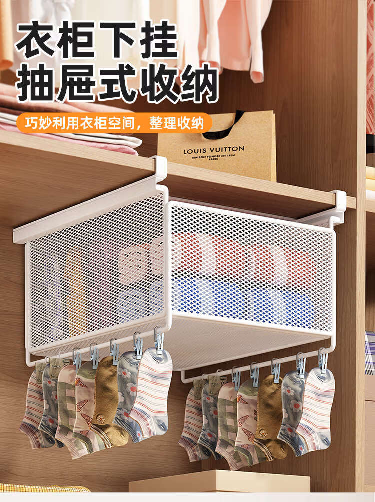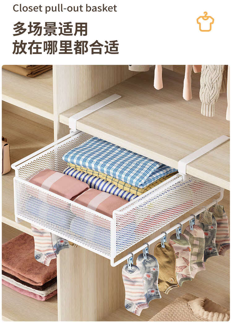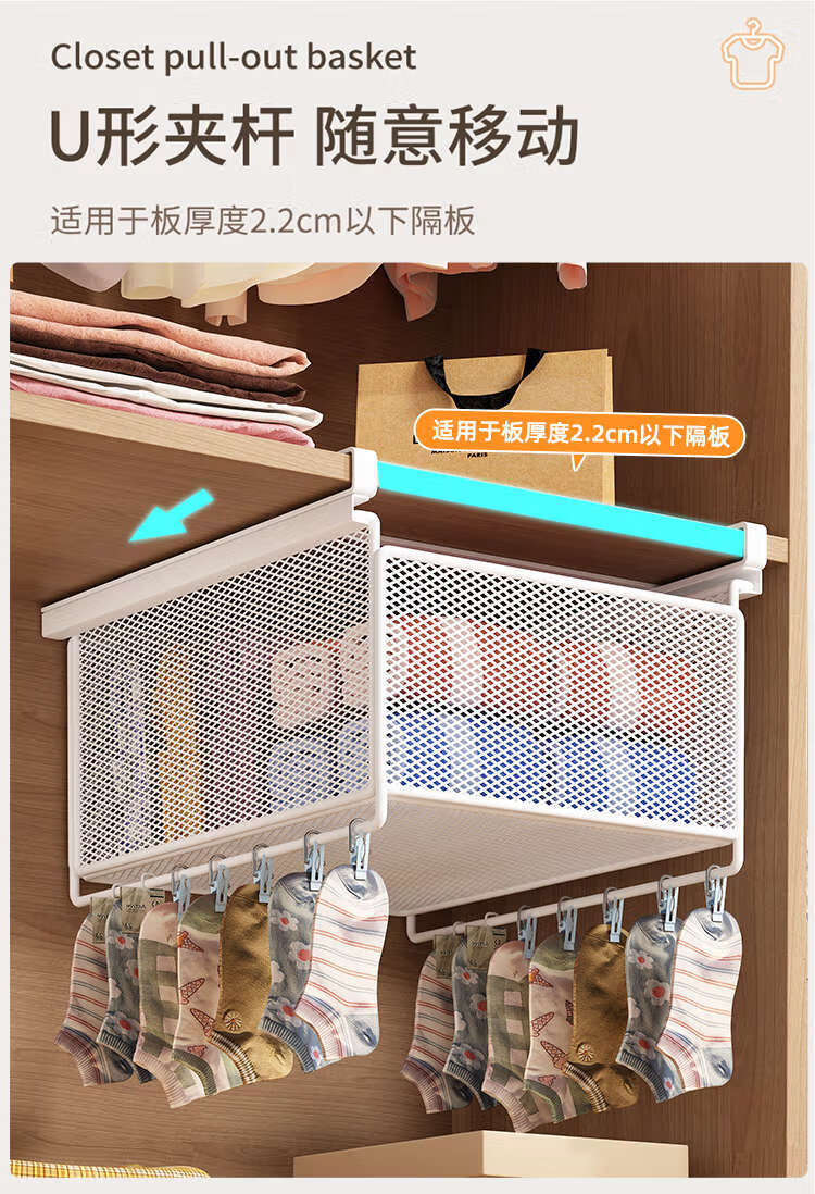 Yusenyi wardrobe pull-out partition cabinet hanging sock storage box hanging basket drawer type wardrobe layered white short style with cover
