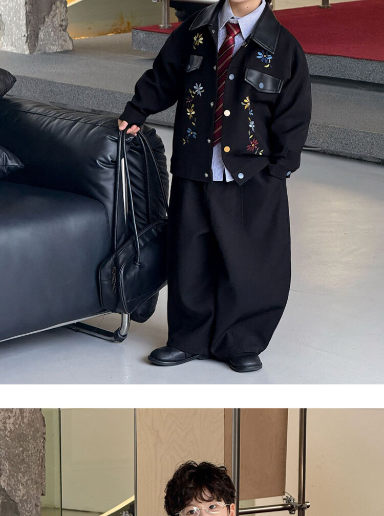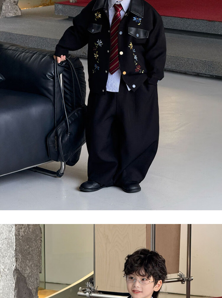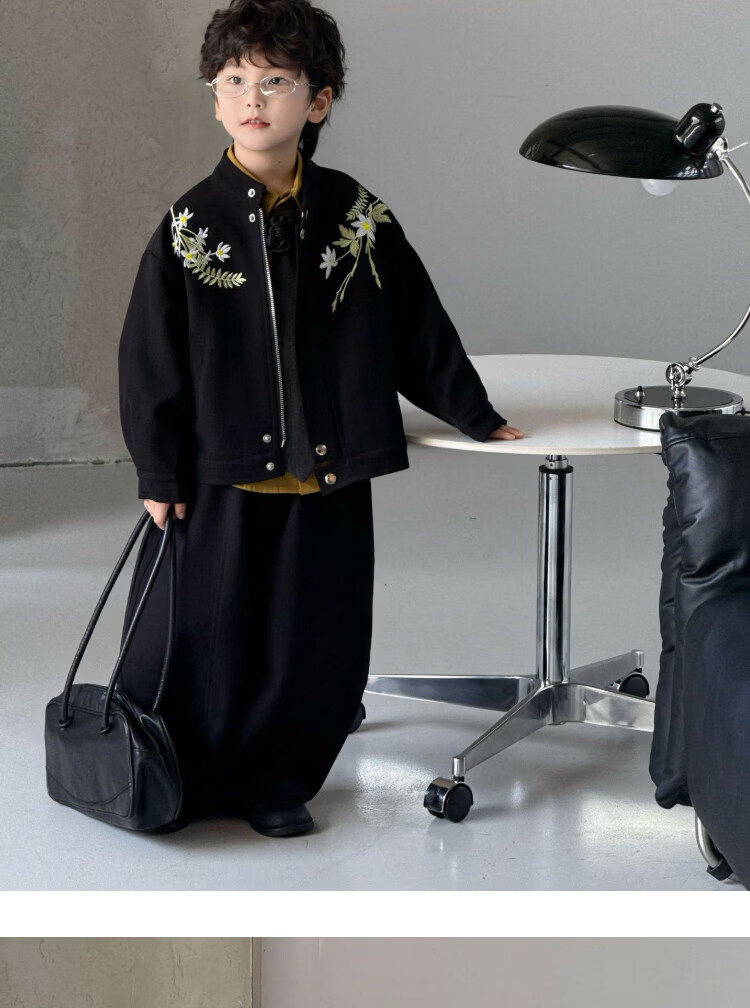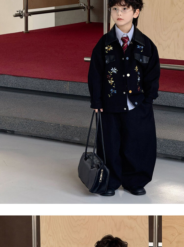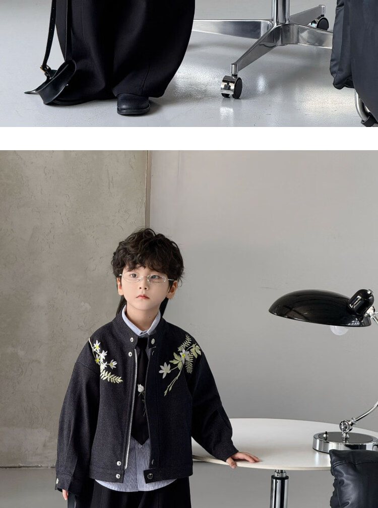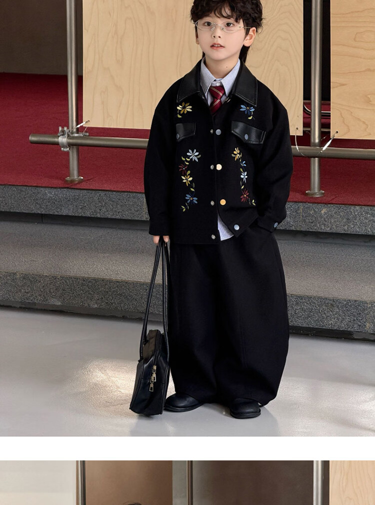 Pi Shuai Children's Jacket 2025 New National Style New Chinese Suit Boys Fashionable Trendy Autumn and Winter Jackets Tops All the Way Flower Jacket + Black Pants + Blue Striped Shirt cm Recommended Weight 5365 Jin Jin is equal to 0.5 kg 140