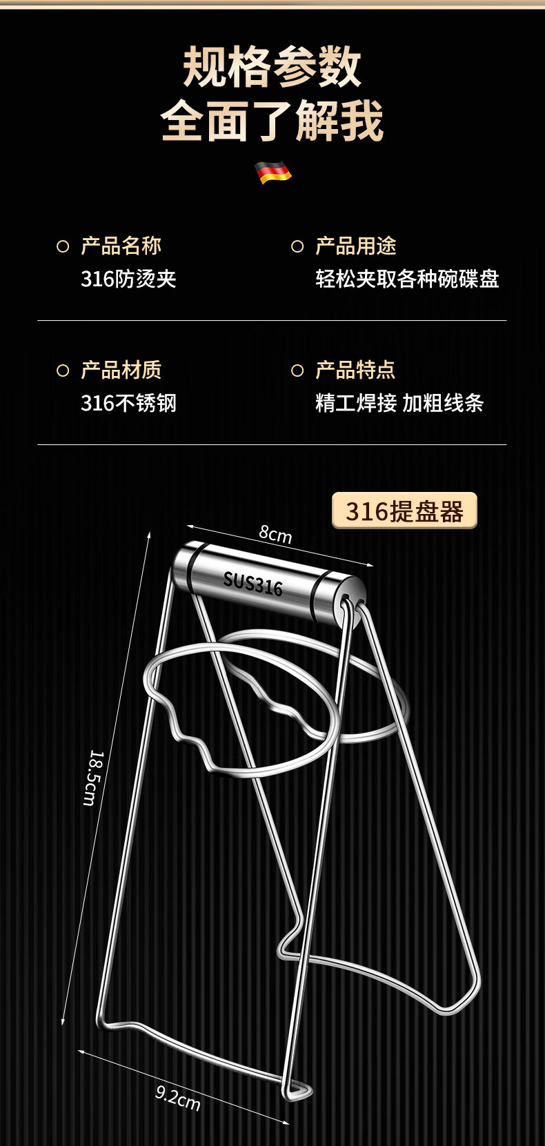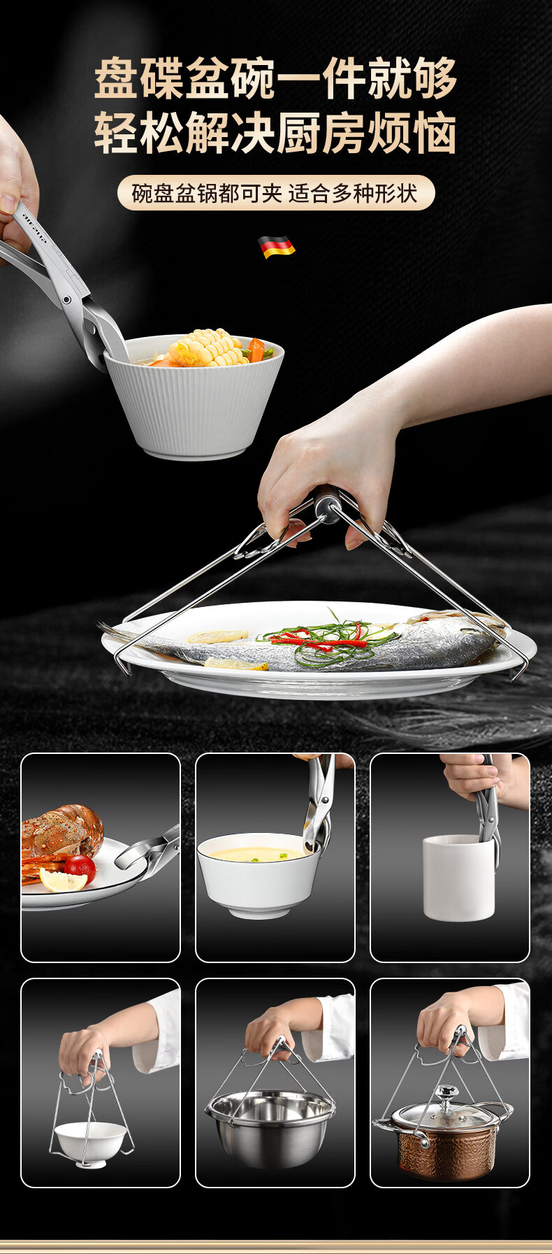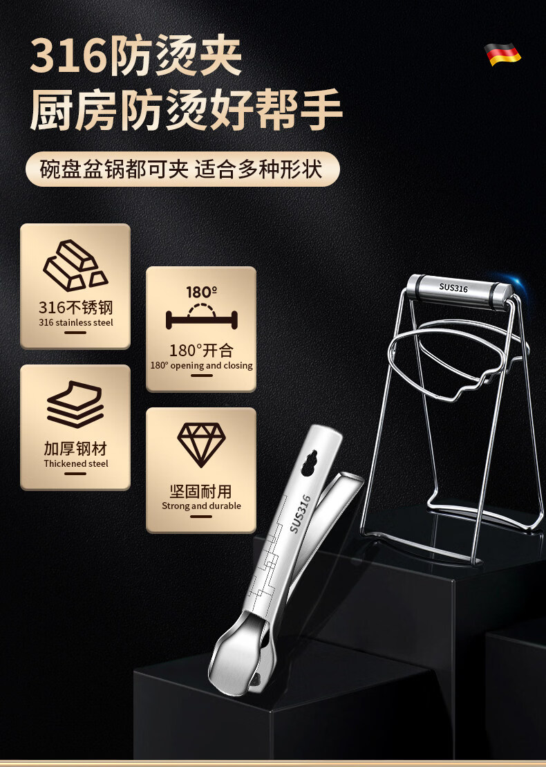 Fat Donglai's same style anti-scalding bowl clamp 316 stainless steel bowl clamp steamed vegetable plate clamp kitchen anti-purchase plate lift + bowl clamp grade 316L stainless steel